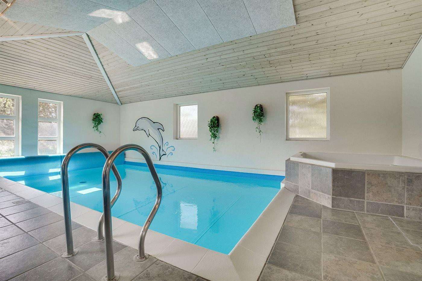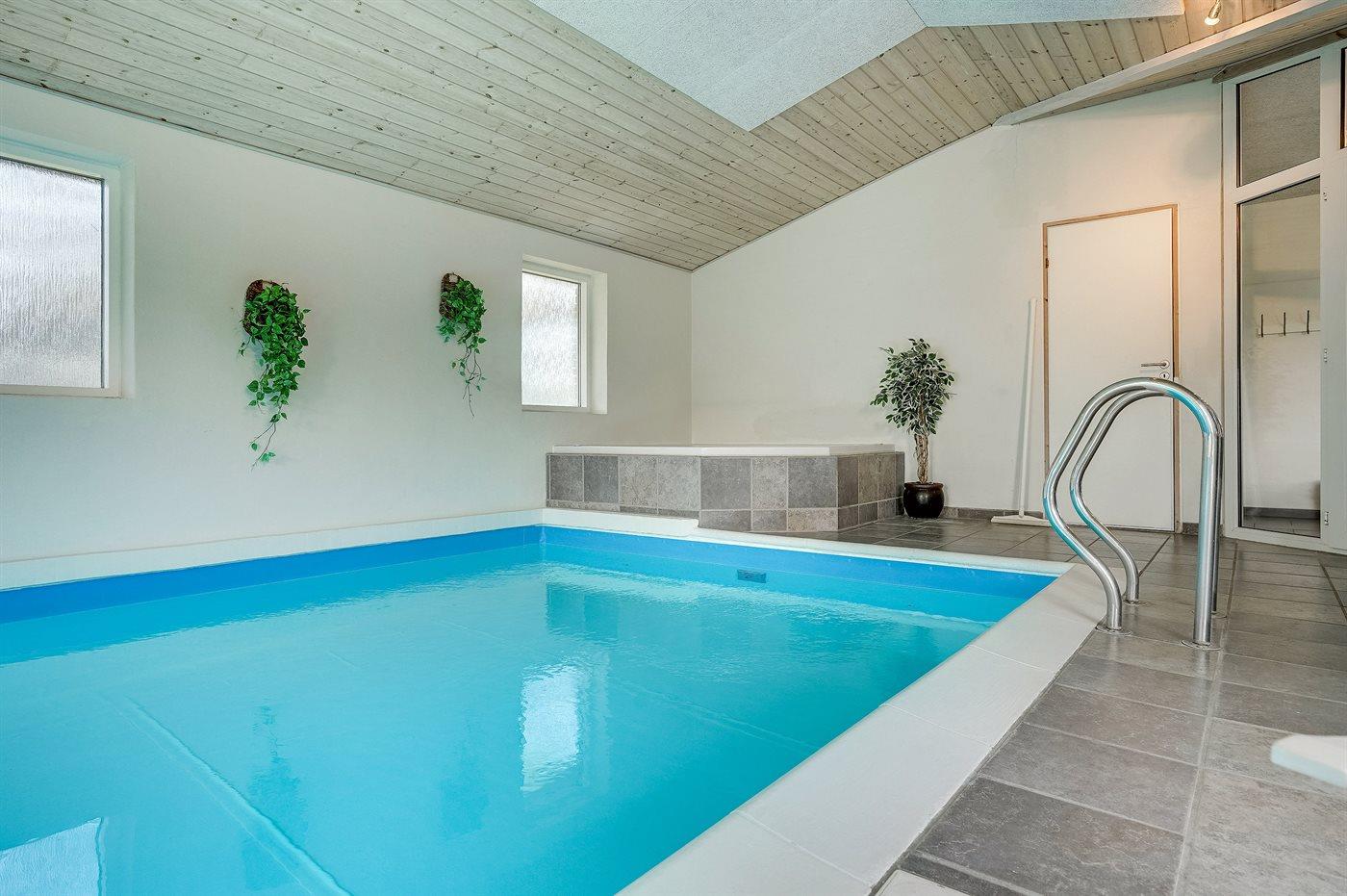 I den indendørs swimmingpool er der mulighed for leg og hyggeligt samvær. Swimmingpoolen måler op til 3 m i bredden, 6 m i længden og den er op til 1,2 m dyb. Vandet er mellem 24 og 28° C varmt. Swimmingpoolen har modstrømsanlæg. Der er gulvvarme i swimmingpoolområdet.
