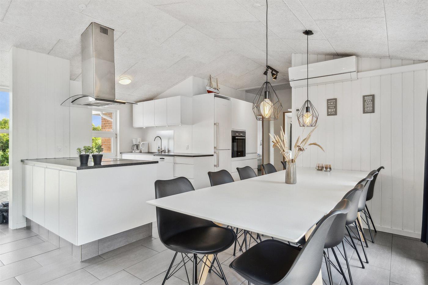 Sommerhuset egner sig til 10 personer samt 1 barn op til 3 år. Ferieboligen er på 180 m² og er bygget i 1991. I 2017 gennemgik ferieboligen en renovering. Det er tilladt at medbringe 2 husdyr. Ferieboligen er udstyret med 2 energivenlige varmepumper. Der er gulvvarme i stuen. Der er gulvvarme i alle klinkegulve. Der er gulvvarme i entréen. Der er gulvvarme i gangen. Der er gulvvarme i alrummet. Ferieboligen har vaskemaskine. Tørretumbler. Frysekapacitet på 50 liter. Der er desuden brændeovn. Til de små er der 1 stk. barnestol. Puslebord.