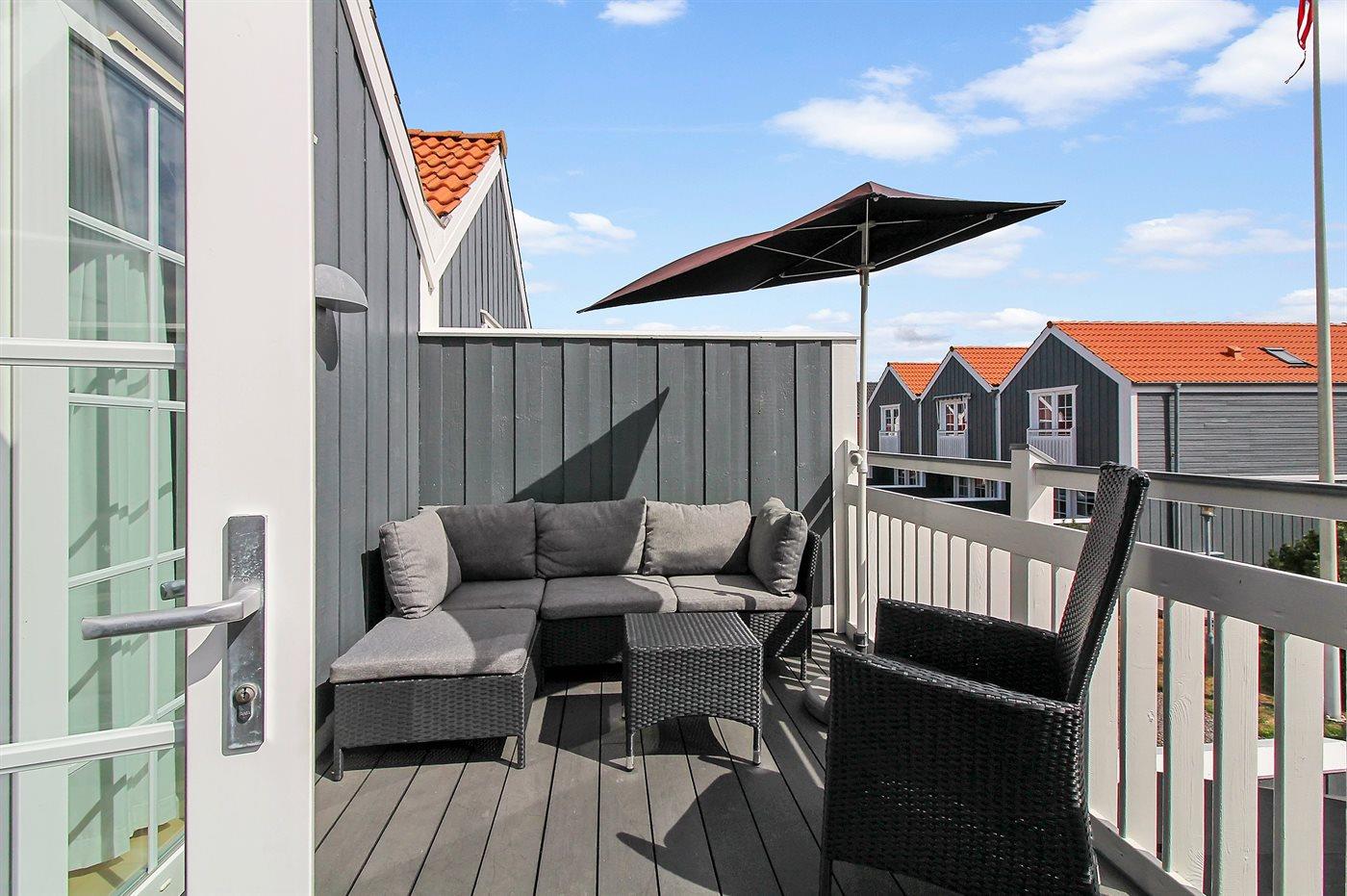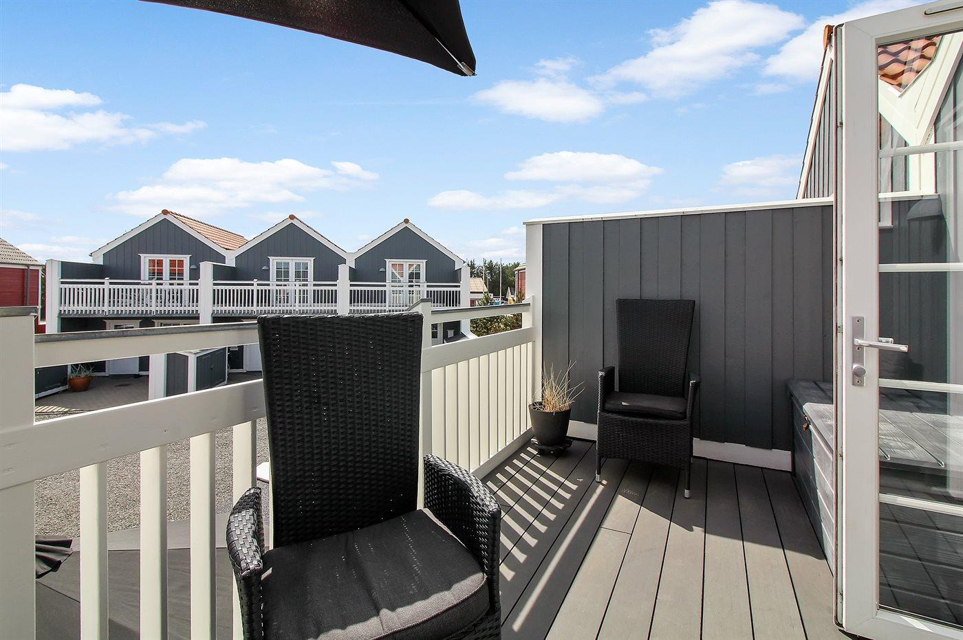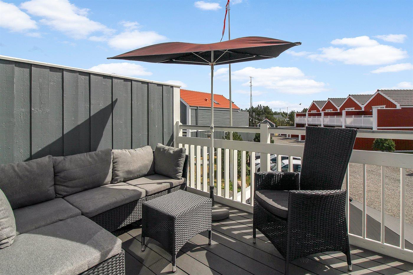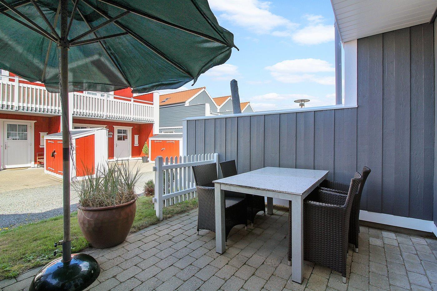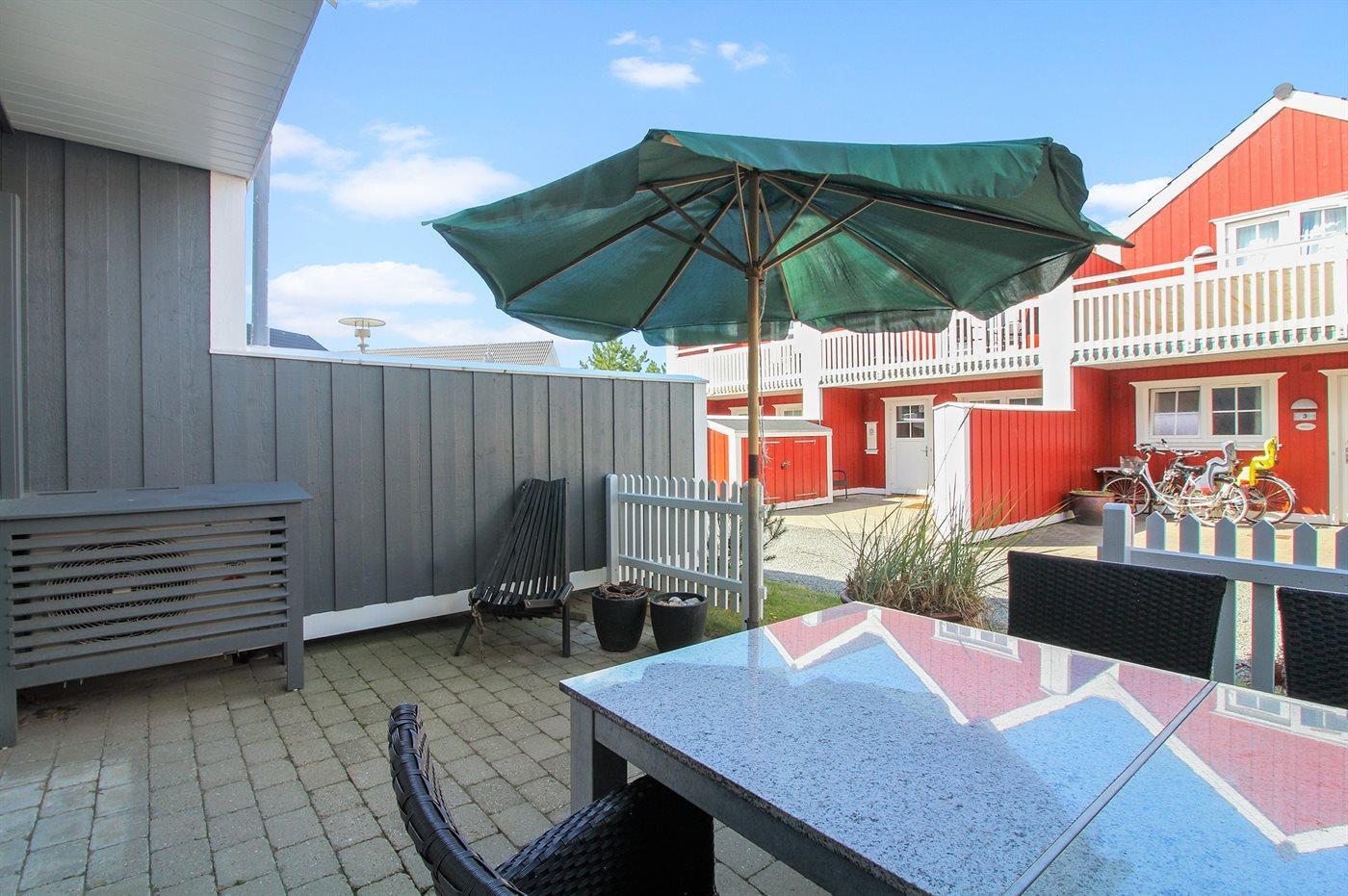 Ferieboligen er beliggende på en 130 m² stor havegrund. Der er 1200 m til havet. Nærmeste forretning er beliggende i en afstand af 200 m. Til ferieboligen hører 30 m² terrasseareal. Desuden er der 10 m² overdækket terrasse. Udgang til altan. Grill til rådighed. Parkering ved ferieboligen.