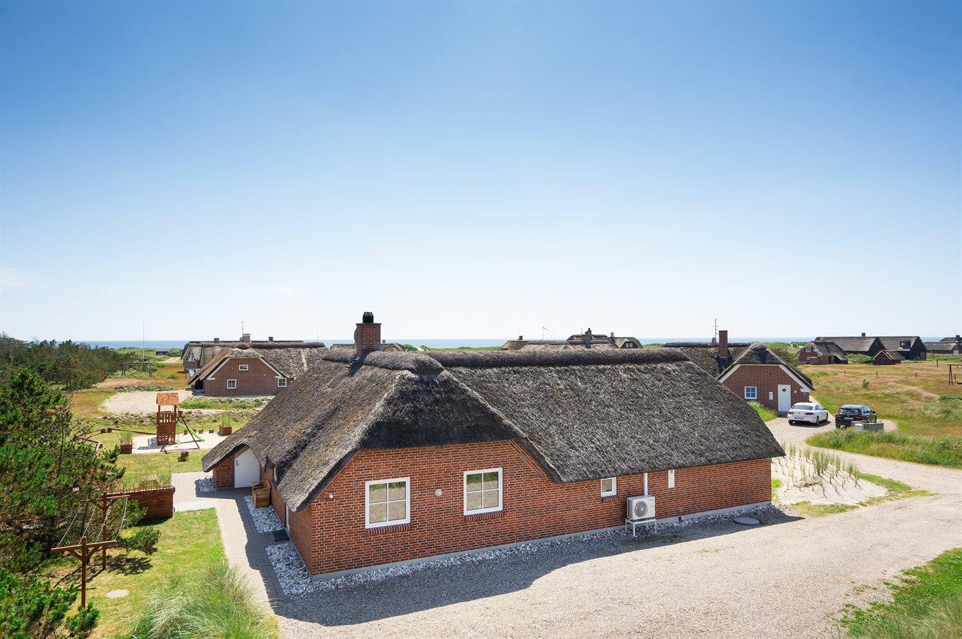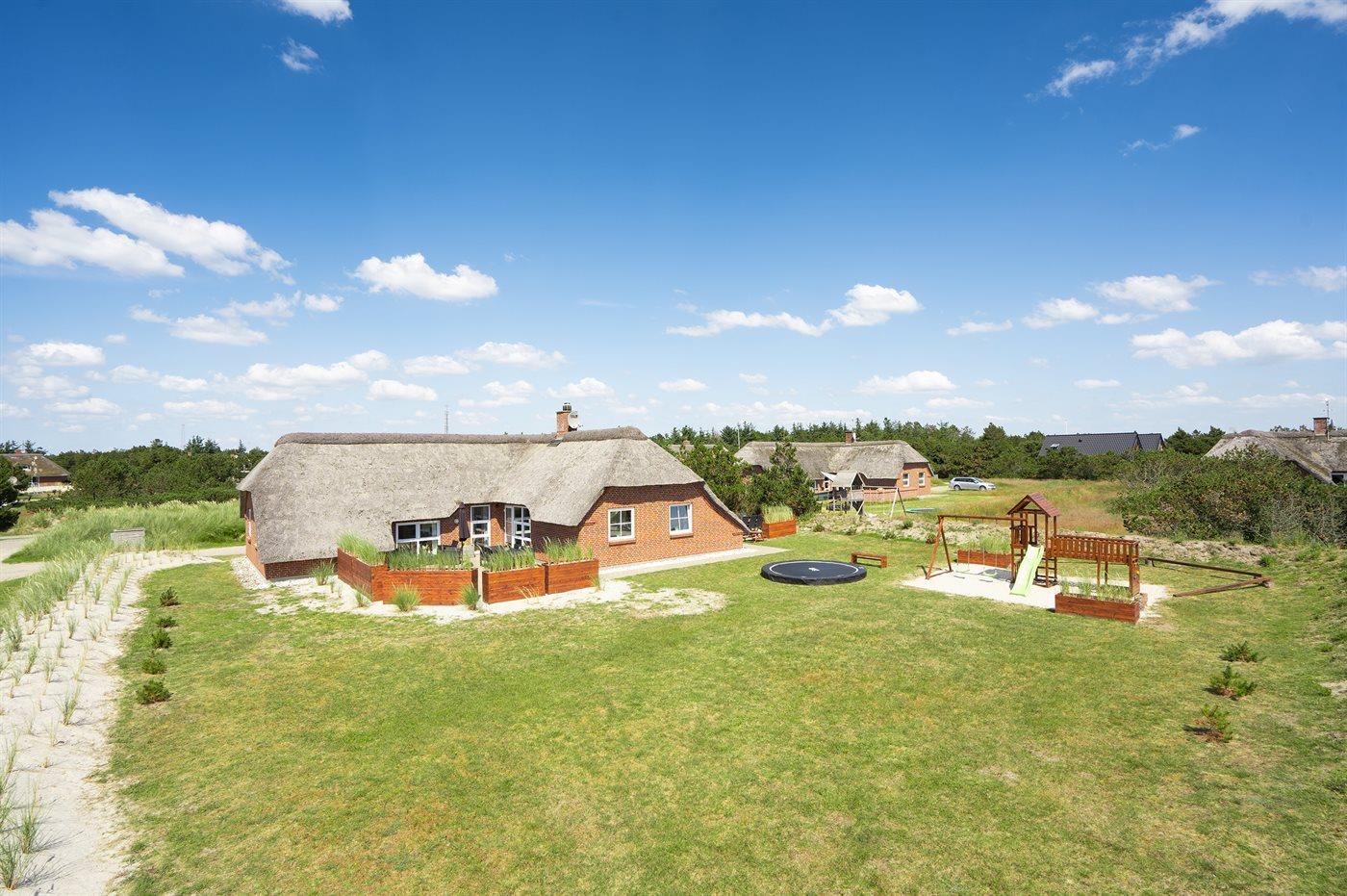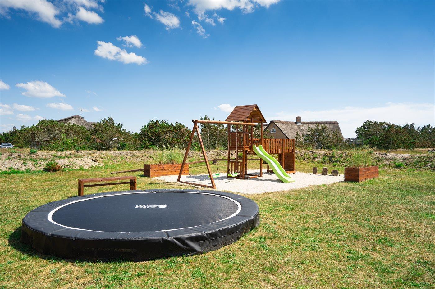 Ferieboligen er beliggende på en 1524 m² stor klitgrund. Der er 100 m til havet. Nærmeste forretning er beliggende i en afstand af 900 m. Til ferieboligen hører 50 m² terrasseareal. Desuden er der 12 m² overdækket terrasse. Gynge. Sandkasse. Trampolin. Legetårn. Rutchebane. Der findes udendørs bruser, hvor vandet bliver opvarmet af solen. Grill til rådighed. Der er installeret stik til opladning af elbil. Parkering ved ferieboligen.