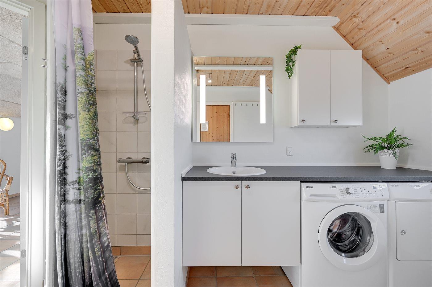 Der er 2 badeværelser med bruseniche og 2 toiletter. Der er gulvvarme på 2 badeværelser. I saunaen er der mulighed for afslapning.