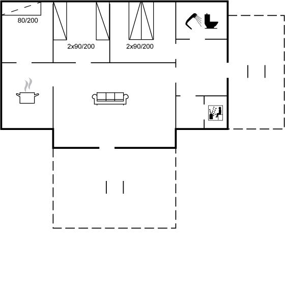 Der er 1 badeværelse med bruseniche og 1 toilet. I saunaen er der mulighed for afslapning.