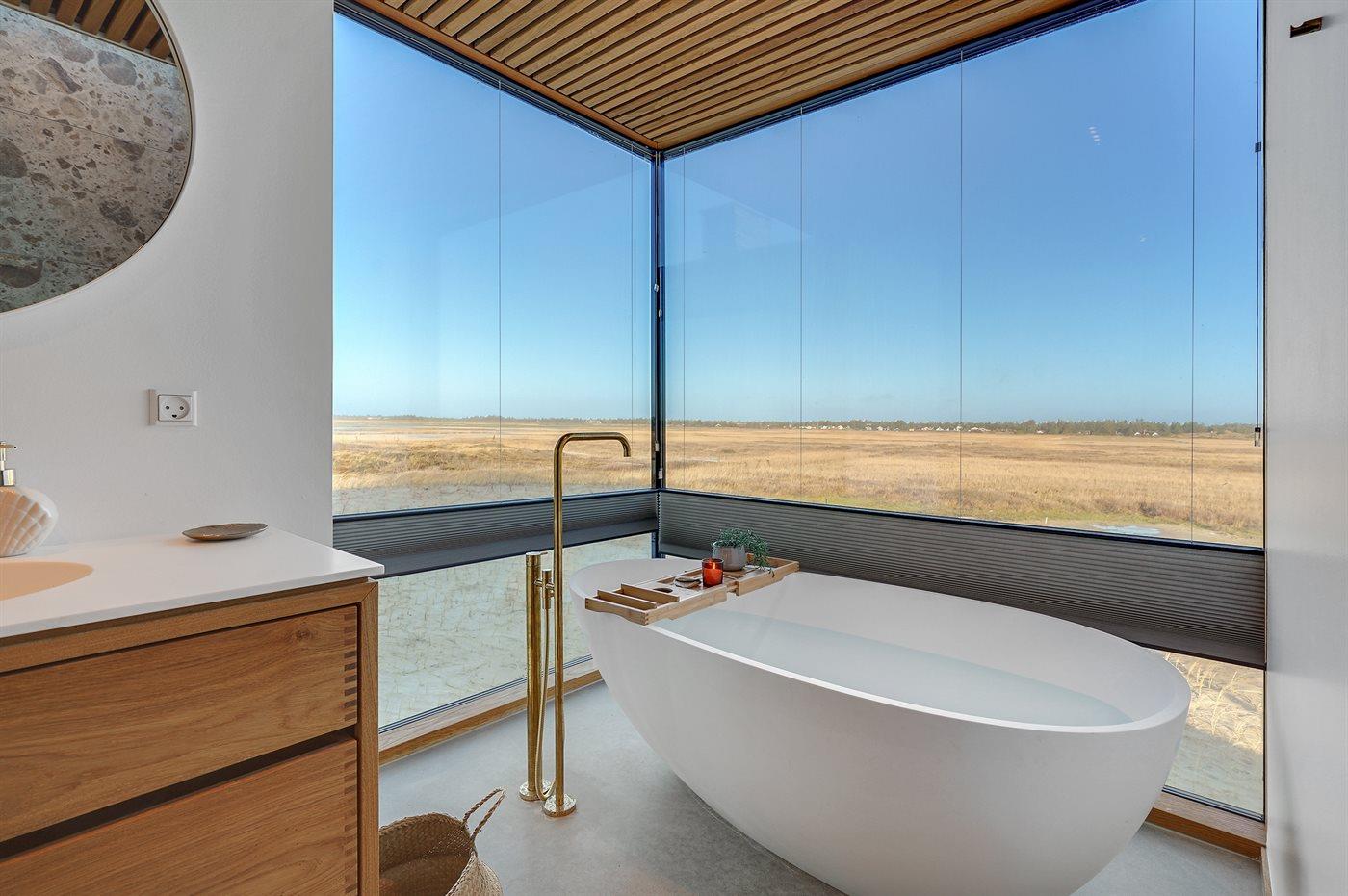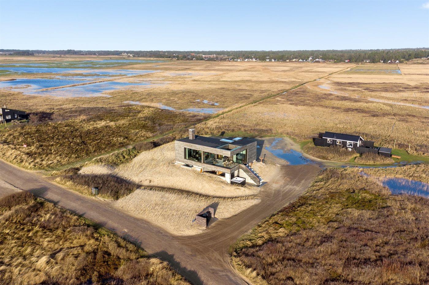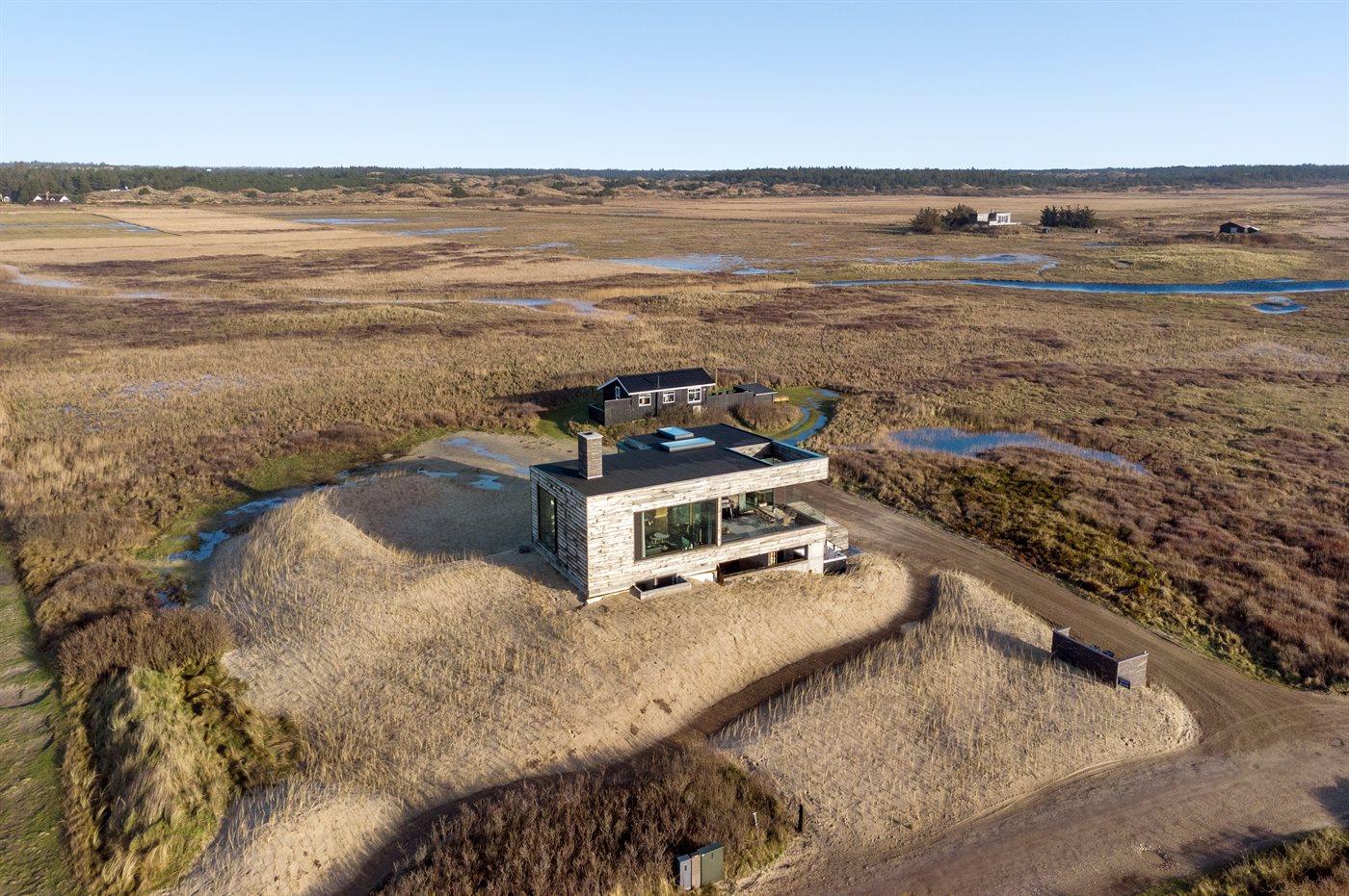 Nyt arkitekttegnet sommerhus fra 2023 med spa, sauna og havudsigt tæt på Hvidbjerg strand i Blåvand.