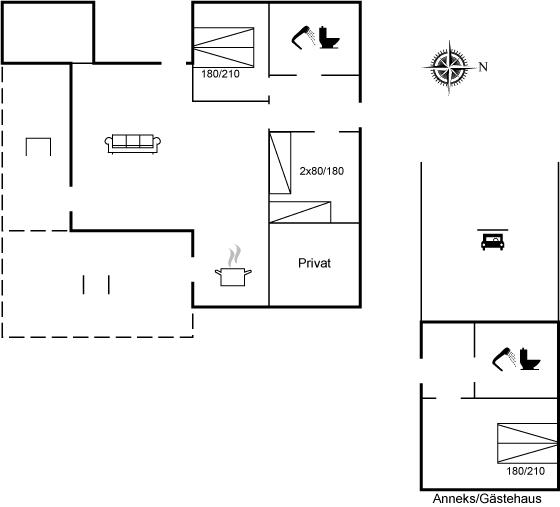 Sommerhuset er indrettet med 2 soveværelser med dobbeltseng, 2 komplette badeværelser, et åbent køkken og en hyggelig opholdsstue, hvorfra der er adgang til en terrasse. Terrassen er det oplagte sted at opholde sig på en solrig sommerdag eller på en varm sommeraften med et køligt glas rosé i hånden. Til sommerhuset hører der desuden et skønt anneks med en dobbeltseng, og der er dermed plads til i alt 6 personer.