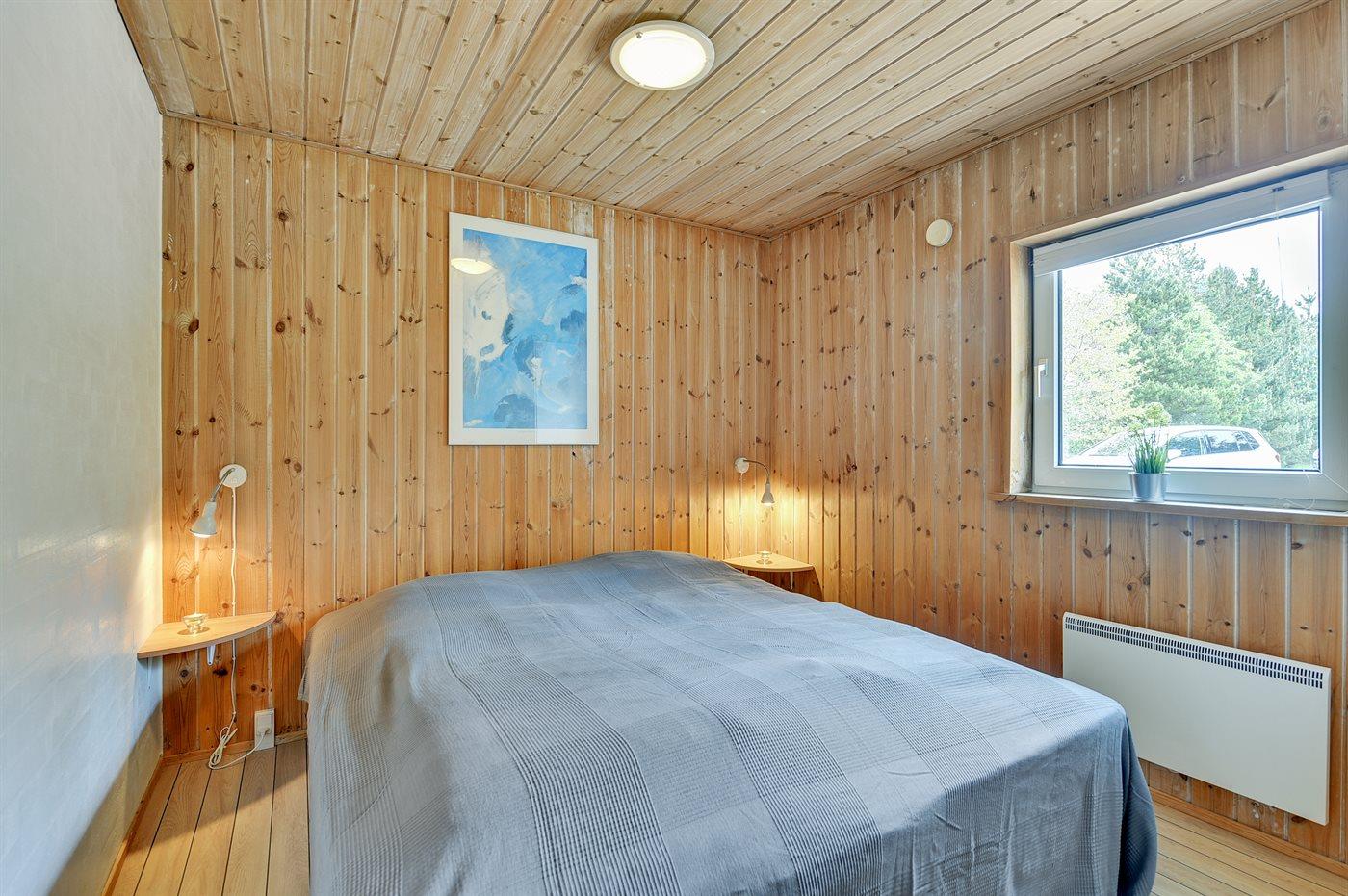 Der er i alt 5 soveværelser. Sovepladserne fordeler sig på: 6 sovepladser i dobbeltsenge. 2 sovepladser i enkeltsenge. 2 sovepladser i køjeseng. 2 sovepladser på madrasser. 2 af disse sovepladser befinder sig på husets hems. Derudover er der 1 stk. barneseng.
