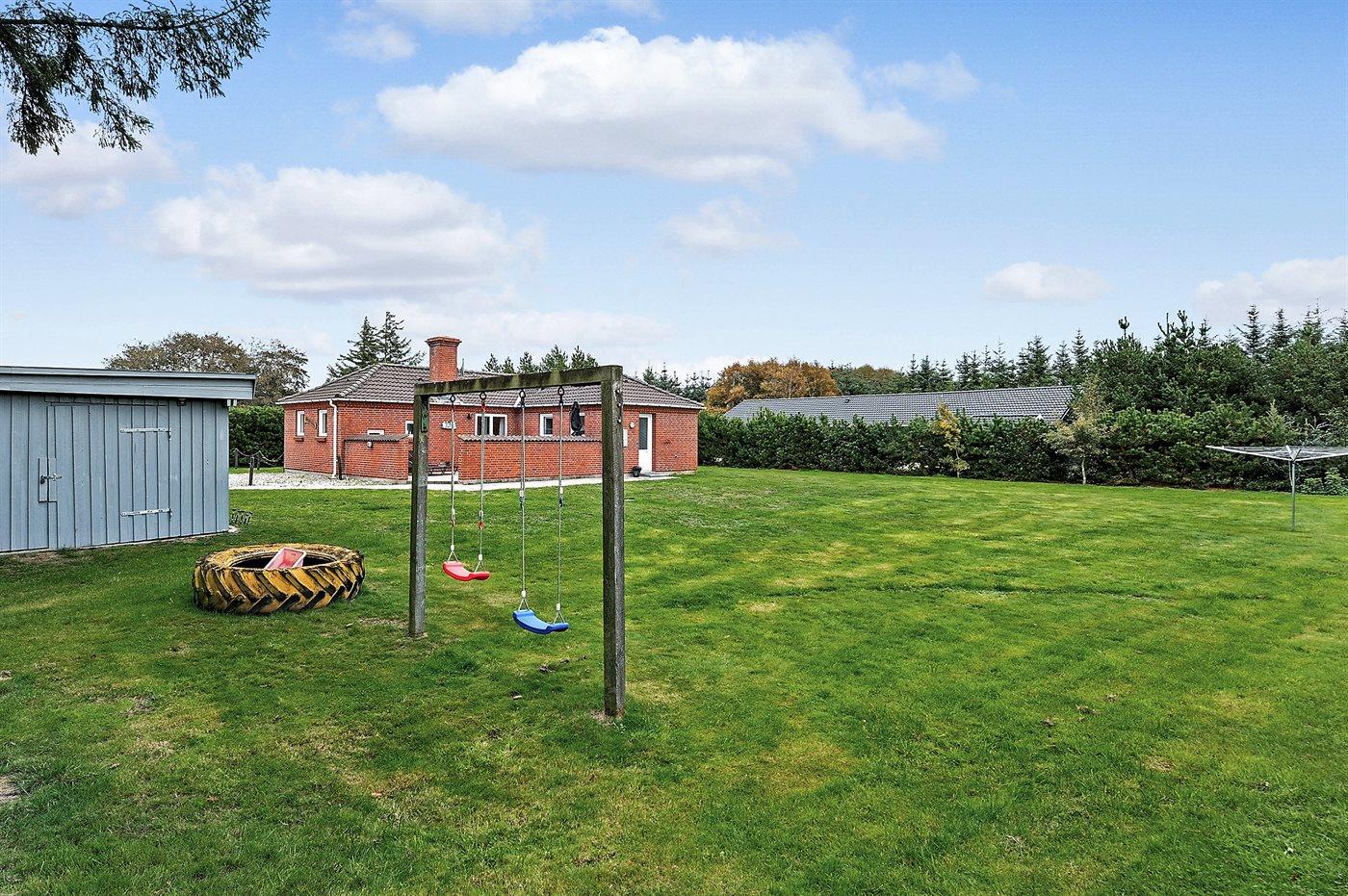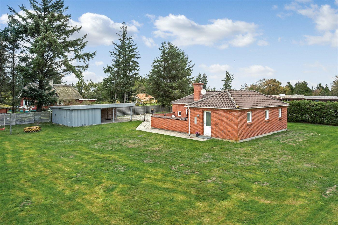 På grunden, hvor der er god plads til diverse boldspil, findes der også sandkasse og gynge. Carport til rådighed.