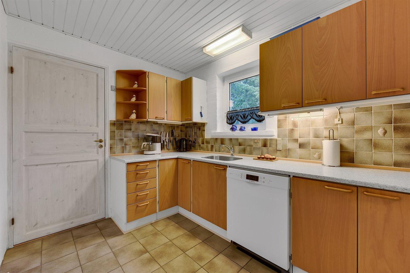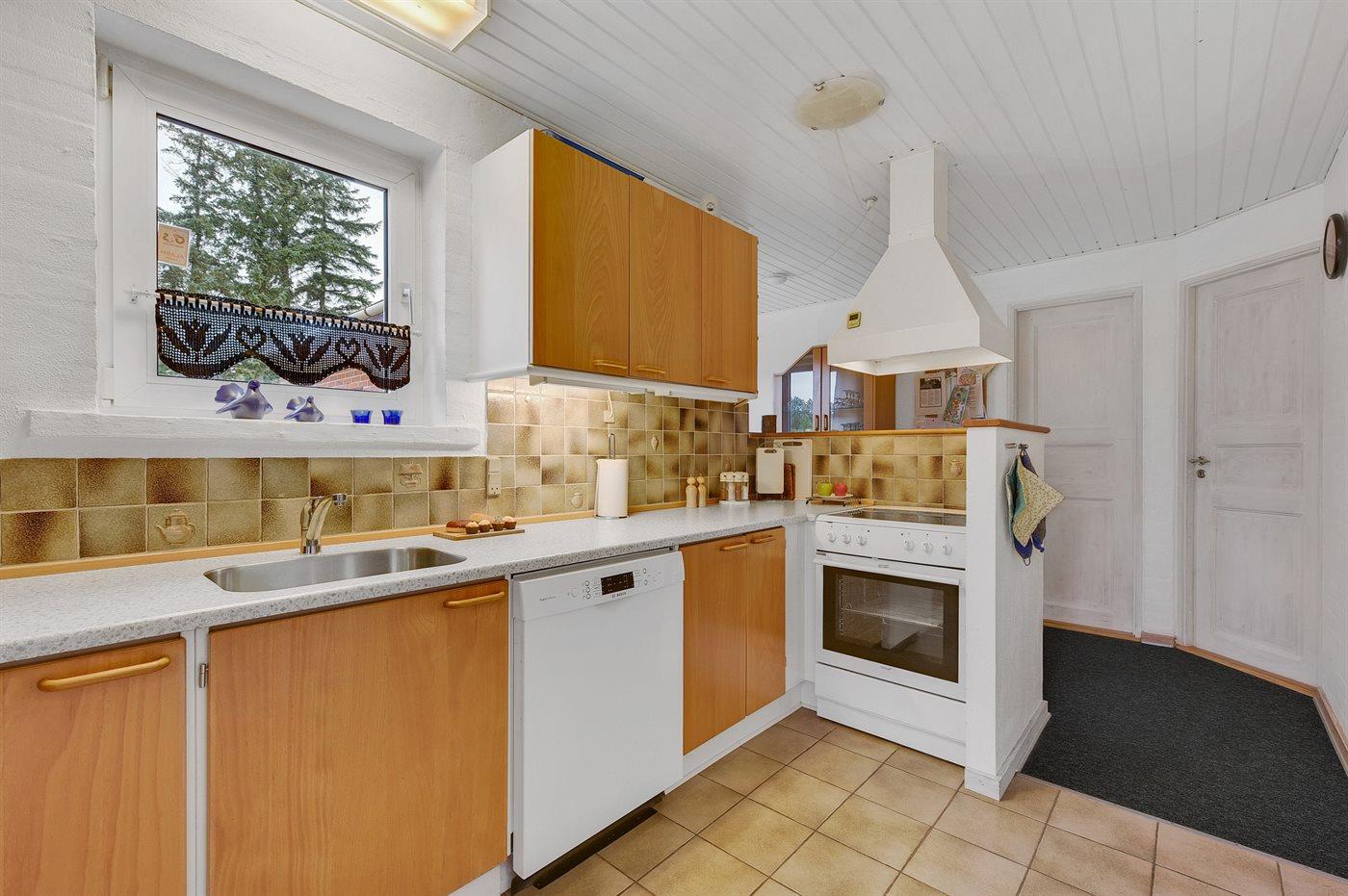 Velholdt 85 m2 stort, vinkelbygget sommerhuse i sten med tegltag, bygget i 1991, beliggende i rolige omgivelser på en 1920 m2 stor naturgrund omgivet af træer.