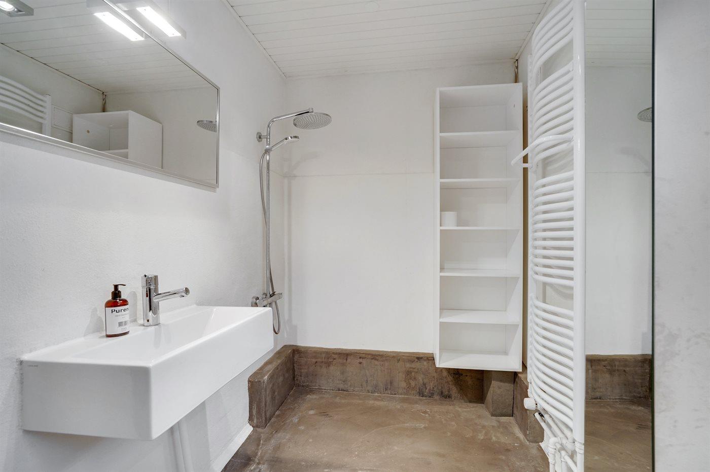 Der er 1 badeværelse med bruser og 1 toilet.. Der er gulvvarme på 1 badeværelse.