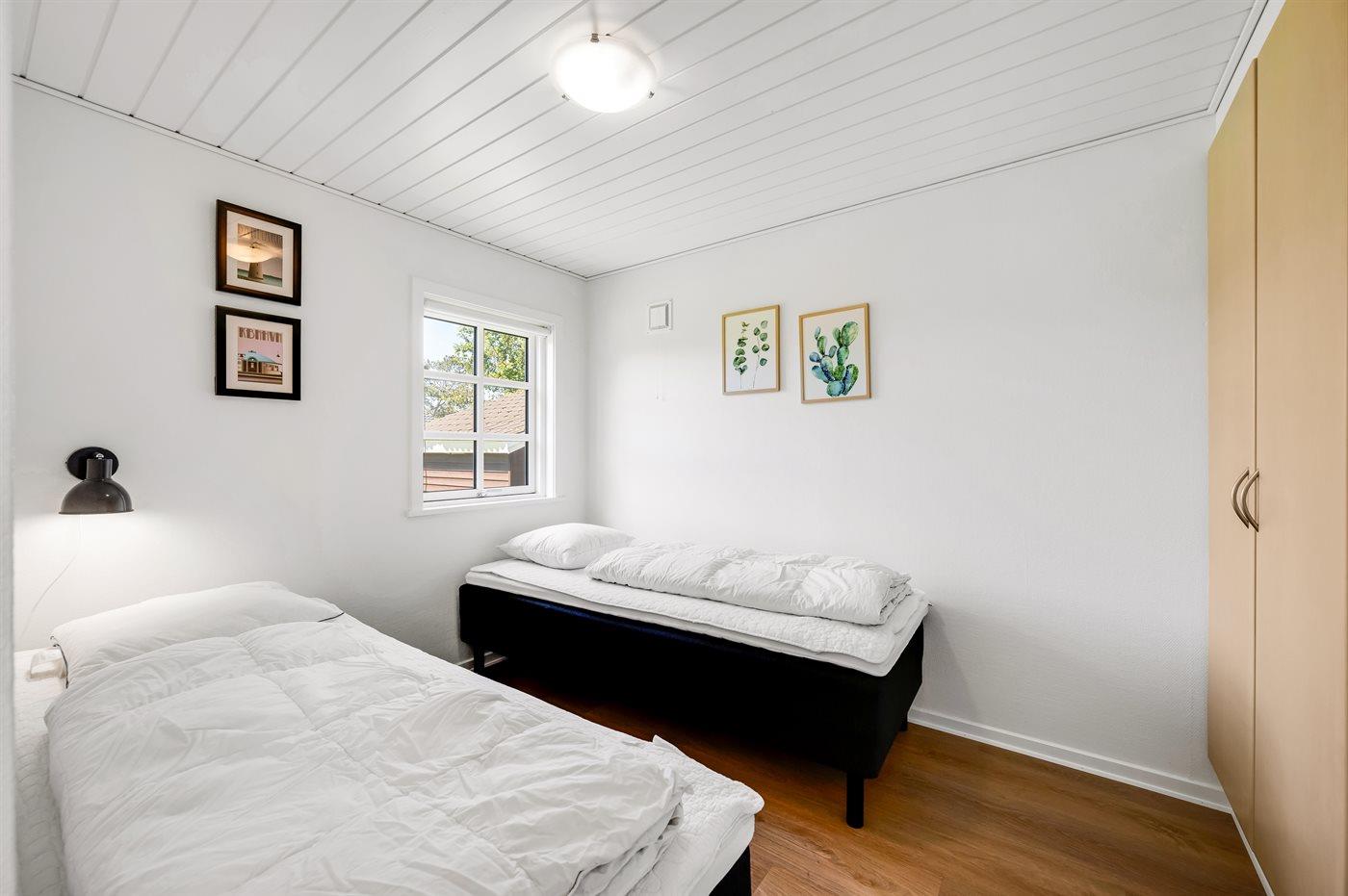 Der er i alt 4 soveværelser. Sovepladserne fordeler sig på: 6 sovepladser i dobbeltsenge. 2 sovepladser i enkeltsenge. Derudover er der 1 stk. barneseng.