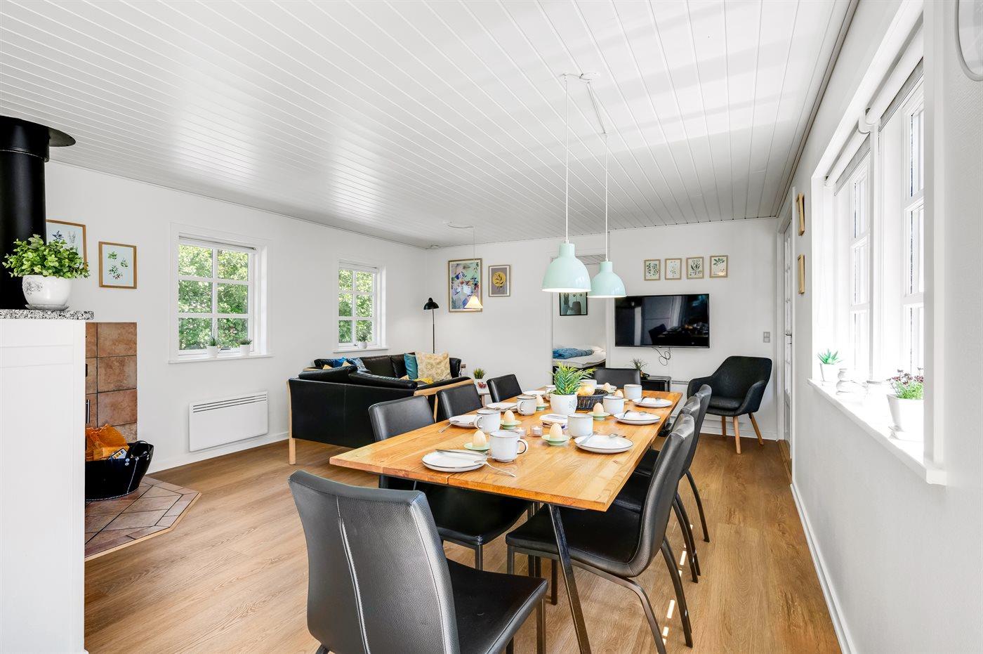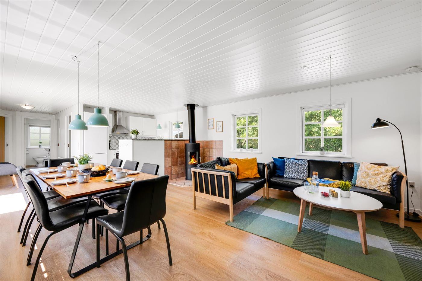 Sommerhuset egner sig til 8 personer samt 1 barn op til 3 år. Ferieboligen er på 150 m² og er bygget i 2004. Det er tilladt at medbringe 2 husdyr. Ferieboligen er udstyret med energibesparende varmepumpe. Ferieboligen er udstyret med energibesparende luft til vand varmepumpe. Ferieboligen har vaskemaskine. Tørretumbler. Frysekapacitet på 60 liter. Der er desuden brændeovn. Til de små er der 1 stk. barnestol.