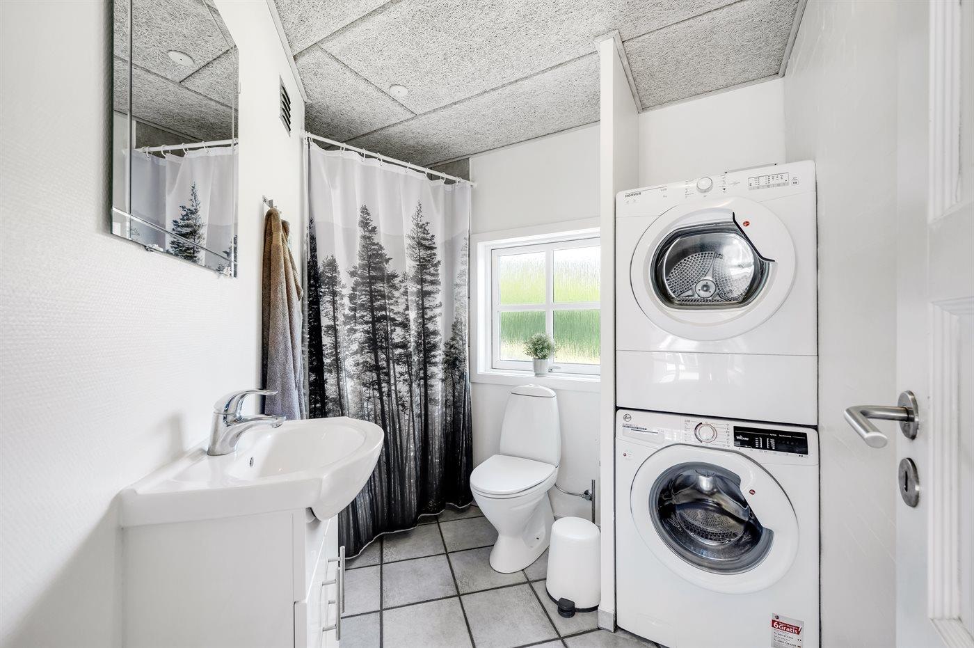 Der er 2 badeværelser med bruseniche og 2 toiletter. Der er gulvvarme på 2 badeværelser. I saunaen er der mulighed for afslapning.