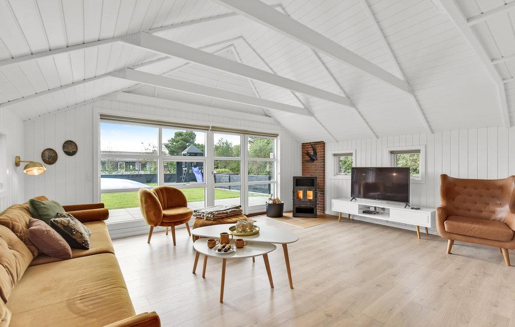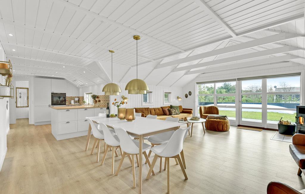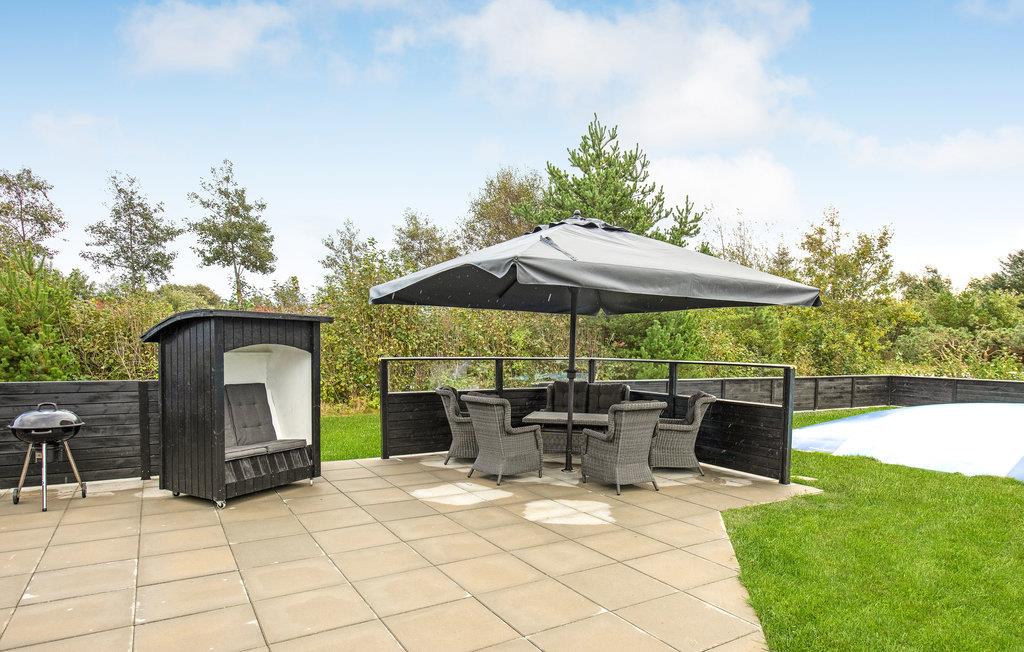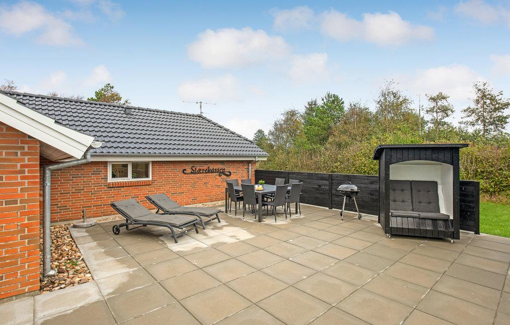 Kvalitet og rummelighed kendetegner huset, der er velindrettet med mange faciliteter som f.eks. alle hårde hvidevarer, spabad og sauna. Udendørs indbyder den 80 m2 store terrasse til solbadning om dagen og hygge i solnedgangens skær om aftenen. Haven er særdeles børnevenlig og byder både på et klatrestativ og en hoppeborg, så her kan børnene få flere timer til at gå i løbet af ferien. I kan roligt lade både børn og hunde løbe rundt, for haven er indhegnet.