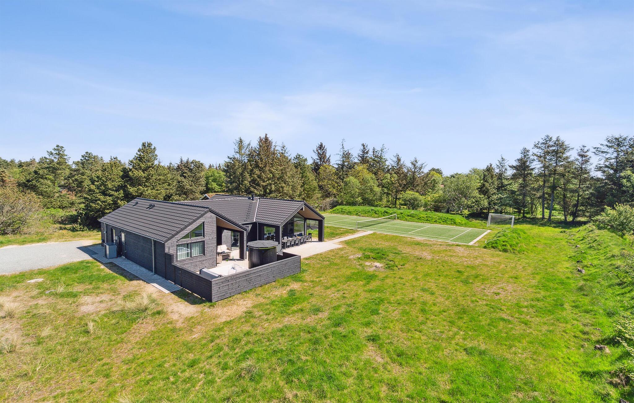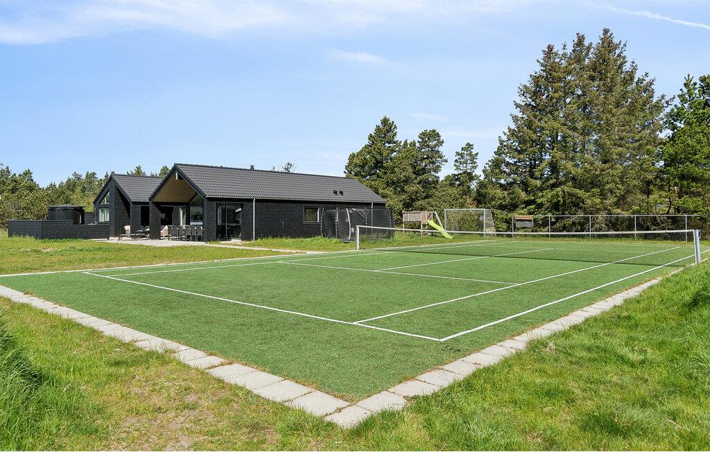 Rummeligt feriehus i Blåvand med indendørspool, sauna, tennisbane og tæt på stranden.