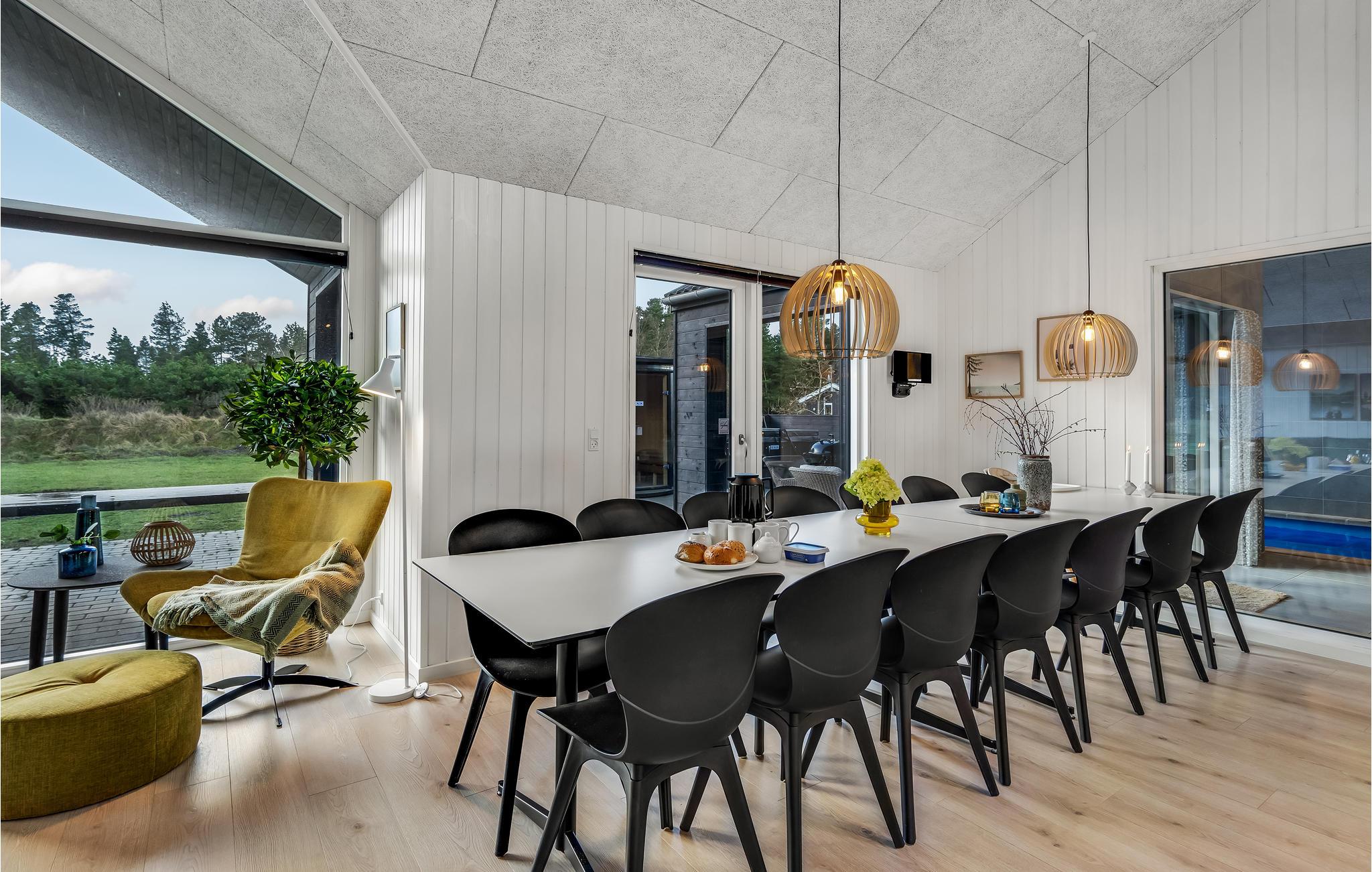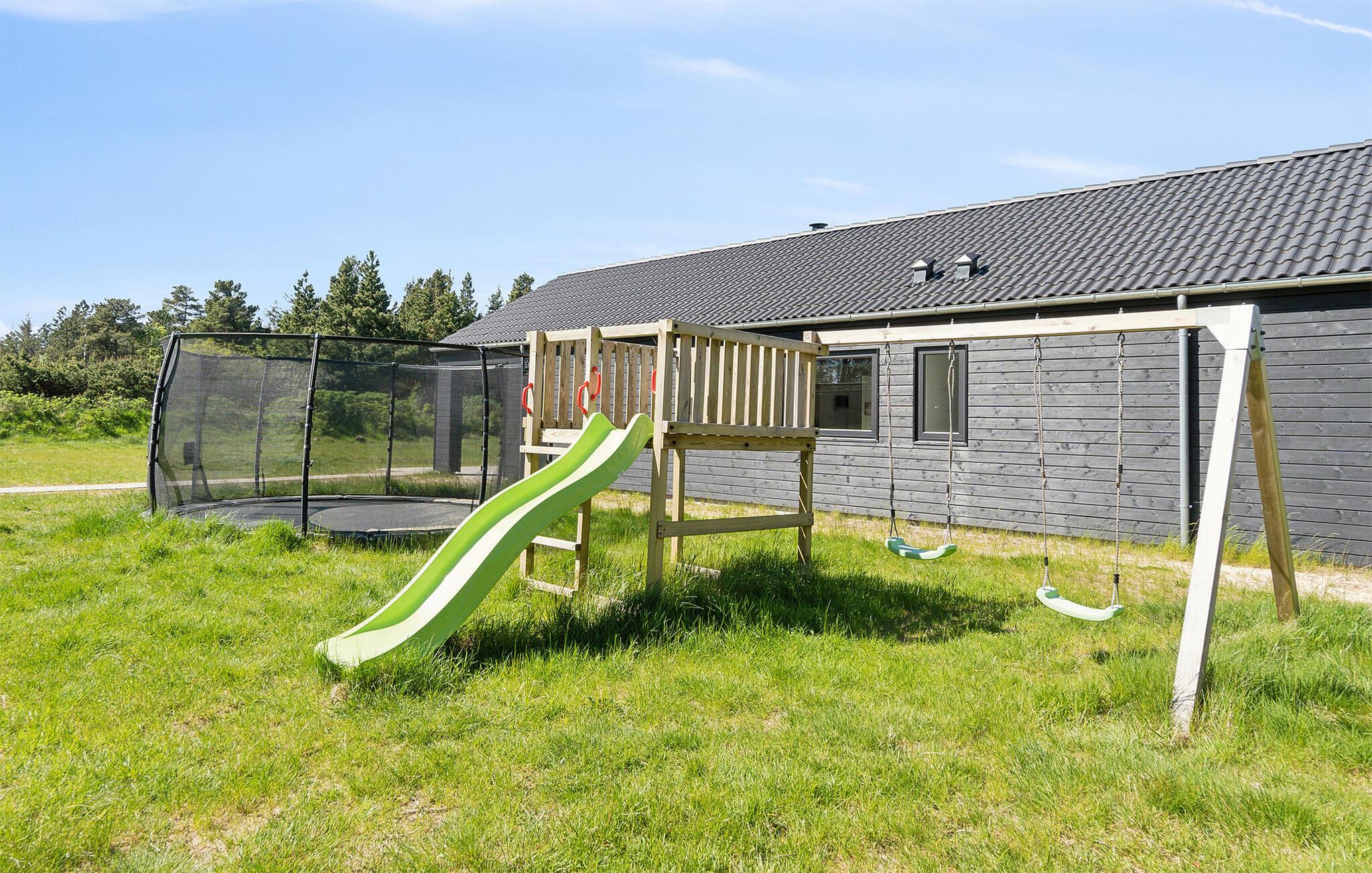 Huset byder velkommen i en god beliggenhed i gåafstand til stranden. Føl jer hjemme her med hele den store familie eller gruppe af venner i de hyggelige lokaler. Alt her er rettet mod en uforglemmelig tid sammen. Tilbring uforglemmelige timer i den indendørs pool, slap af i jeres sauna og gør jer godt tilpas om aftenen på de komfortable siddepladser i stuen til en film- eller spilleaften. Feriehusets udendørsområde har også meget at byde på. Nyd solen på terrassen, mens jeres børn graver, leger og hopper på trampolinen, og senere kan I samle hele familien til en lækker grillmiddag. Afslut aftenen med en afslappende tur i det udendørs spabad eller snup et spil tennis, hvis I trænger til at røre jer oven på dagens udflugter.