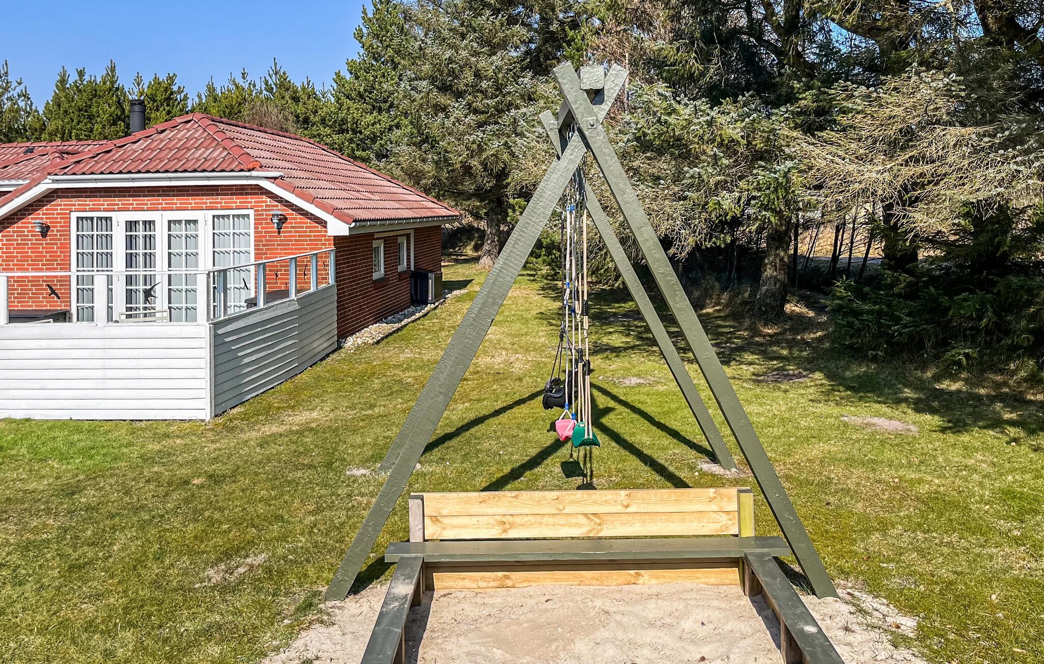 Hyggeligt feriehus i Blåvand med spabad, brændeovn og skønne udendørsarealer til afslapning og leg.