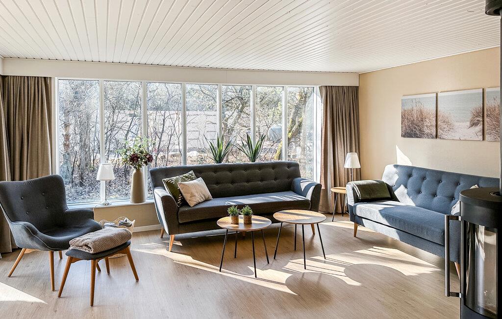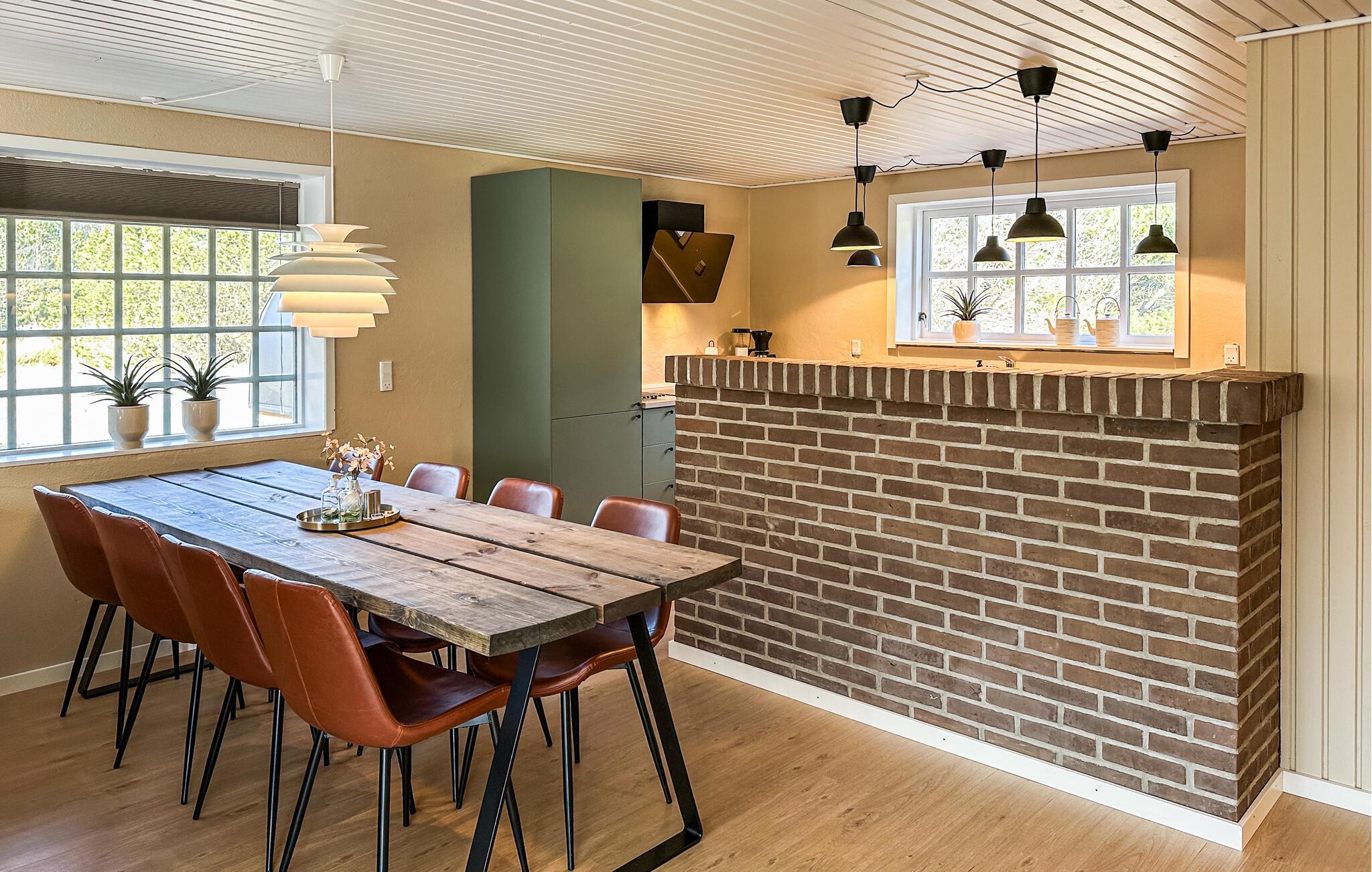 Dette rummelige feriehus i hjertet af Blåvand giver jer den ideelle base til at kombinere afslapning med sjove aktiviteter for hele familien. Det omhyggeligt renoverede interiør giver jer en indbydende atmosfære, hvor I kan hygge jer med madlavning, måltider og spil med familien. Snup en sjov dyst ved poolbordet, sæt jer og fordøj dagens indtryk foran brændeovnen eller fordyb jer i en god feriebog.