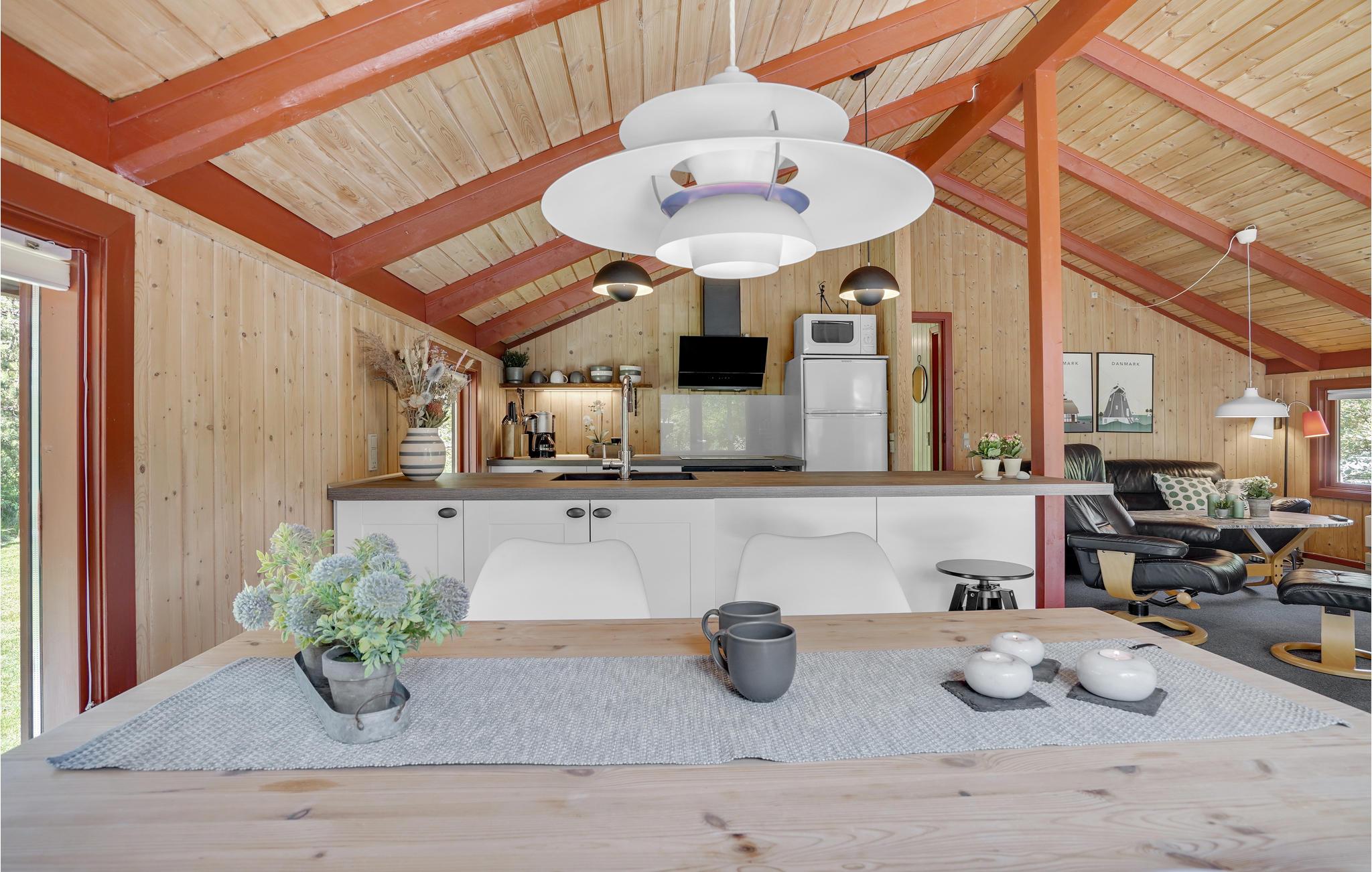 Dette hyggelige feriehus, der blev renoveret i 2021, ligger midt i Blåvand. De 3 soveværelser, 2 med dobbeltsenge og et med en enkeltseng, kan rumme op til 5 personer, og I kan desuden medbringe jeres kæledyr på ferien her. Her finder I alle de moderne bekvemmeligheder, der er nødvendige for en vellykket ferie og I kan oven i købet let klare vasketøjet løbende med den kombinerede vaskemaskine og tørretumbler. På køligere aftener kan I hygge jer ved brændeovnen og nyde den dejlige atmosfære.