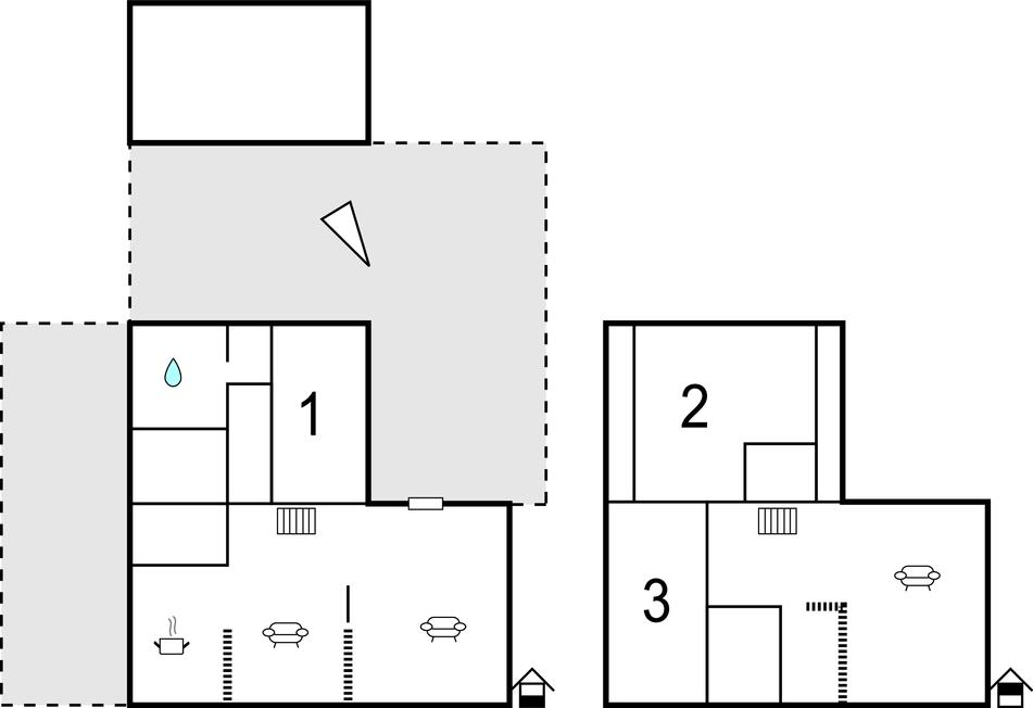 Badeværelse 6m2 (nr. 1) - WC. Varmt og koldt vand. Bruser
