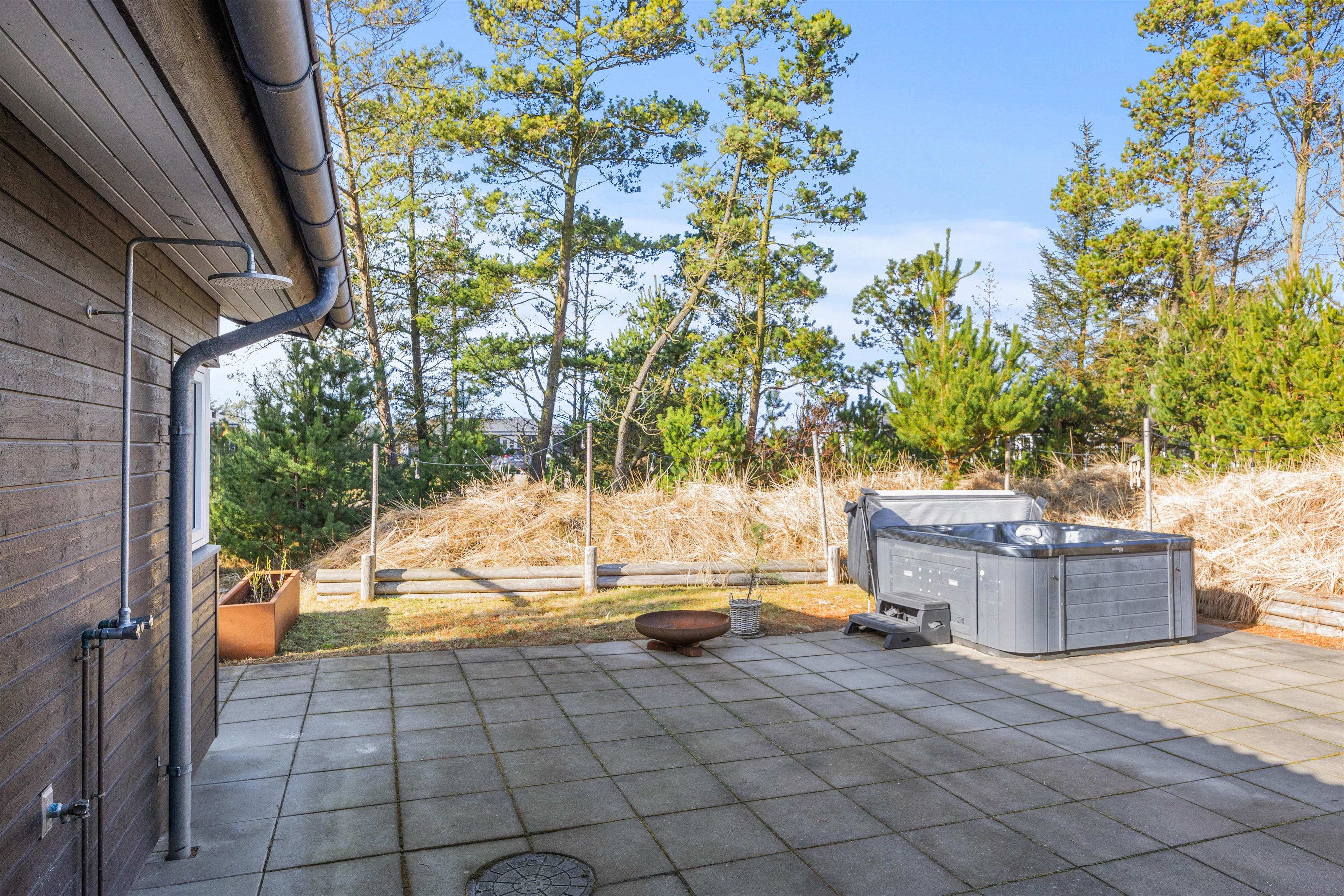 Sommerhuset ligger på en 1500 m² stor naturgrund med gode udendørs faciliteter såsom en gynge, en sandkasse og hyggelige havemøbler, og terrassen indbyder med sin dels åbne, dels overdækkede del til hyggelige aftener, måske over god feriemad fra gasgrillen. Her kan både børn og voksne i dén grad hygge og udfolde sig.