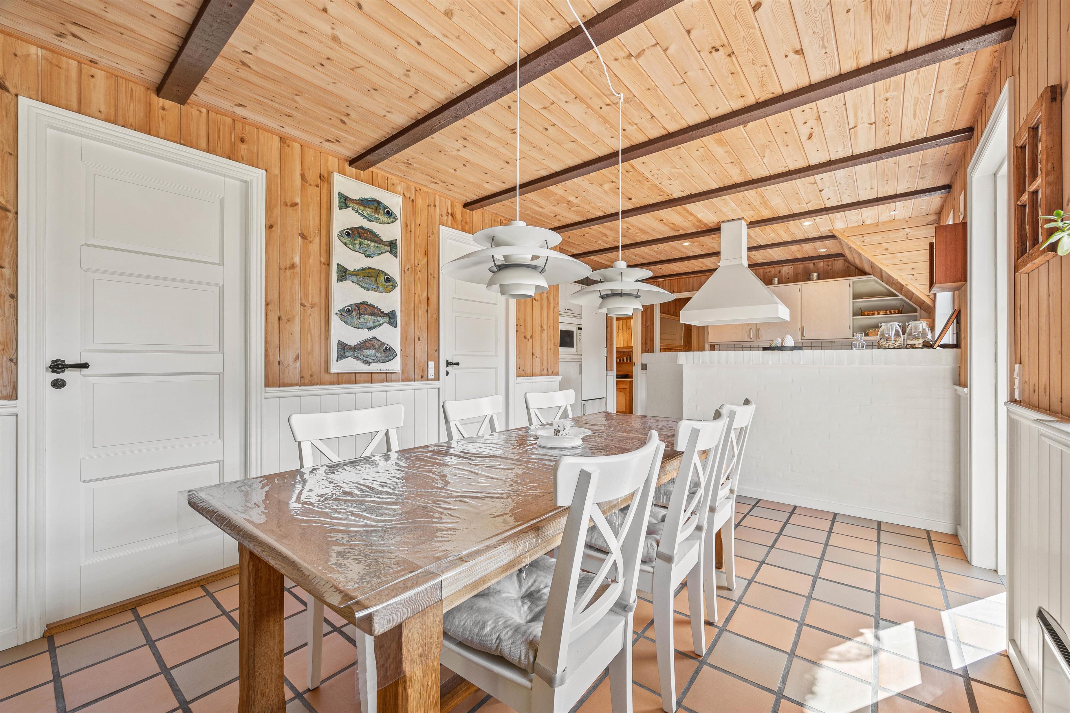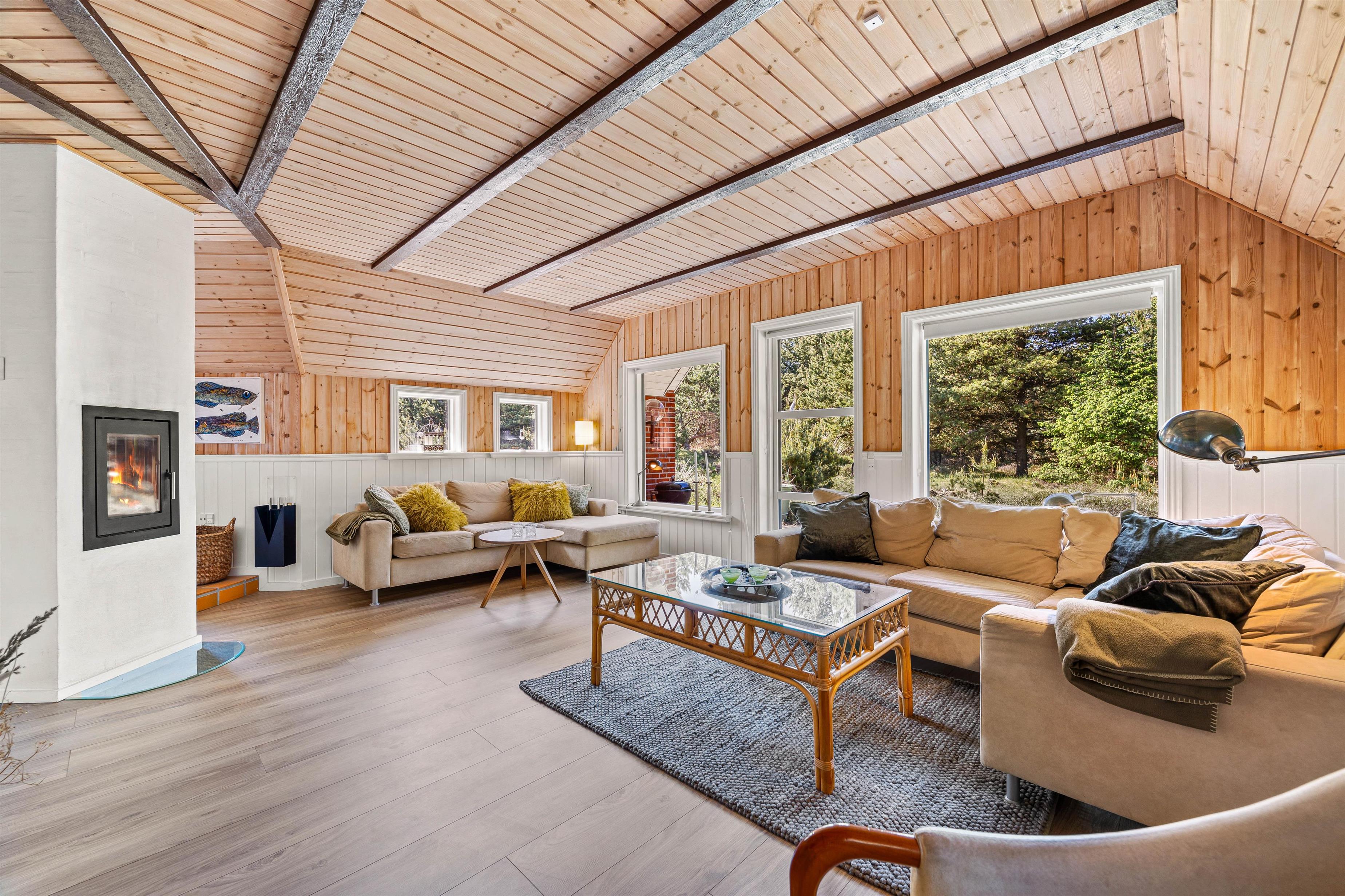 Et lyst feriehus, der med sine 3 fine soveværelser, er velegnet til ferie med både venner og familie. Indretningen er lys og holdt i rolige nuancer. Hjerterummet er det åbne alrum, der binder stue, køkken og spisepladsen sammen. Her er brændeovnen placeret centralt og skaber en naturlig opdeling af rummet. Her er god plads til familielivet, uanset om I skal spille brætspil, lave dejlig mad i køkkenet eller slappe af på sofaen. Til opvarmning er her både den hyggelige knitrende brændeovn samt en energibesparende varmepumpe.