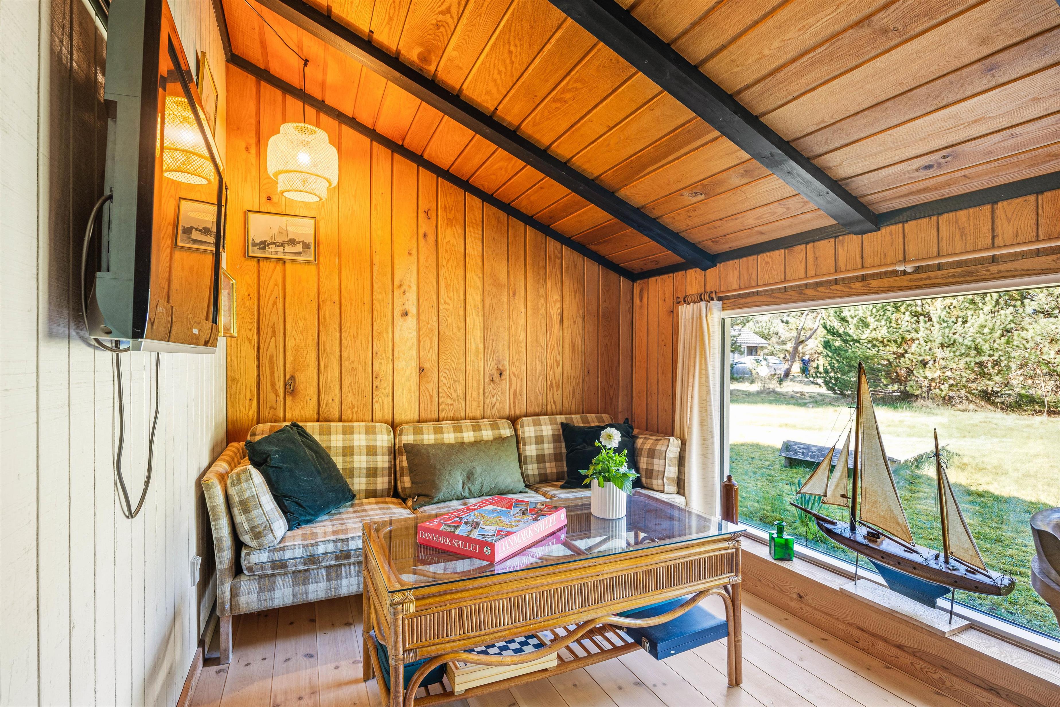 Det ekstra lille værelse med indgang fra stuen er indrettet som en lille stue med sofa og skrivebord, og fra det store vindue er der udsigt til den omgivende natur, hvor I kan være heldige at se dådyr og fugle.