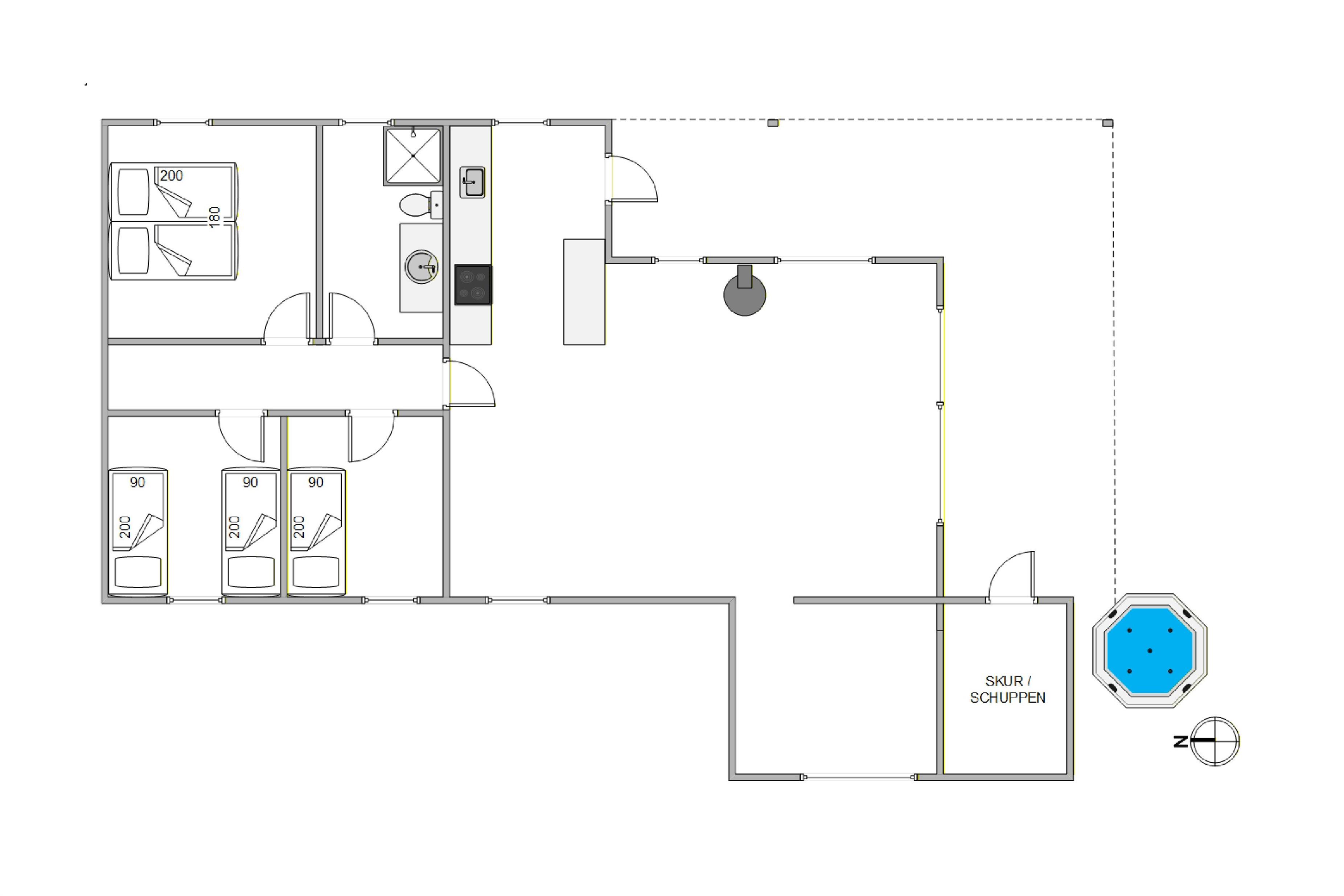 I de 3 soveværelser er 1 dobbeltseng og 3 enkeltsenge til rådighed, og badeværelset har gulvvarme, så I ikke får kolde fødder ved morgenbadet.