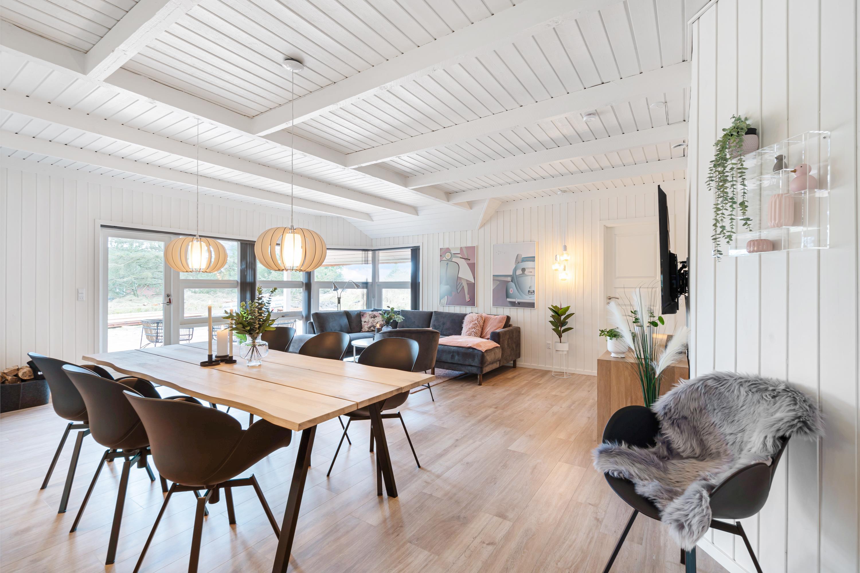 Ikke kun stuen, soveværelserne og feriehusets 2 badeværelser - men hele huset er med gennemgående gulvvarme fra den energivenlige luft til vand varmepumpe. Derudover er der brændeovn, så I skal ikke være bange for at fryse på ferien - heller ikke på en frostklar vinterdag.