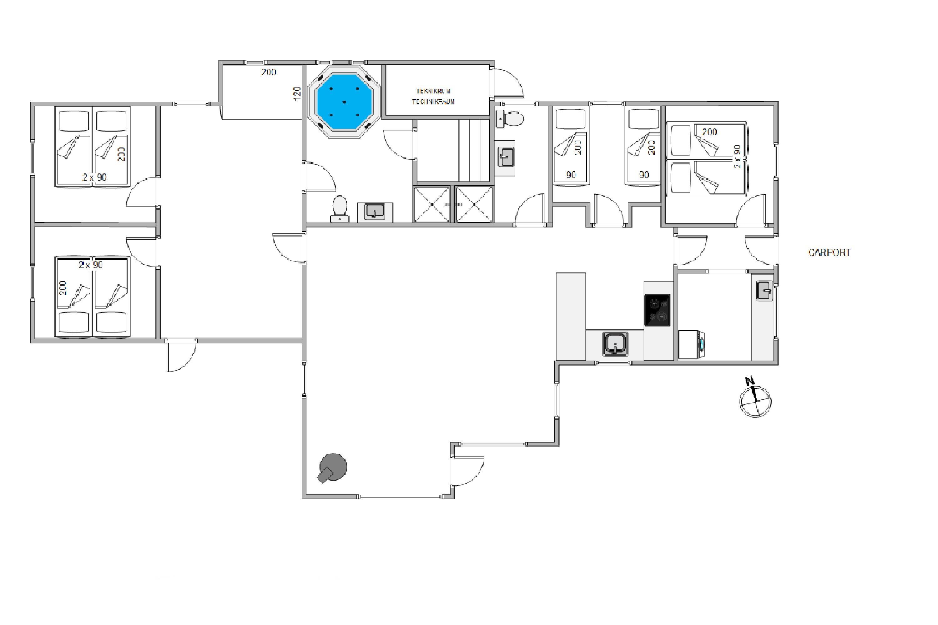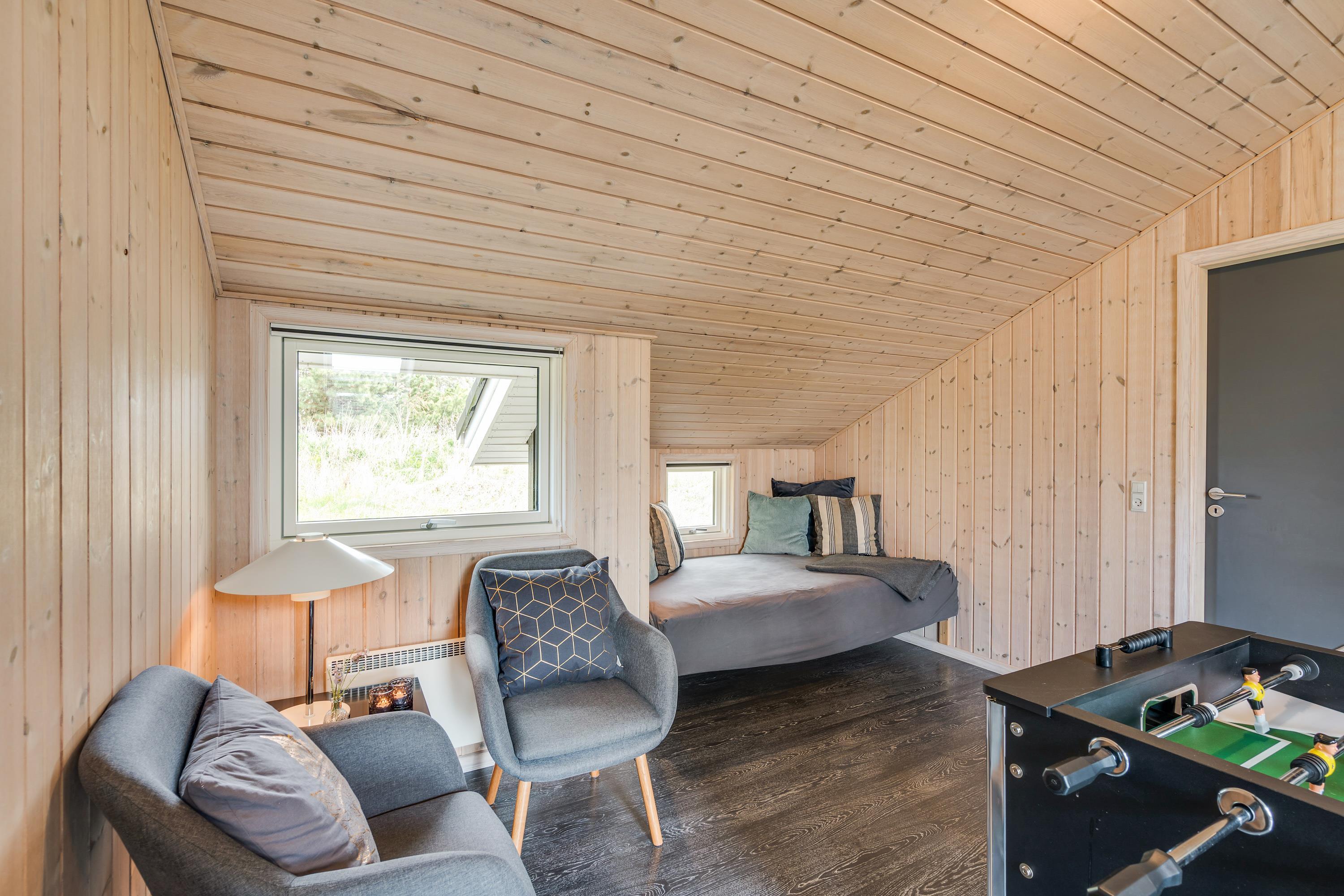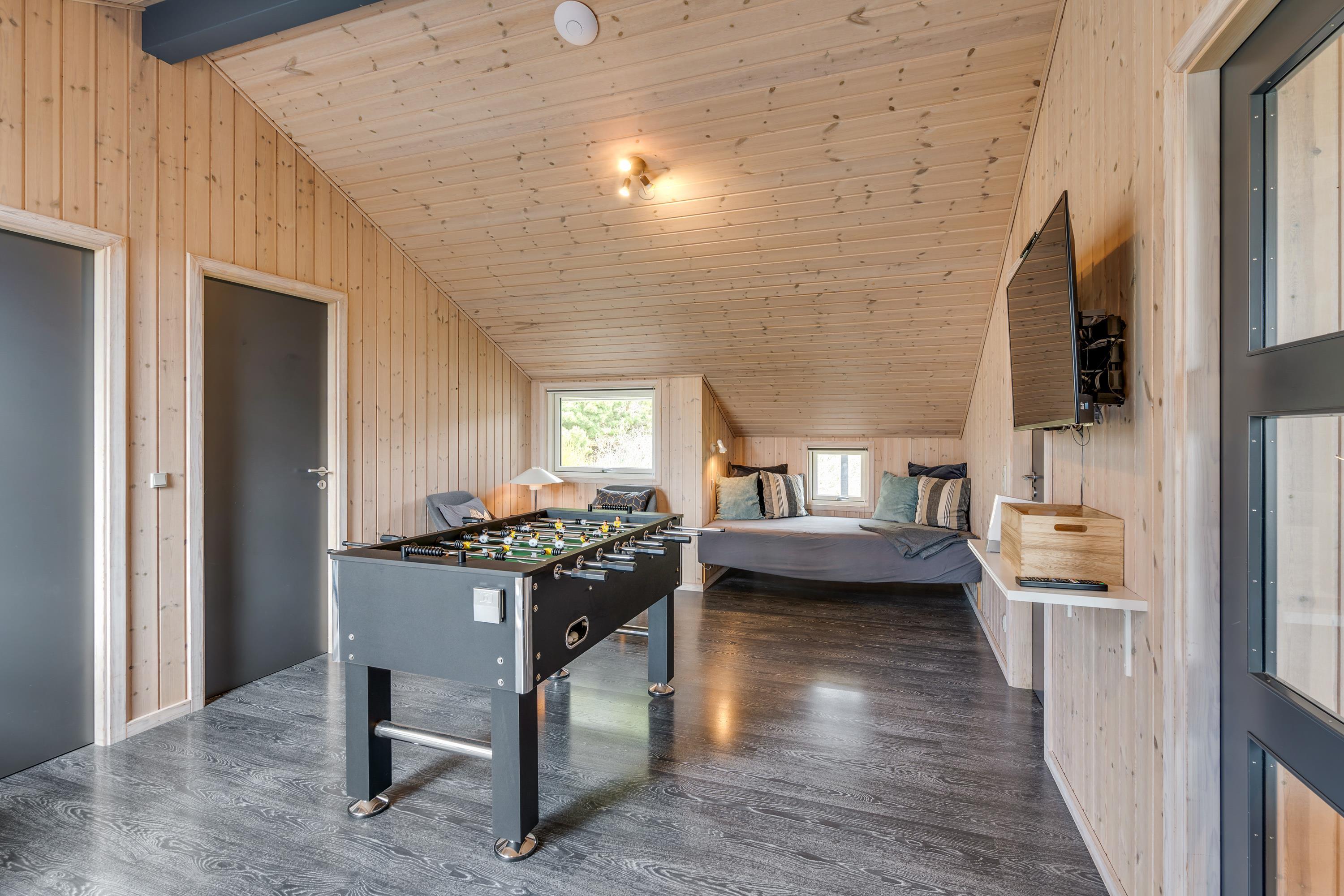 For de aktive og konkurrencemindede er der både bordfodbold og airhockey i husets lækre aktivitetsrum. Har I lyst til et spil dart, er der fint dartspil i sommerhusets carport. Når I ønsker wellness, står ferieboligens store badeværelse klar med både spabad og sauna. Spaen er oplagt til de små at plaske rundt i, eller når de voksne vil nyde ferien med et spabad og et køligt glas bobler.