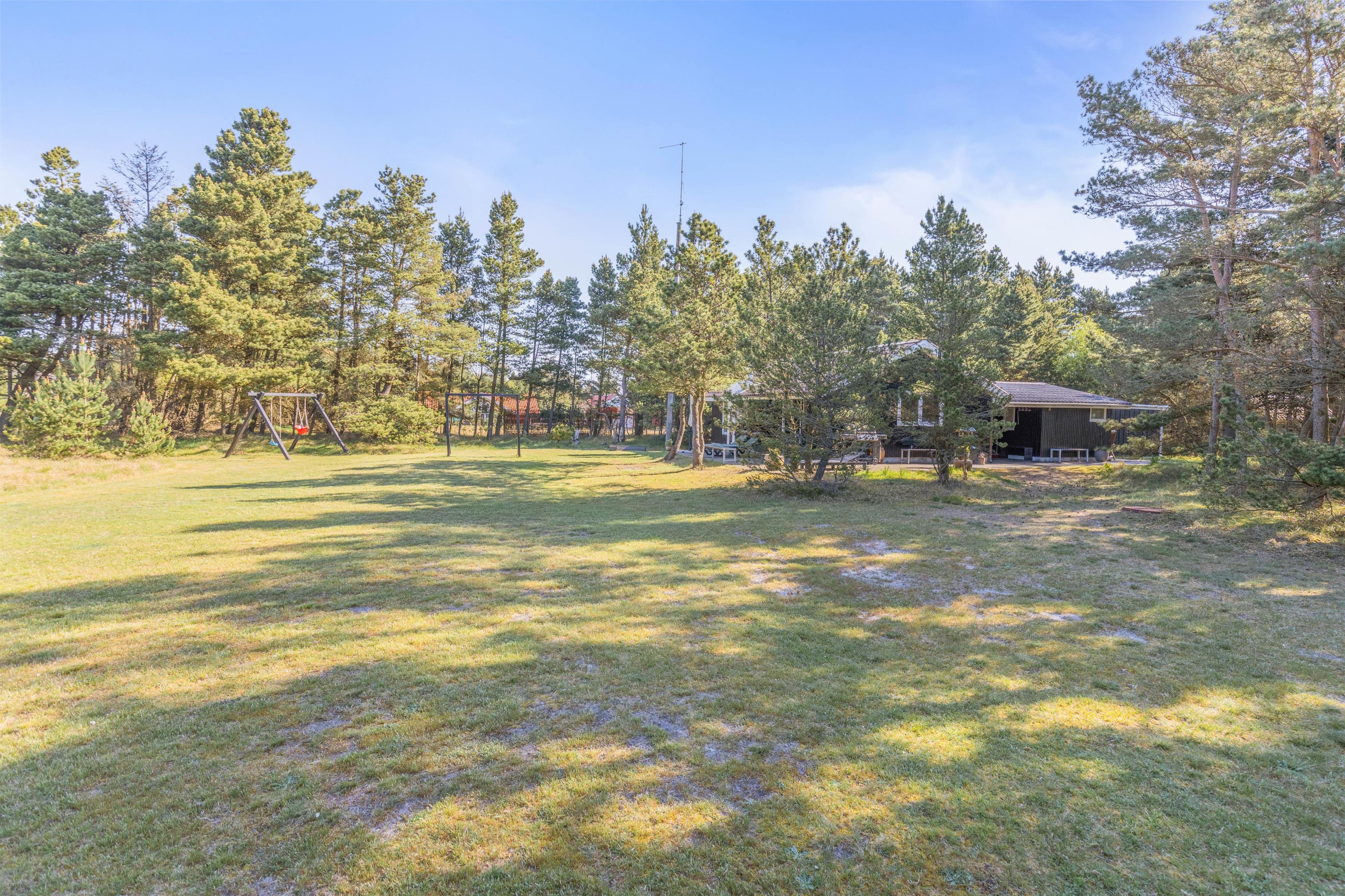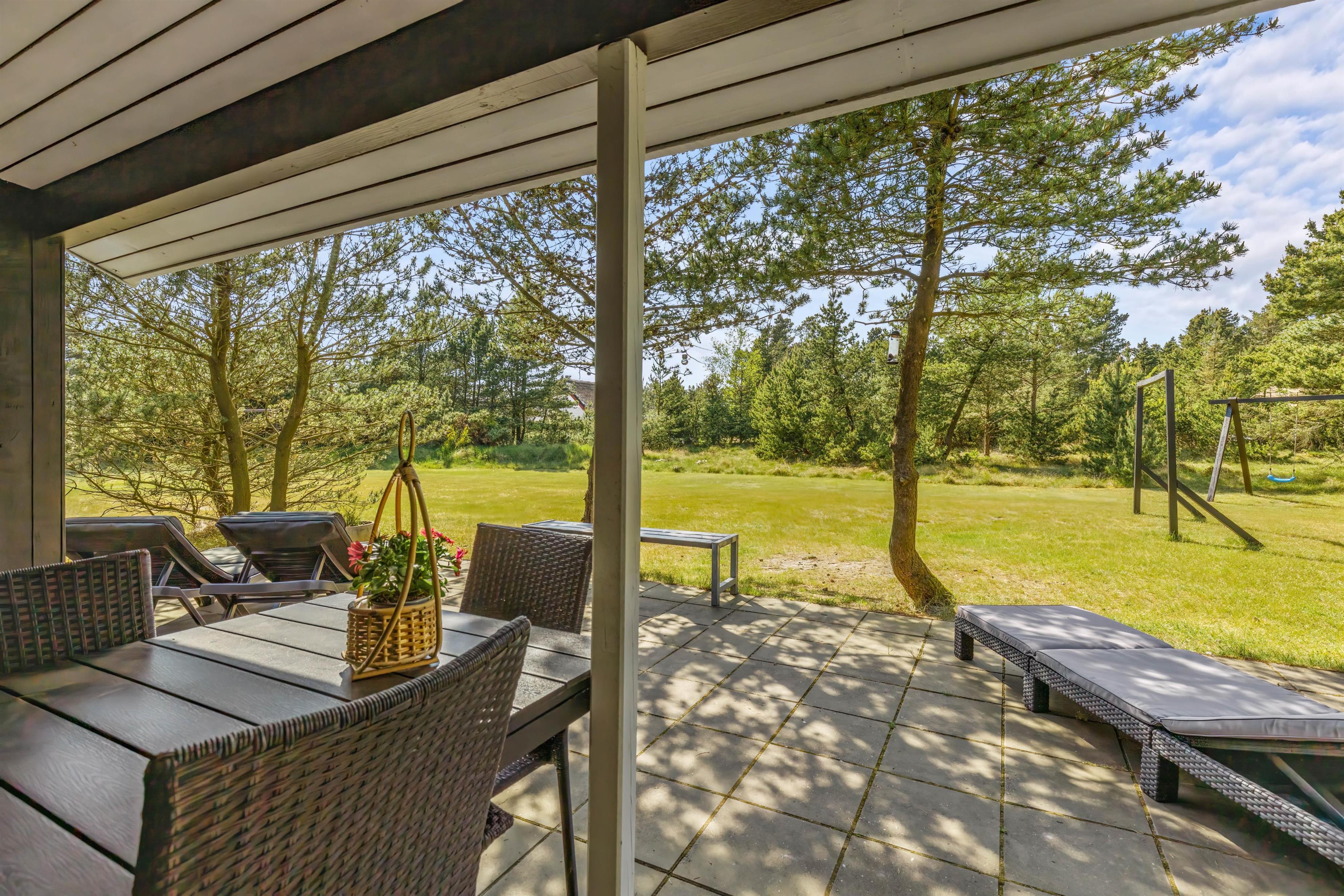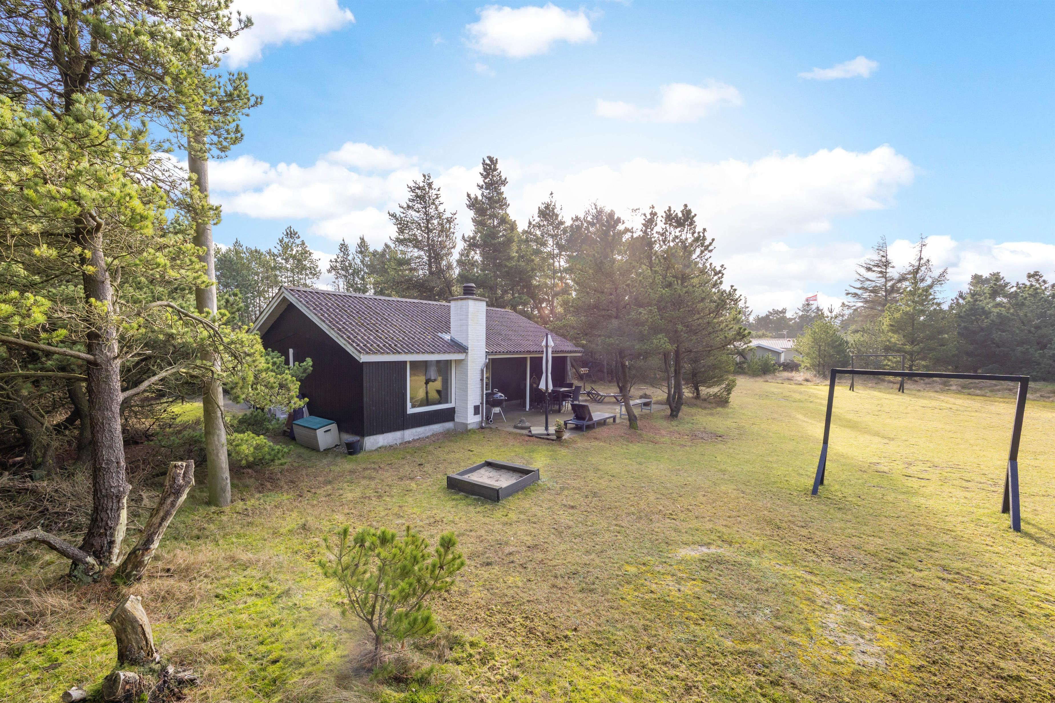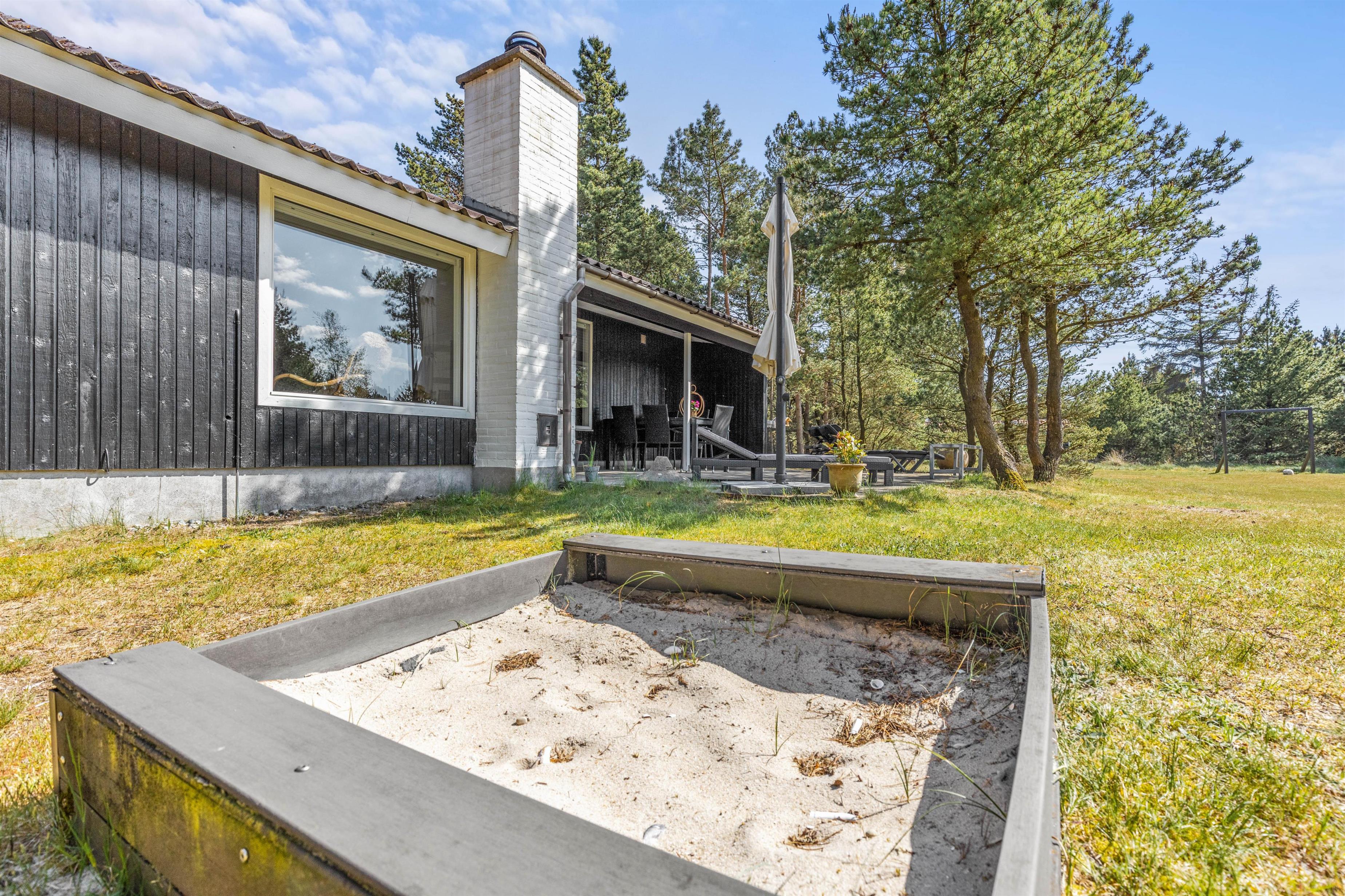 På terrassen har I havemøbler og liggestole til rådighed, så I har mulighed for at læne jer godt tilbage og bare slappe af i solen. Imens kan børnene lege i haven, hvor der både er en sandkasse og et gyngestativ til dem.