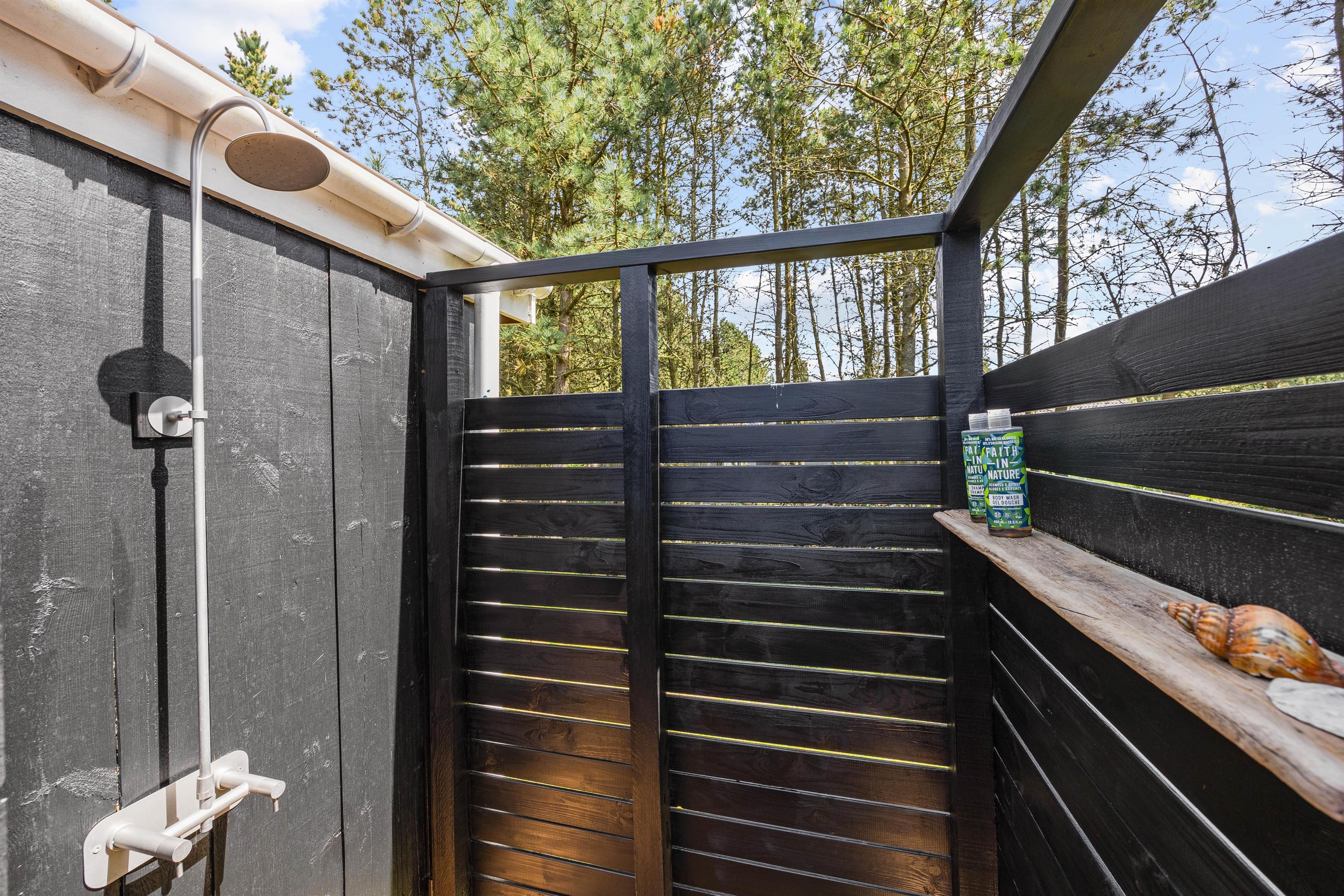 Sommerhuset ligger på en grund, der er 2.800 kvadratmeter stor, og på udeområdet venter jer en skøn, delvist overdækket terrasse og en have, hvor hele ferieflokken kan tilbringe de varme og solrige dage af jeres ferie. Trænger I til at blive varmet igennem, står udesaunaen klar til jer, og har I på varme dage brug for en hurtig afkøling, klarer udebruseren dette for jer - udebruseren kan benyttes i perioden 1. april til 31. oktober.