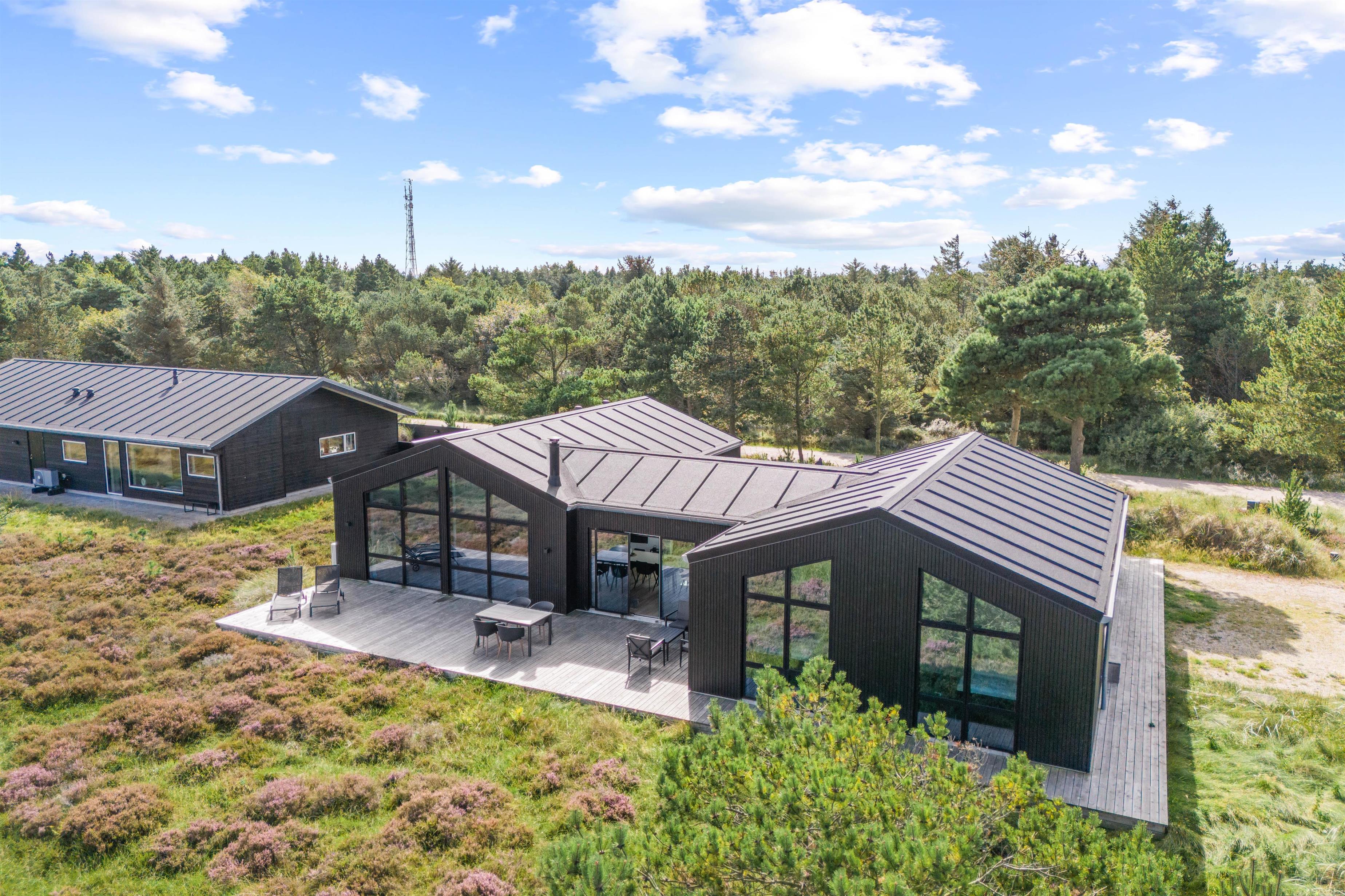 I den nordlige del af Blåvand ligger dette fantastiske sommerhus til 8 personer. Det femstjernede aktivitetshus er opført i 2020 og emmer af luksus – med et væld af fede faciliteter såsom udendørs spabad, infrarød sauna og aktivitetsrum med billard og bordtennis. Fra feriematriklen er der en exceptionel udsigt til det uberørte hedelandskab.