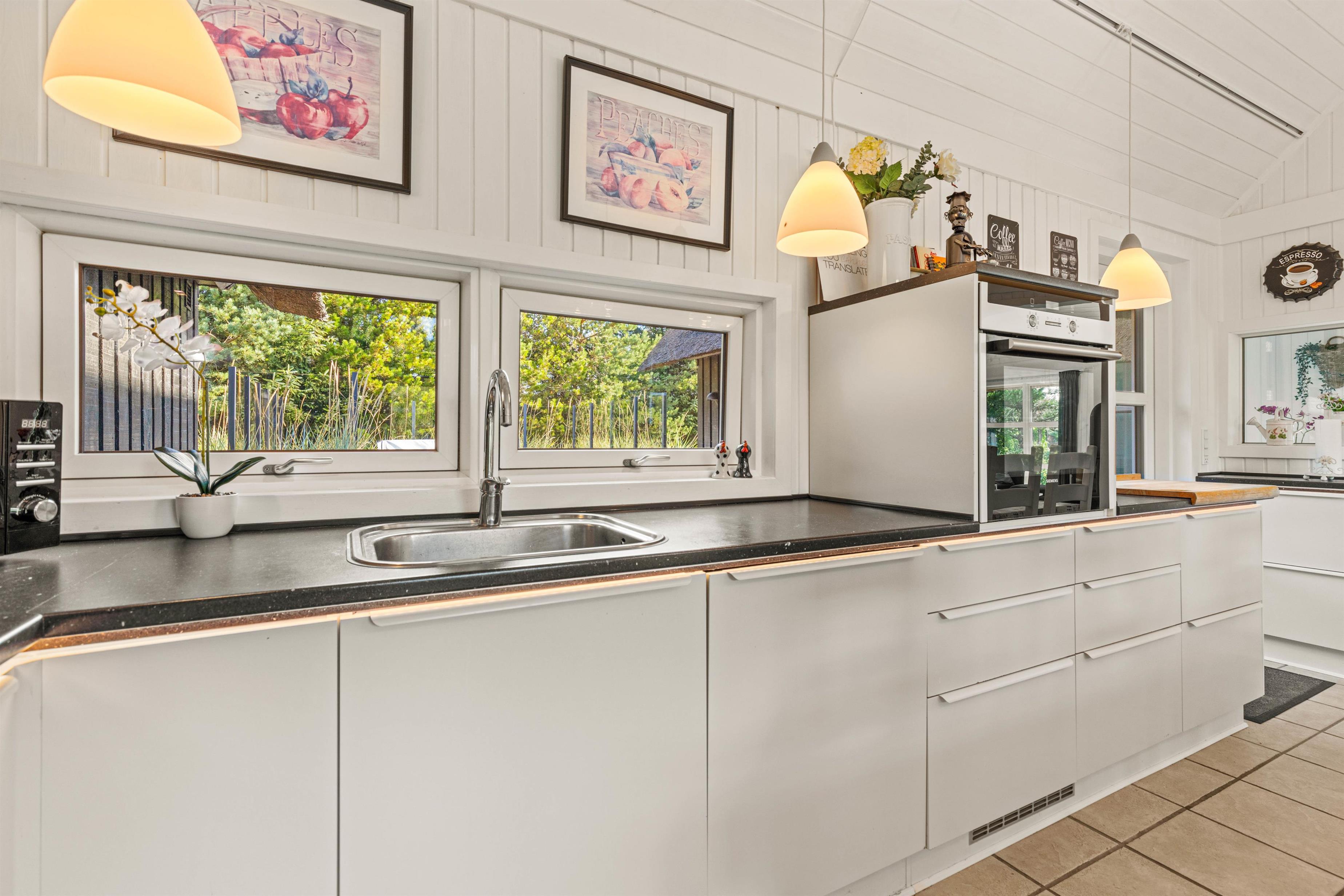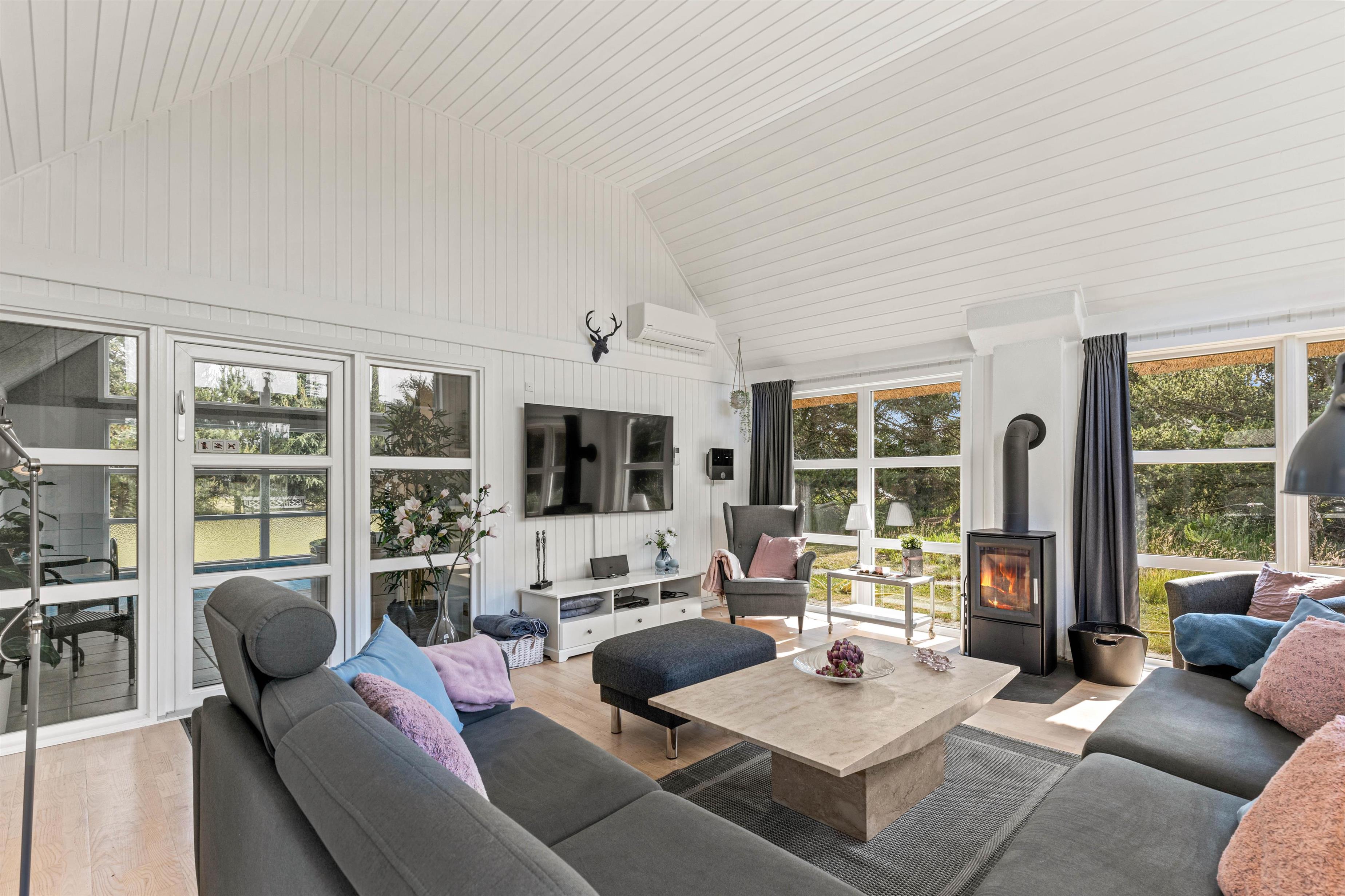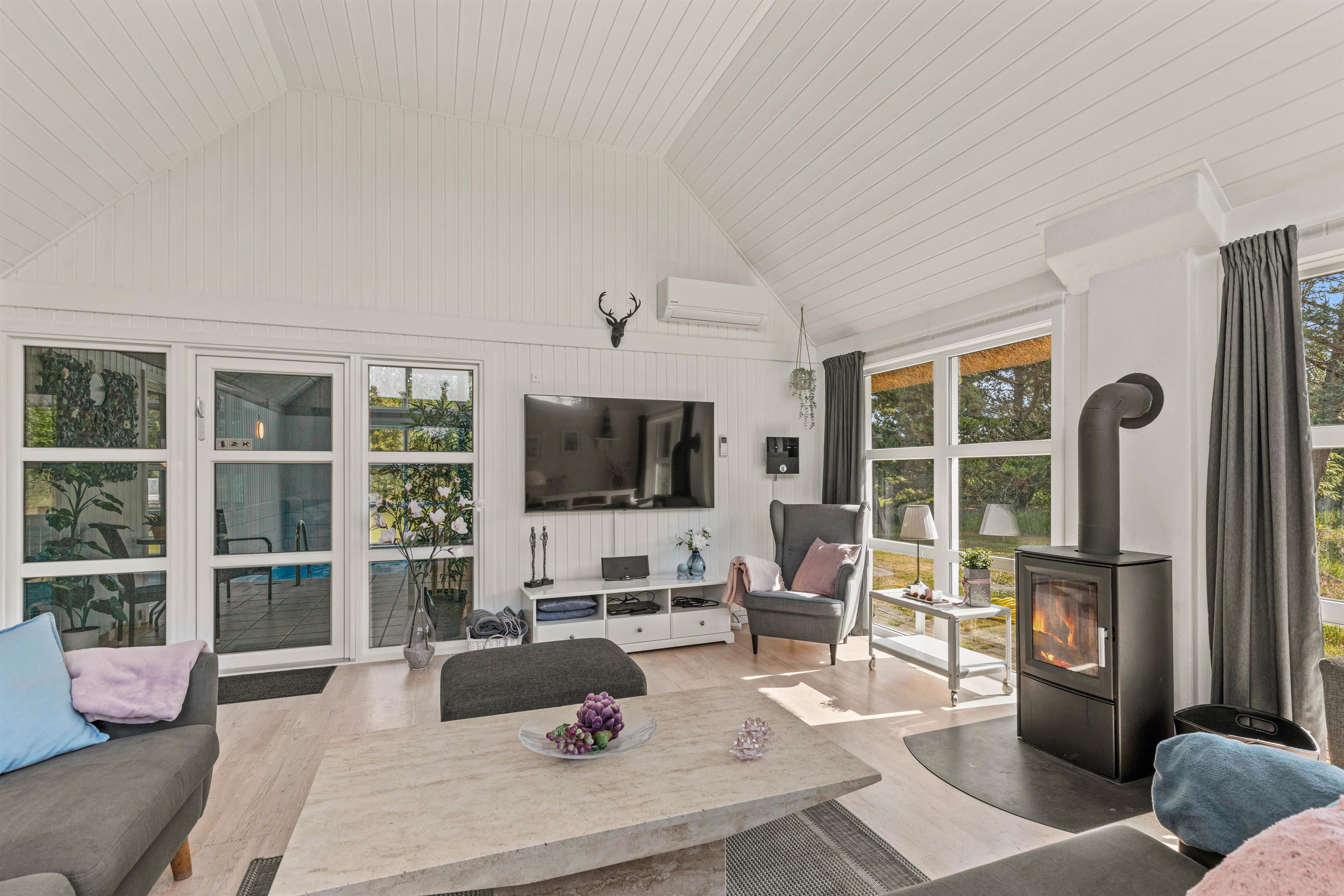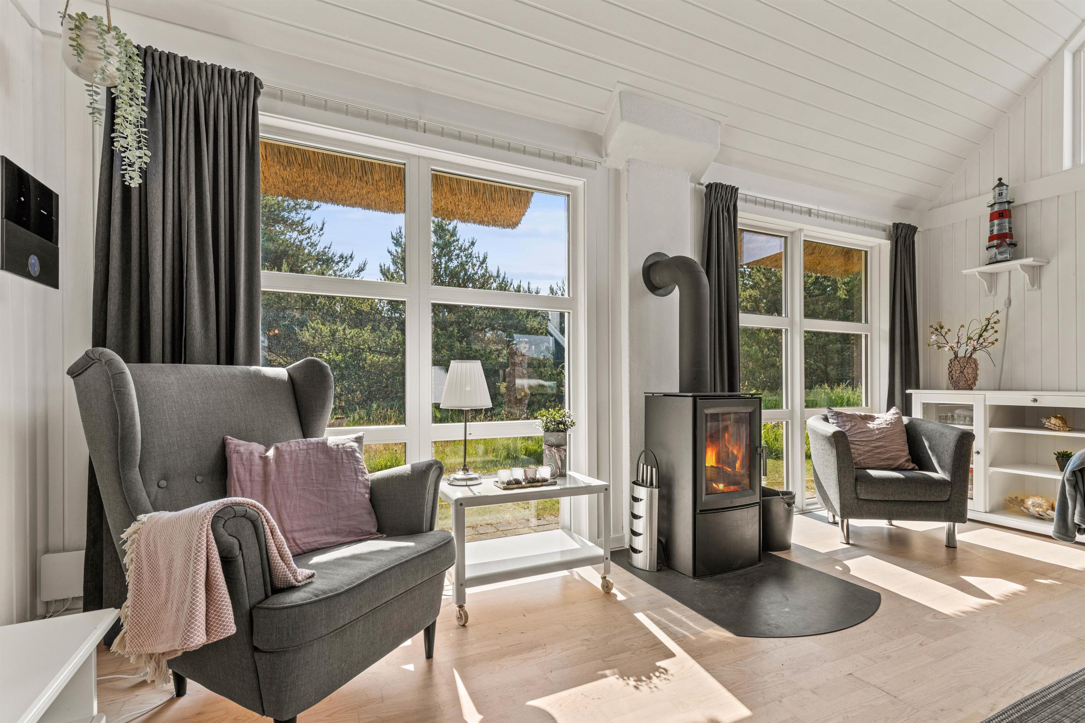 Dette charmerende sommerhus emmer af feriestemning og hygge. Sommerhusets store vinduespartier skaber et skønt lysindfald, og brændeovnen i stuen øger hyggen til næste niveau. Her kan hele familien samles til en film eller serie, når en god dag afsluttes. Der er selvfølgelig også trådløst internet. I sommerhuset finder I desuden også bordfodbold og airhockey, som med sikkerhed vil glæde familiens børn.