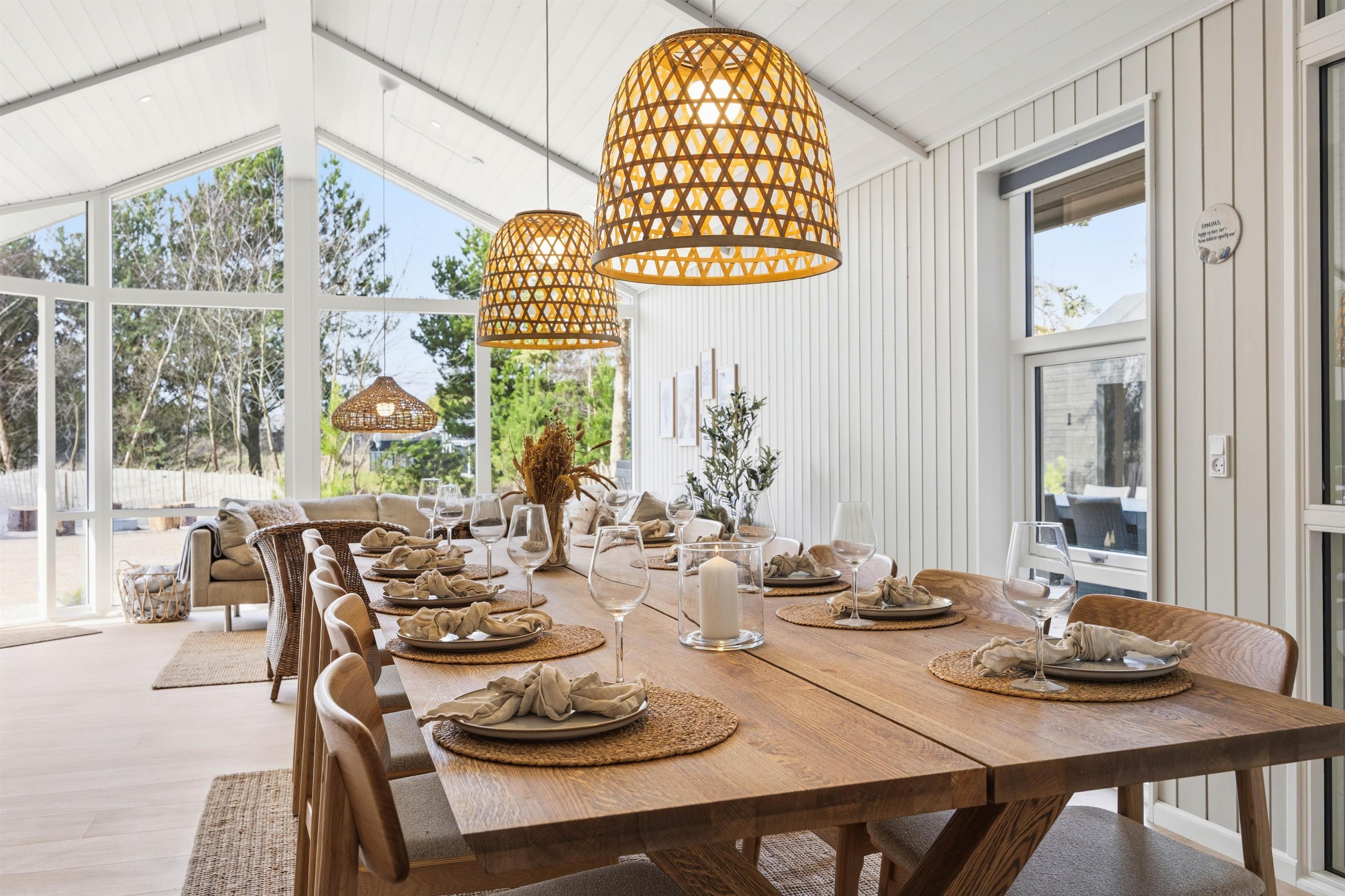 Allerede når du træder ind i dette rummelige poolhus på 202 m², mødes du af en varm og indbydende atmosfære. Indretningen er gennemført i moderne nordisk stil med ægte sommerhusstemning, og der er tænkt på hver eneste detalje. Det store køkken-alrum bliver hurtigt hjemmets samlingspunkt. Mens du tilbereder feriens favoritter, kan resten af familien hygge sig i sofaen ved den knitrende træpilleovn – træpillerne er selvfølgelig gratis.