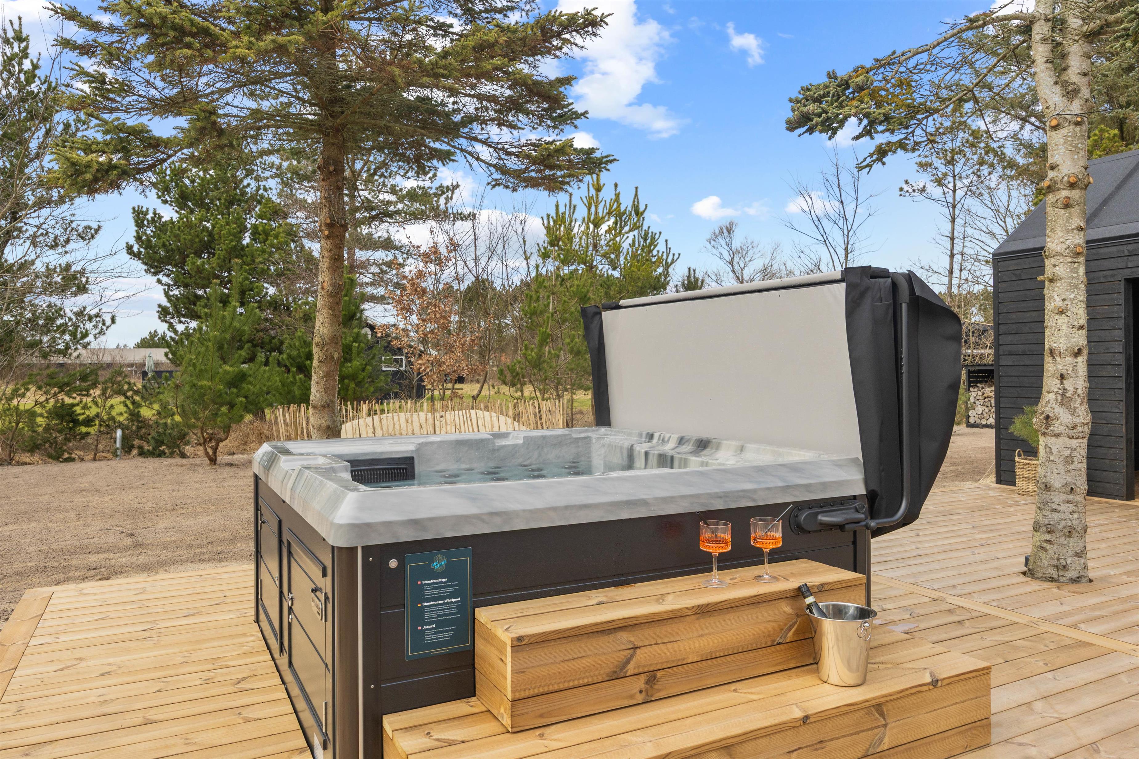 Husets absolutte juvel er det store terrasseområde, hvor luksus og natur smelter sammen. Her finder du et udendørs lounge- og wellnessområde med en skøn 5-personers udespa, som kan nydes året rundt.