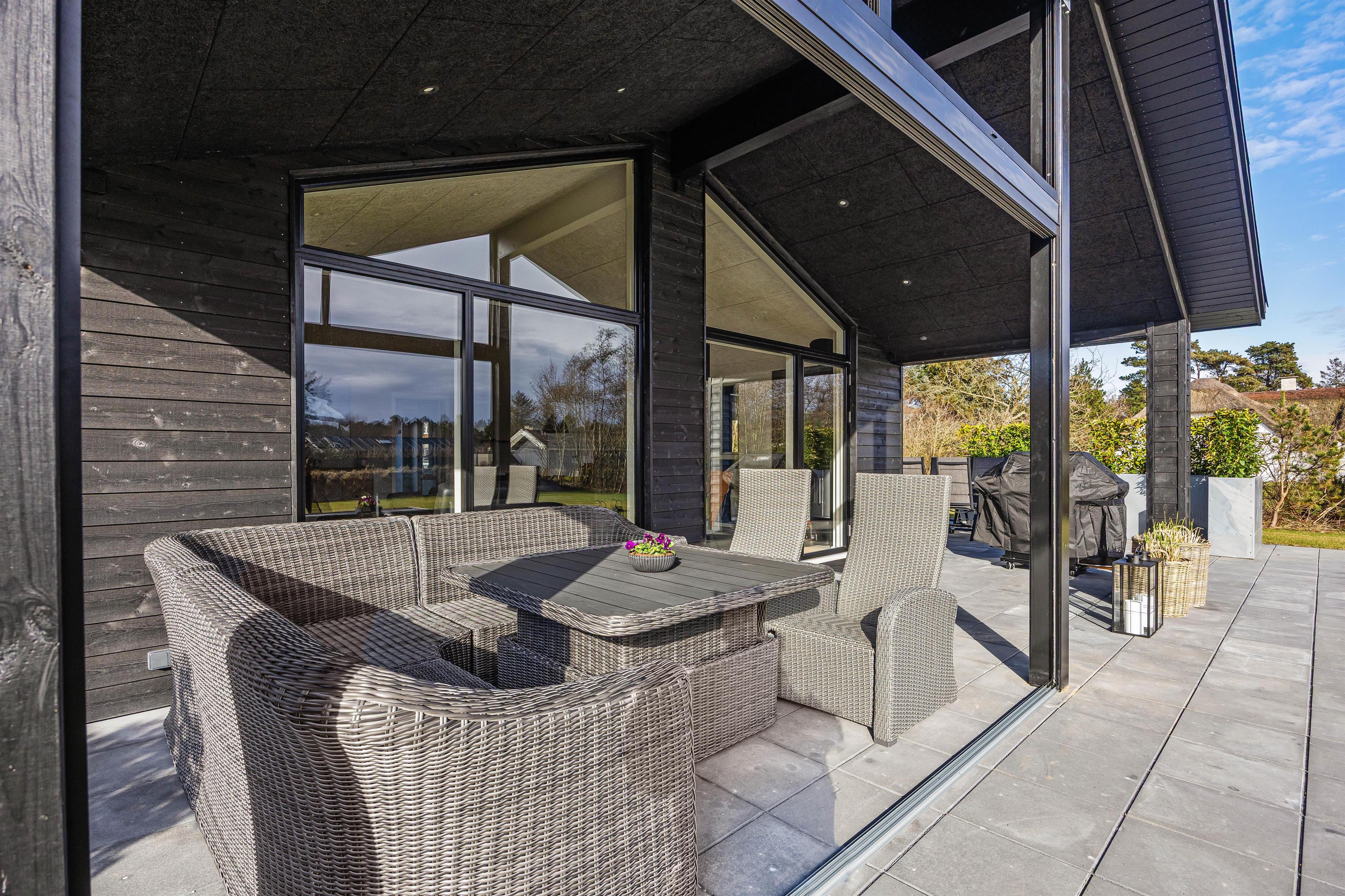 De åbne og overdækkede terrasser indbyder til udendørs afslapning i komfortable havemøbler, hvor I kan nyde den friske havluft og solens stråler. Her kan I også opleve lyset fra de sidste solstråler såvel på stille aftener med en god bog som ved muntre sammenkomster med venner og familie over mad fra gasgrillen.