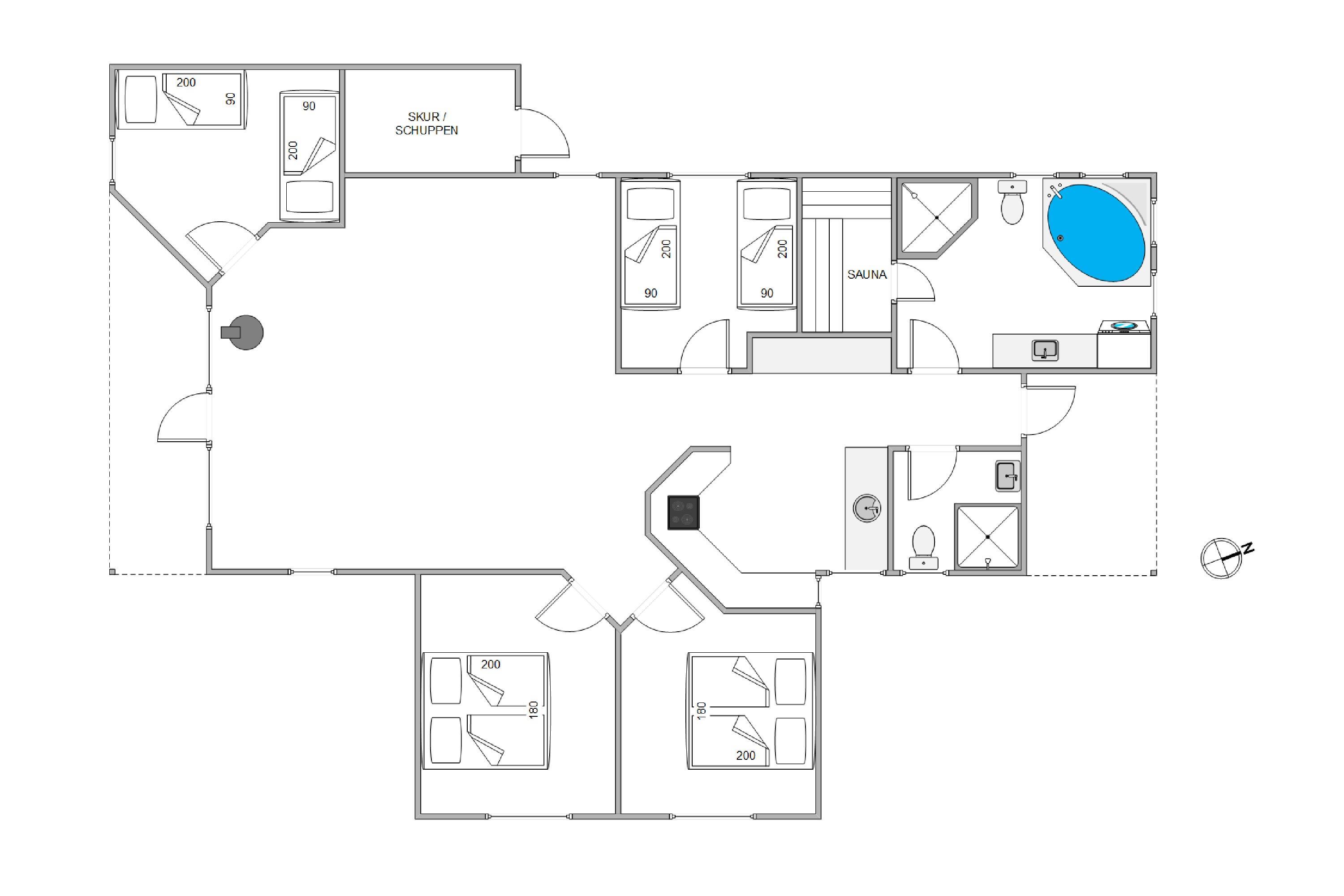Skal I helt ned i gear, finder I sauna og spa på det store badeværelse. Her kan I sætte jer til rette efter en dejlig gåtur ved stranden og nyde ferien. Begge badeværelser er udstyret med gulvvarme, og her finder I også vaskesøjle med vaskemaskine og tørretumbler.
