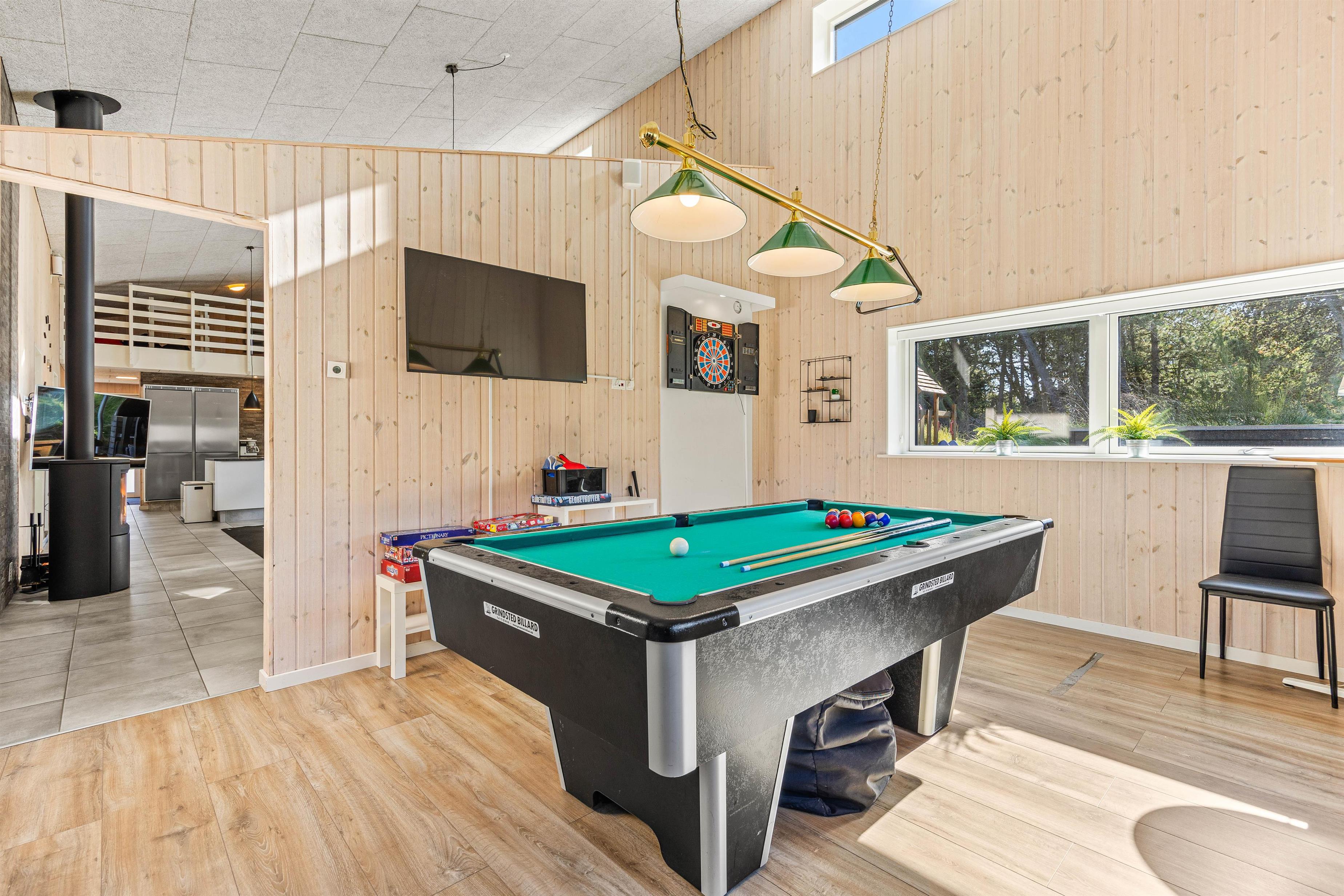 Dette sommerhus i Blåvand begejstrer ikke kun med sin nærhed til stranden, der ligger blot 1400 meter væk, men også med sine fantastiske fritidsaktiviteter. Uanset om det er poolbillard og bordtennis til spilaftener eller aktivitetsrummet til hyggelige stunder – her finder alle deres yndlingsbeskæftigelse.
