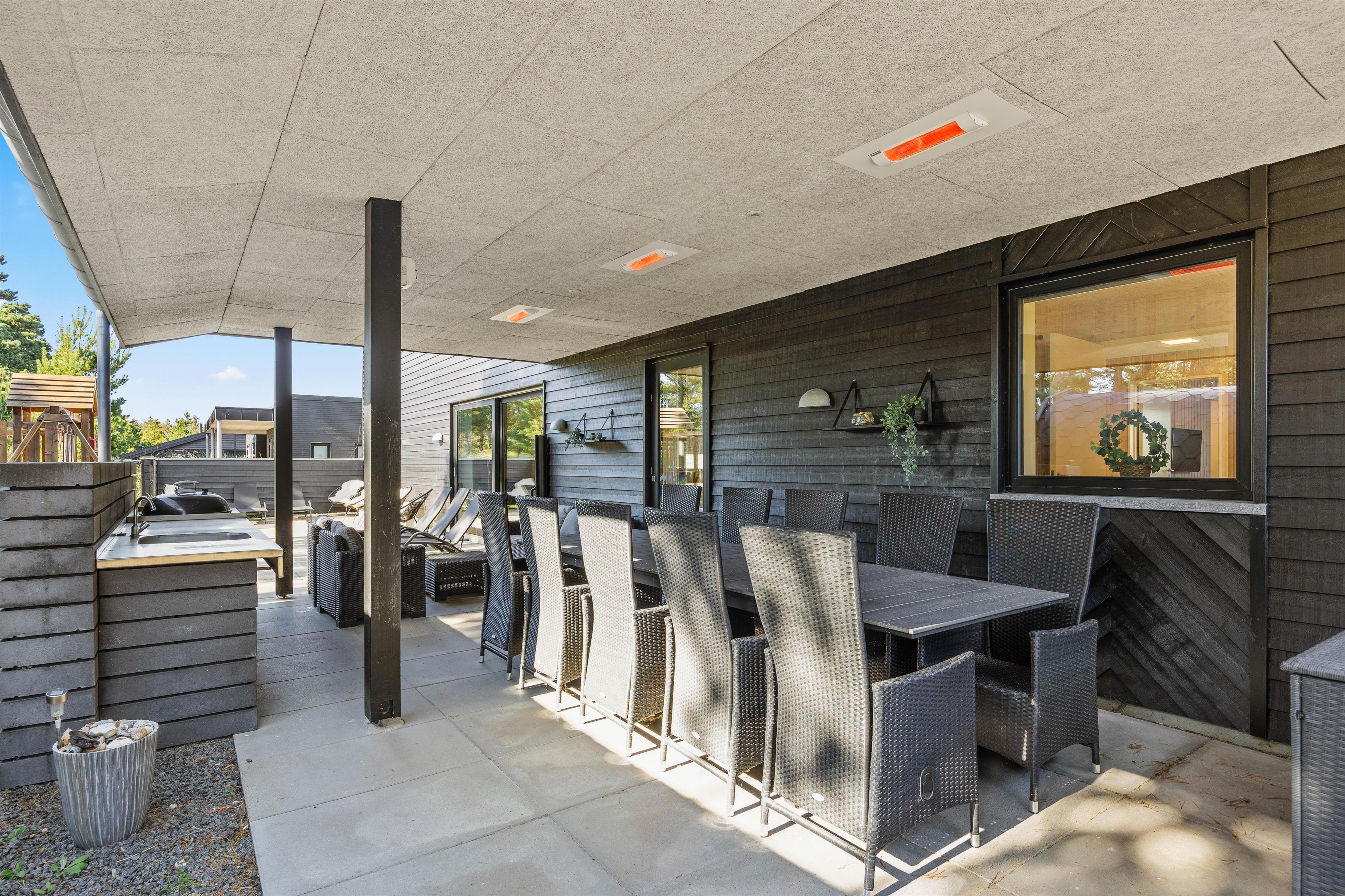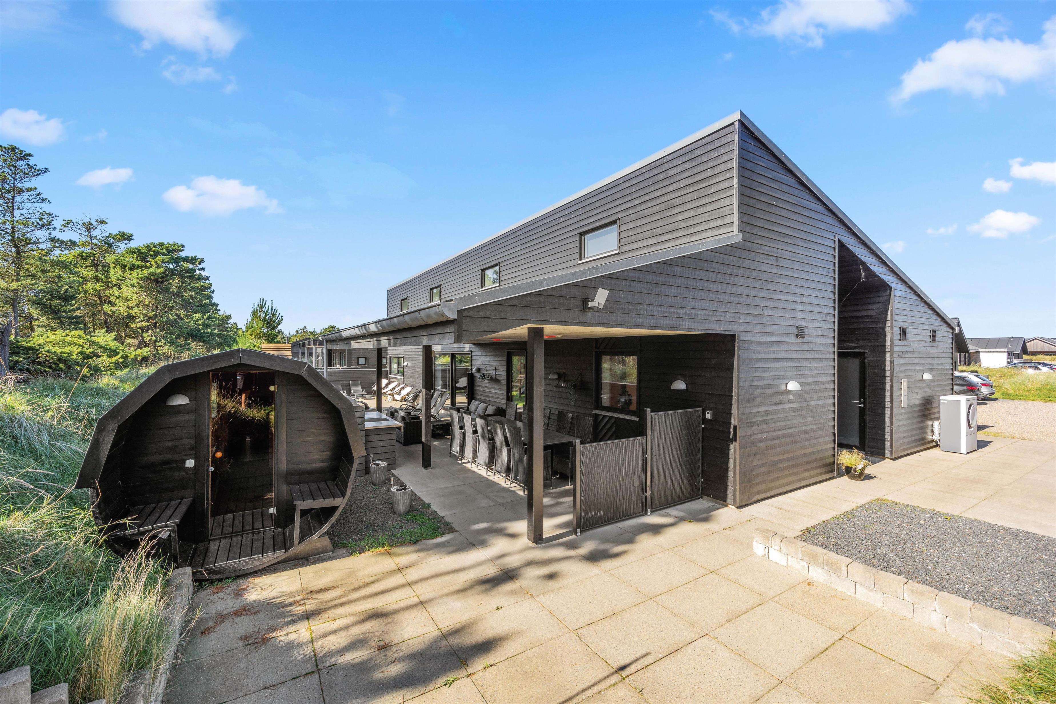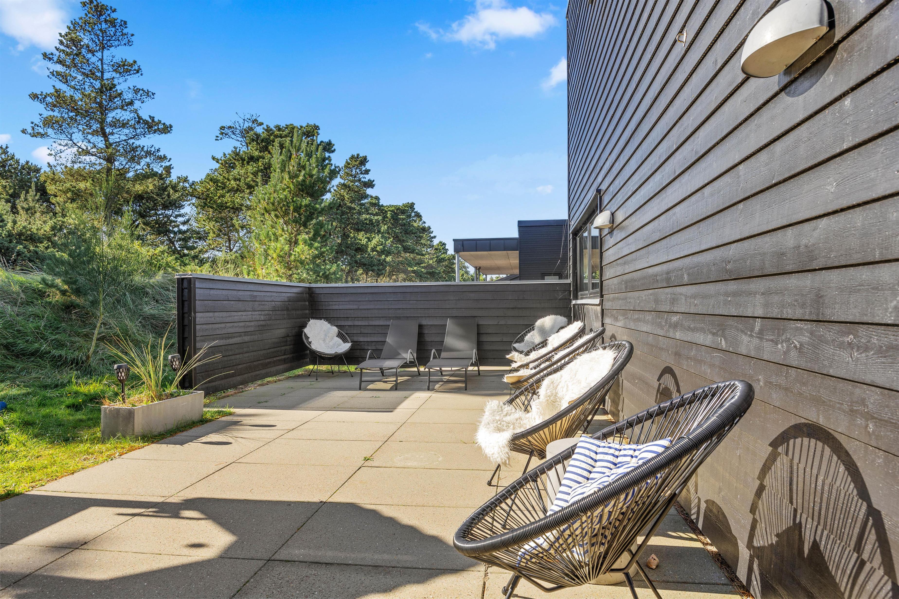 Nyd solrige dage på den 620 m2 store naturgrund og brug de moderne havemøbler til en fælles grillaften. Sommerhuset i Blåvand har også en udendørs bruser og en udendørs sauna, der giver din velværefølelse et ekstra nøk opad. Den udendørs bruser kan bruges fra 1. april til 31. oktober.