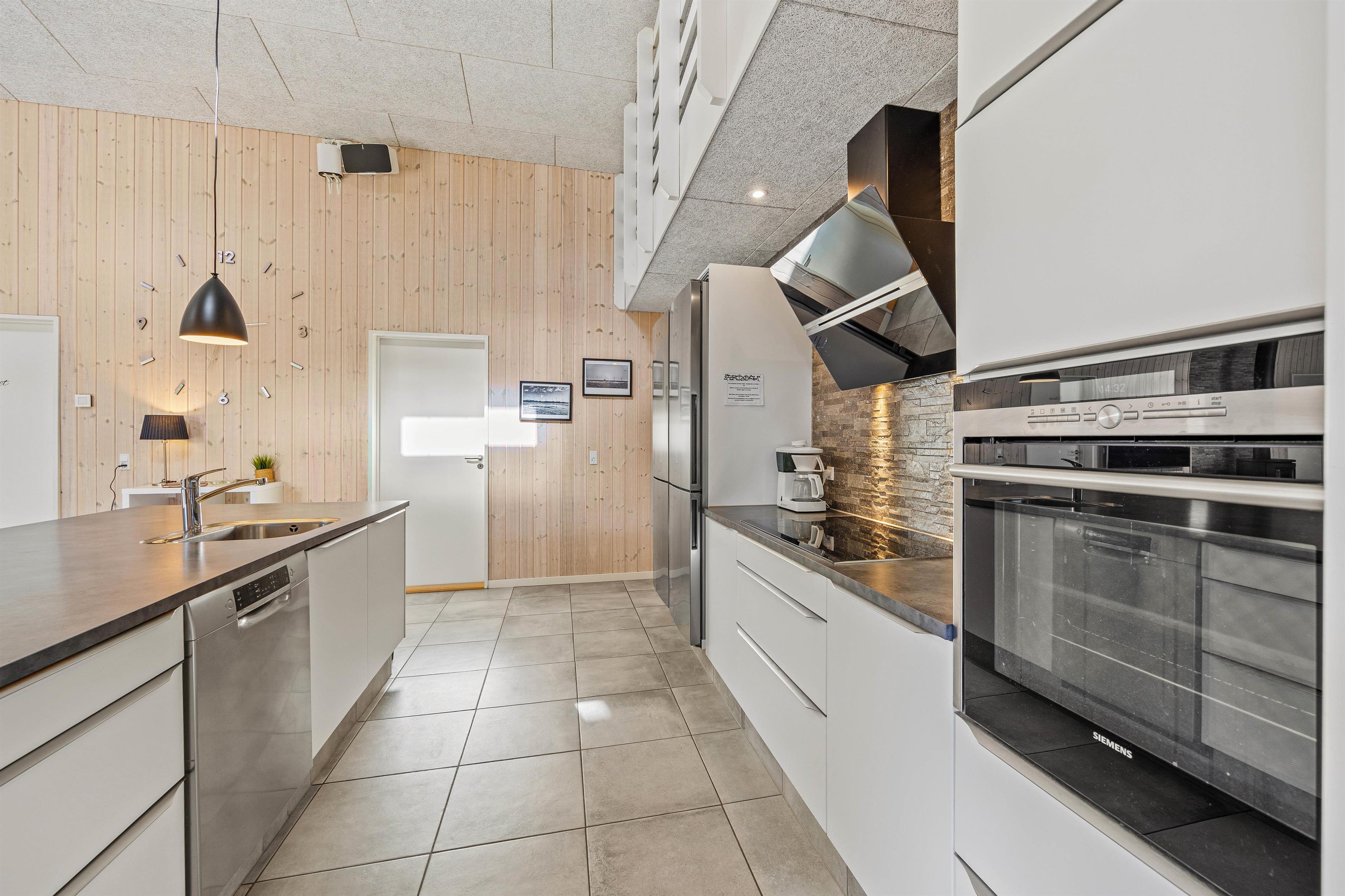 Sommerhuset i Blåvand er udstyret med alt, hvad man har brug for til et behageligt ophold. I den kolde årstid sørger den hyggelige brændeovn for dejlig varme til uforglemmelige aftener med jeres kære. Der er gulvvarme i opholdsrummene, og det fuldt udstyrede køkken tilbyder optimal komfort med en separat 150 liters fryser, en mikrobølgeovn og en opvaskemaskine.