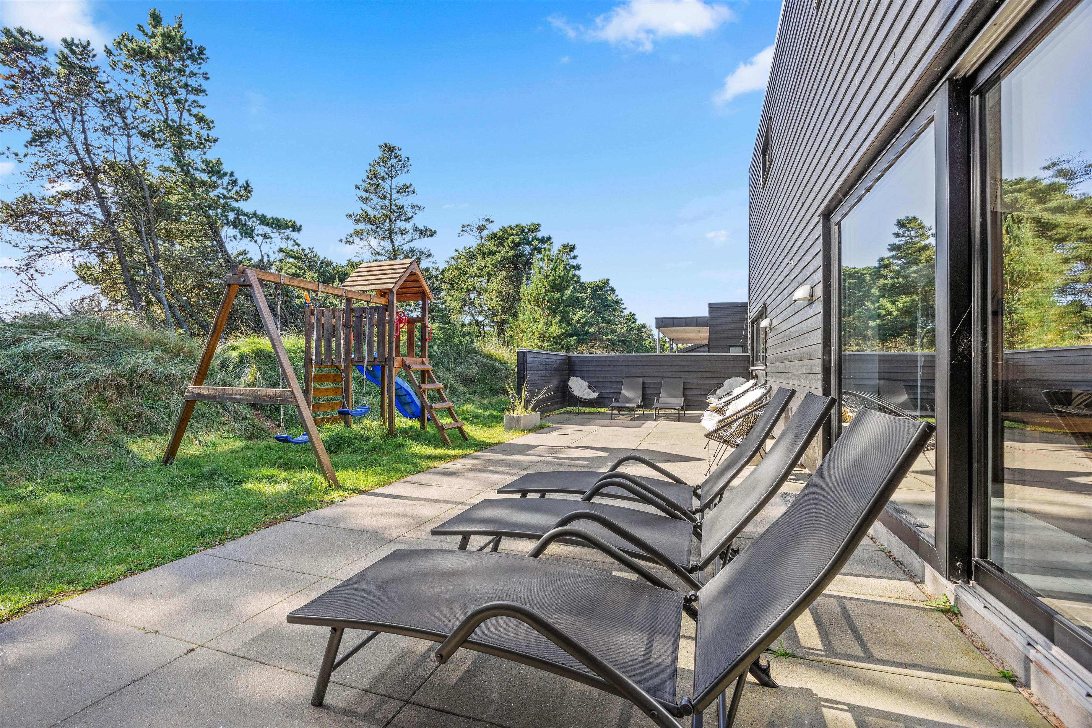 Udearealet fuldender det perfekte ophold: slap af på den afskærmede eller overdækkede terrasse, mens børnene hygger med gyngen i haven.