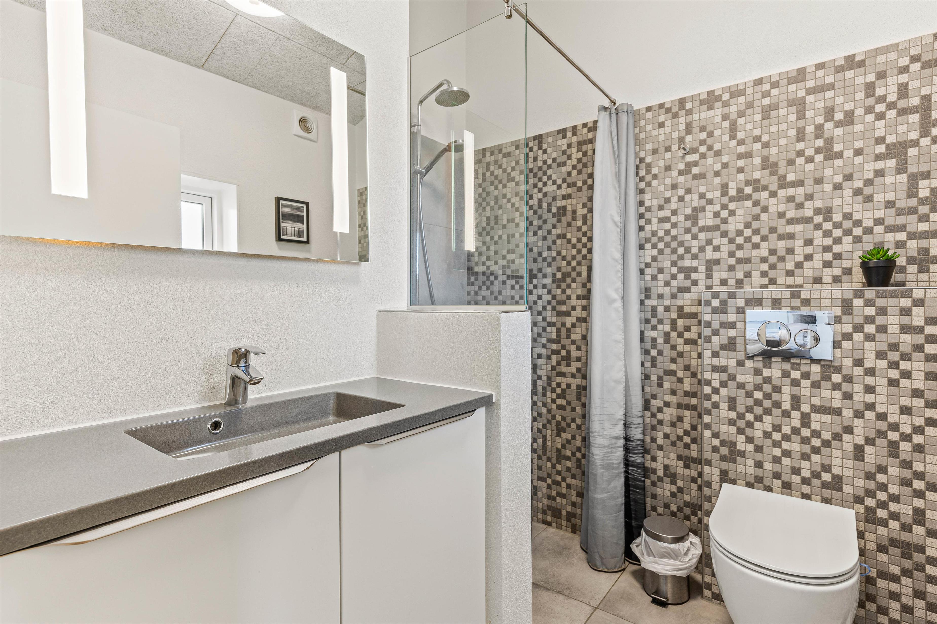 Der er desuden vaskemaskine og tørretumbler til rådighed, så I ikke behøver at bekymre jer om noget mht. tøjvasken, og gulvvarme i badeværelserne gør feriedagene endnu mere behagelige.