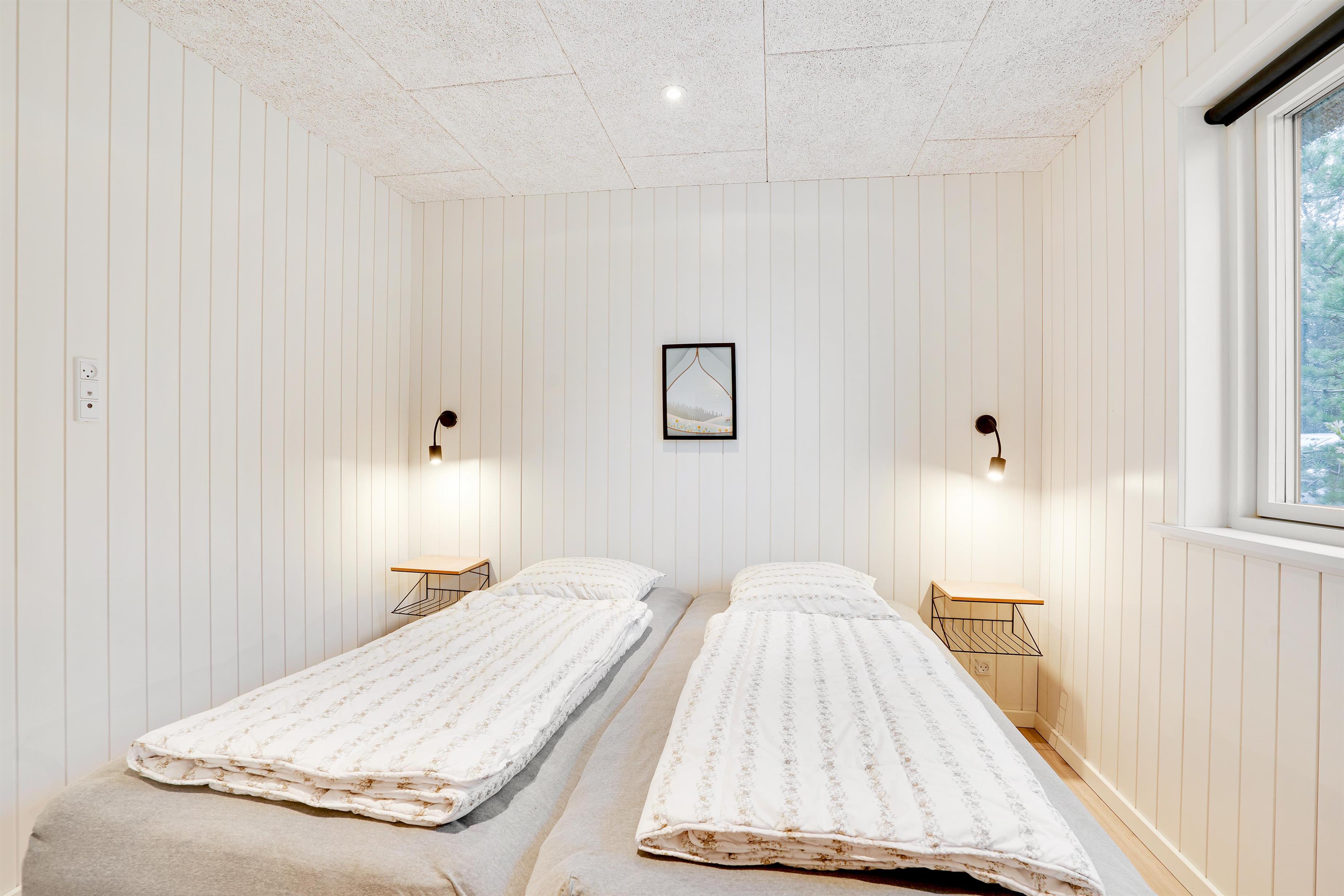 Det stråtækte luksussommerhus er opført i 2019, og den stilfulde indretning med sans for både detaljer og kvalitet vil falde i selv den mest kræsne feriegæsts smag. Loft til kip får omgivelserne til at syne endnu større, og de træbeklædte vægge gør, at I stadig får fornemmelsen af ægte sommerhushygge – også hjulpet på vej af den charmerende alkove i køkkenalrummet og den klassiske brændeovn. Fra de store vinduespartier i alrummet har I en skøn udsigt til den omkringliggende natur.