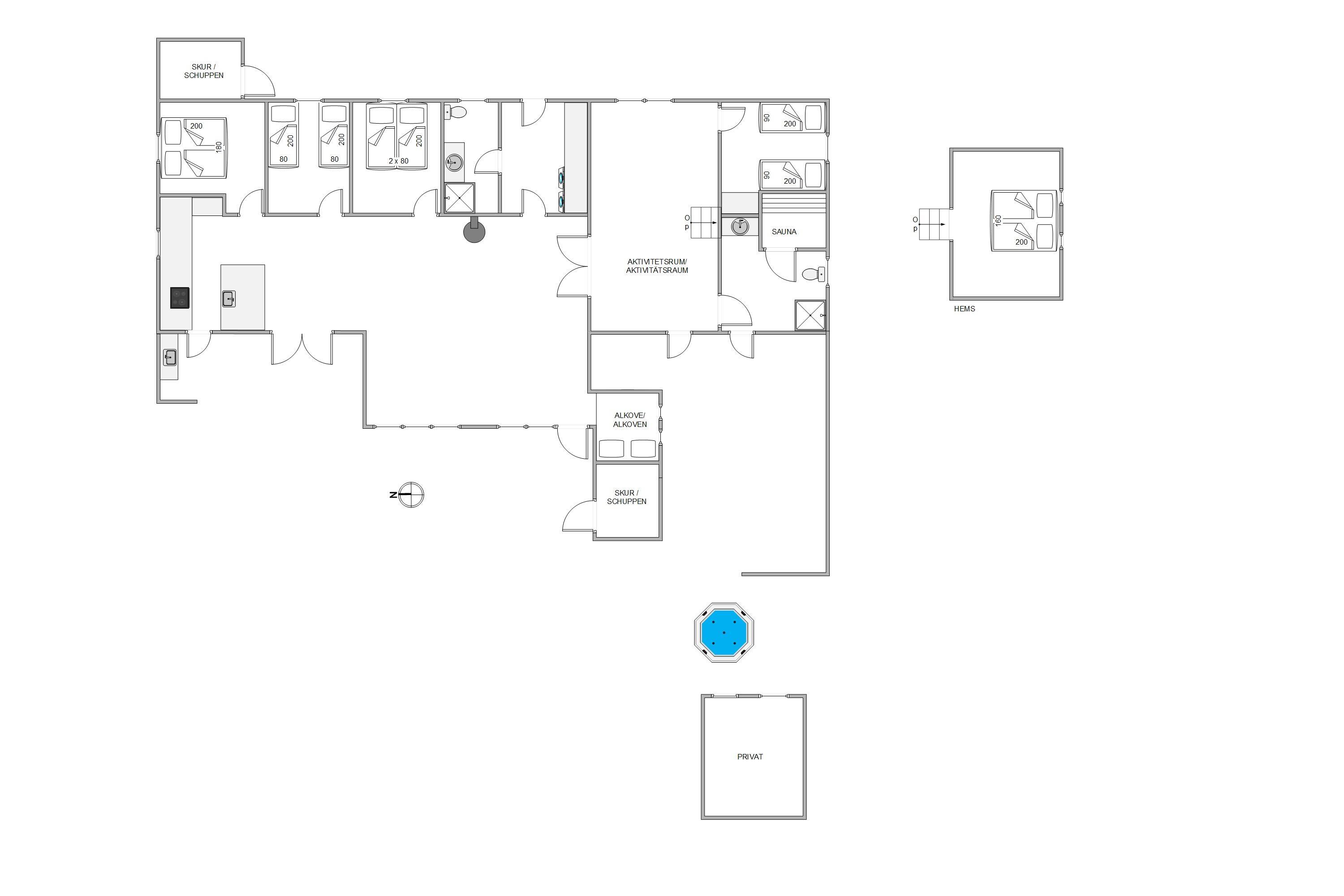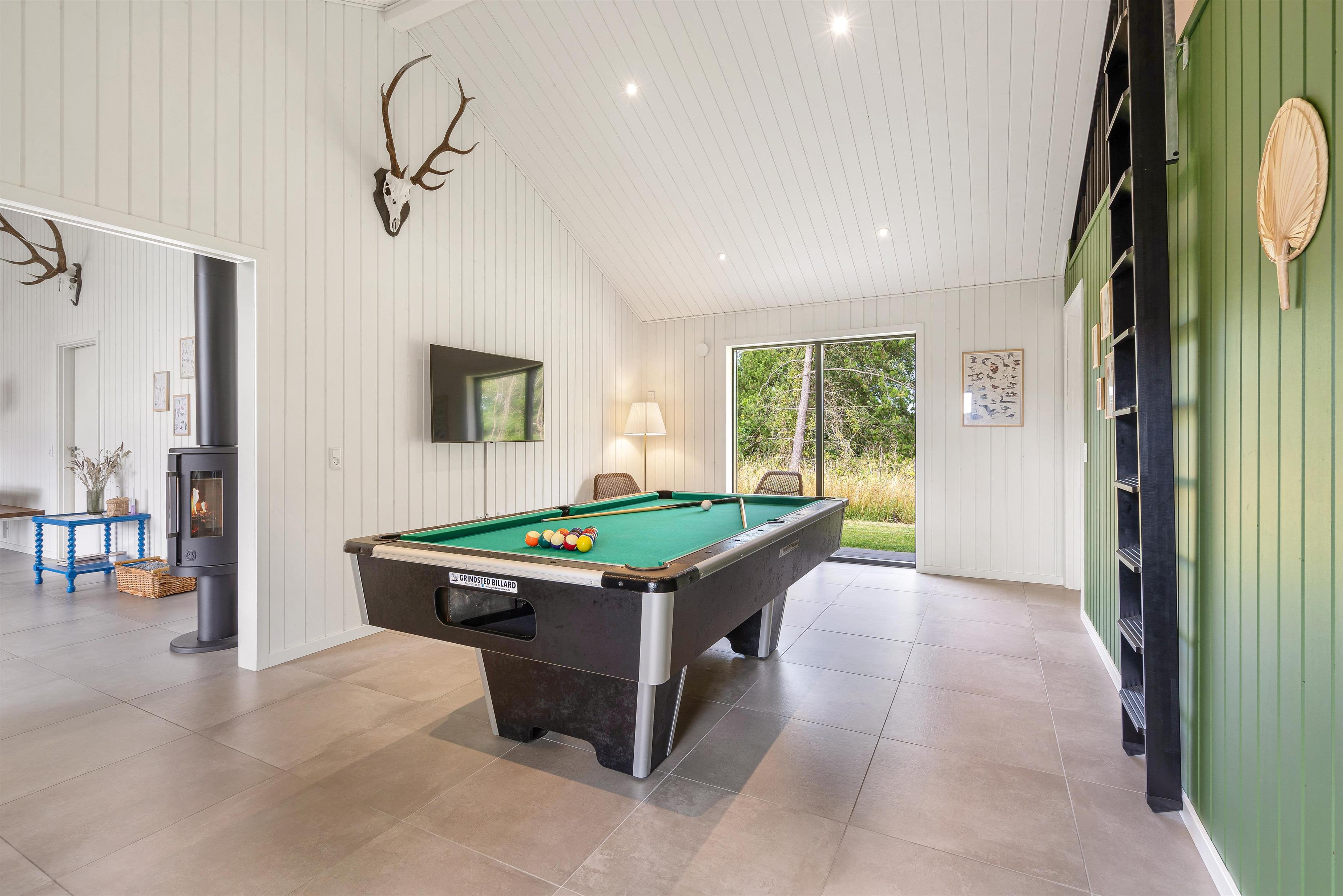 De aktive og konkurrenceglade feriegæster kan i stedet glæde sig over, at sommerhuset er indrettet med et separat aktivitetsrum, hvor der kan konkurreres i både billard og bordtennis. Her kan de med sikkerhed få mange timer til at gå på ferien.