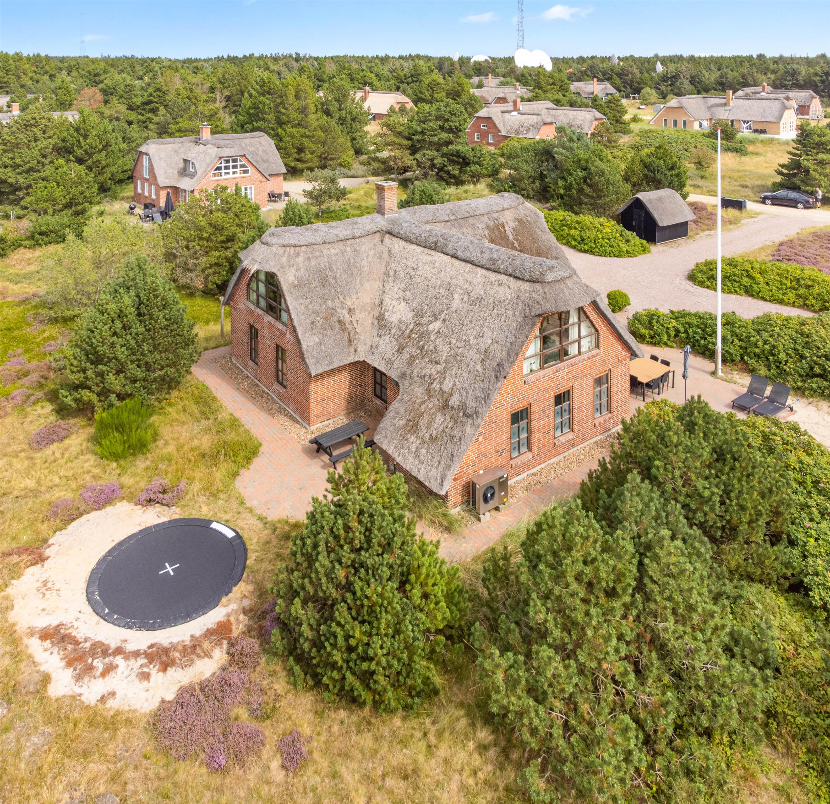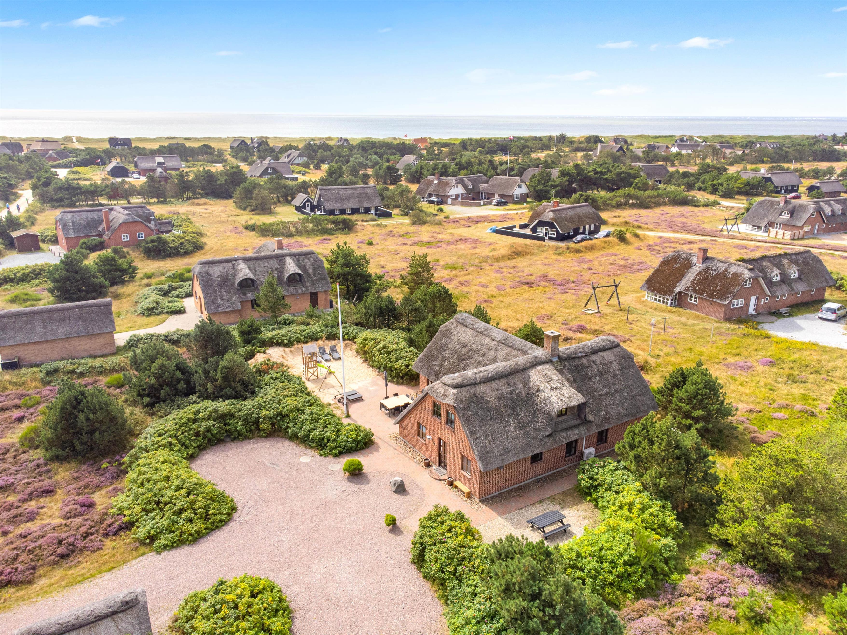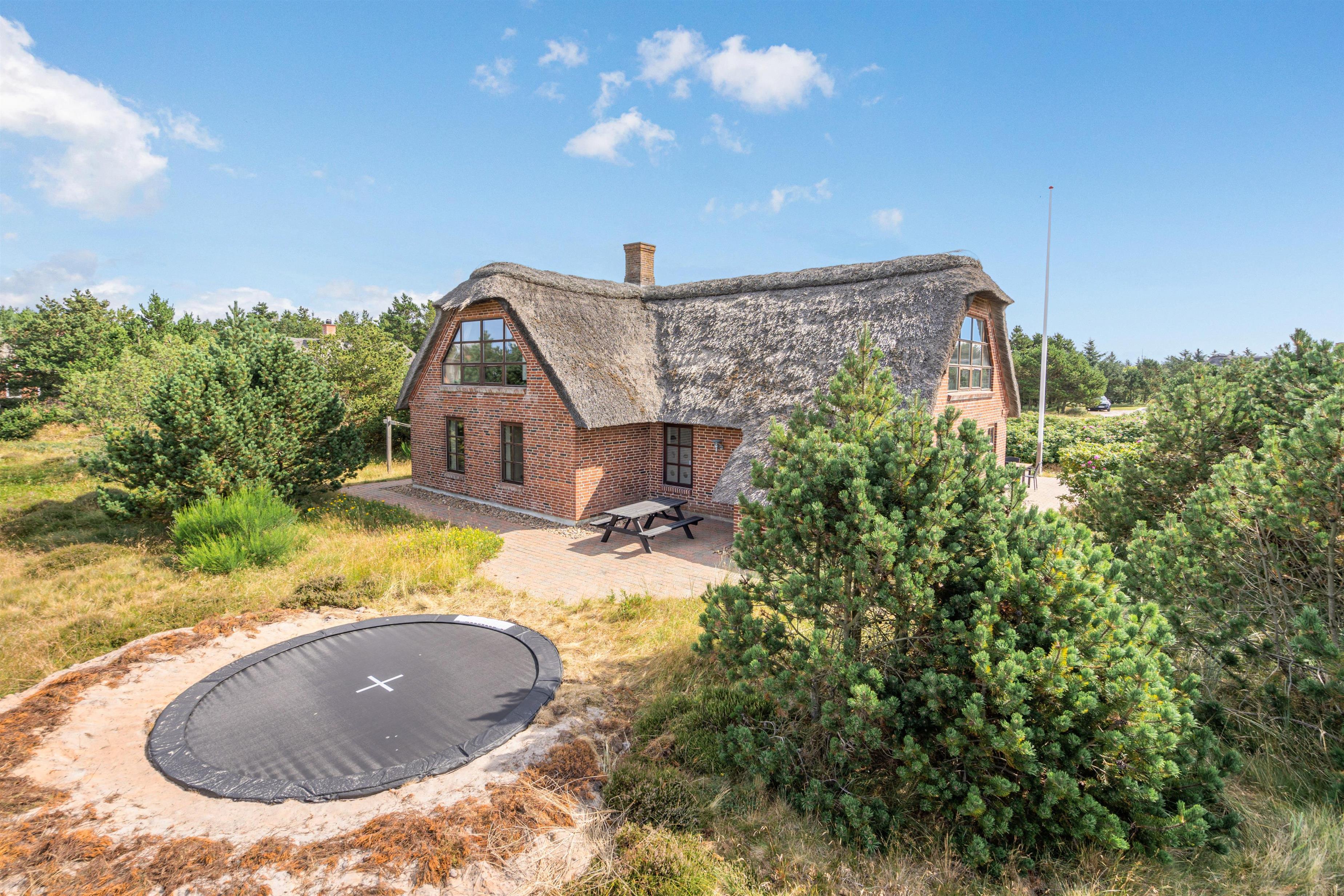 Der er selvfølgelig også tænkt på feriens yngste gæster. Til børnene er der et stort, lækkert sandområde med legetårn og gynger samt en trampolin bag feriehuset, hvor de kan tilbringe mange timer med leg.