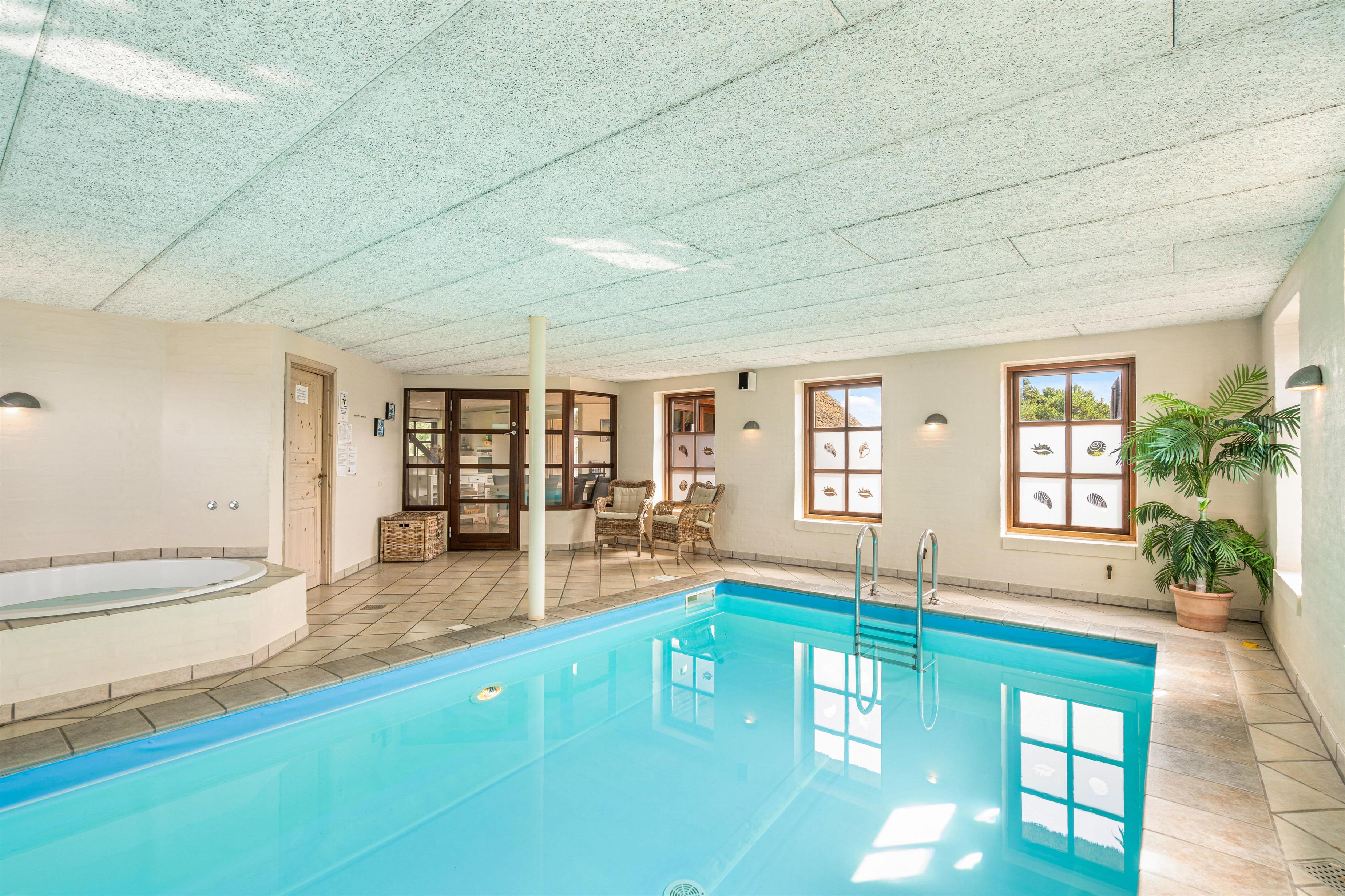 I sommerhuset på Ingridsvej 15 i Blåvand er der noget for enhver smag, uanset om I foretrækker at være aktive eller at slappe af. Sommerhuset byder nemlig på et poolrum, hvor der er en 18 kvadratmeter stor swimmingpool, som uden tvivl vil blive et stort hit blandt feriens vandhunde.