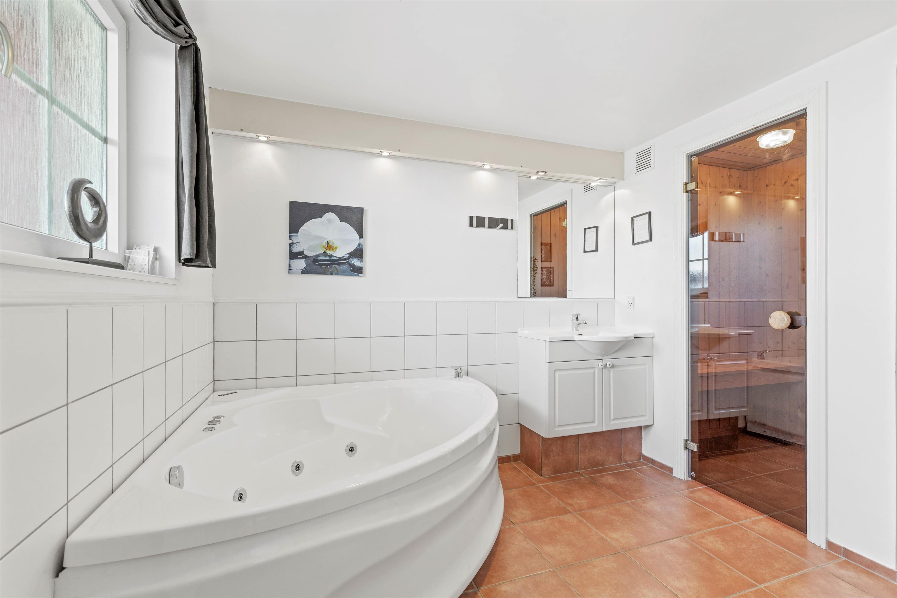 På det ene af to badeværelser finder I nemlig en sauna og spa, hvor I kan få varmen igen efter en lang dag i den friske havluft på stranden eller i byen med shopping og cafébesøg.