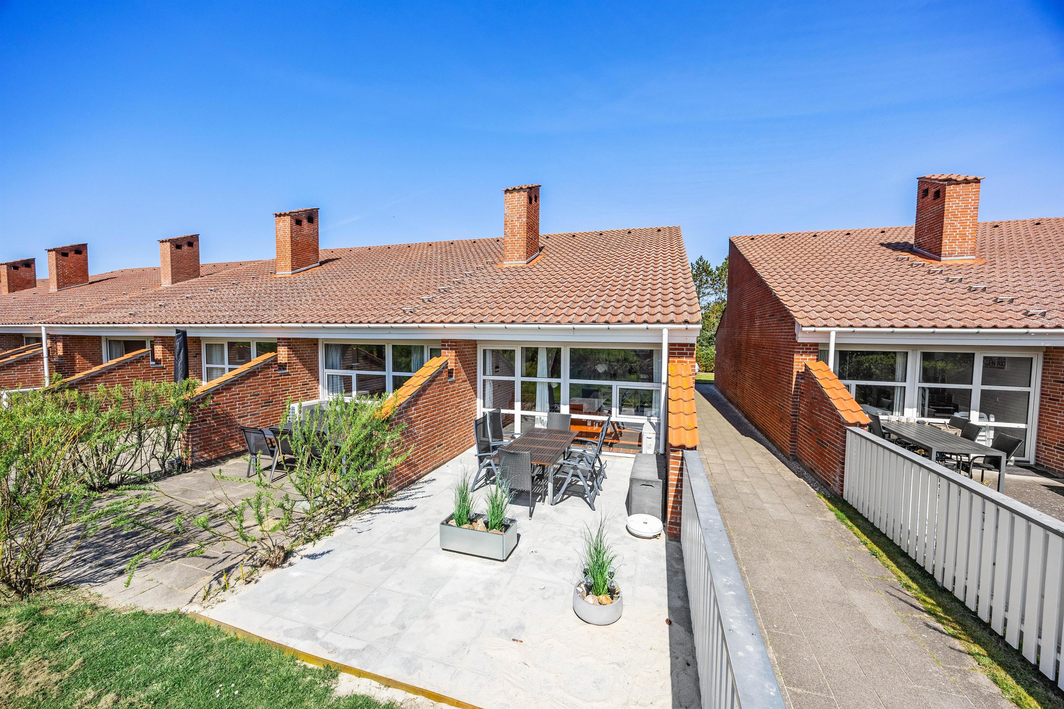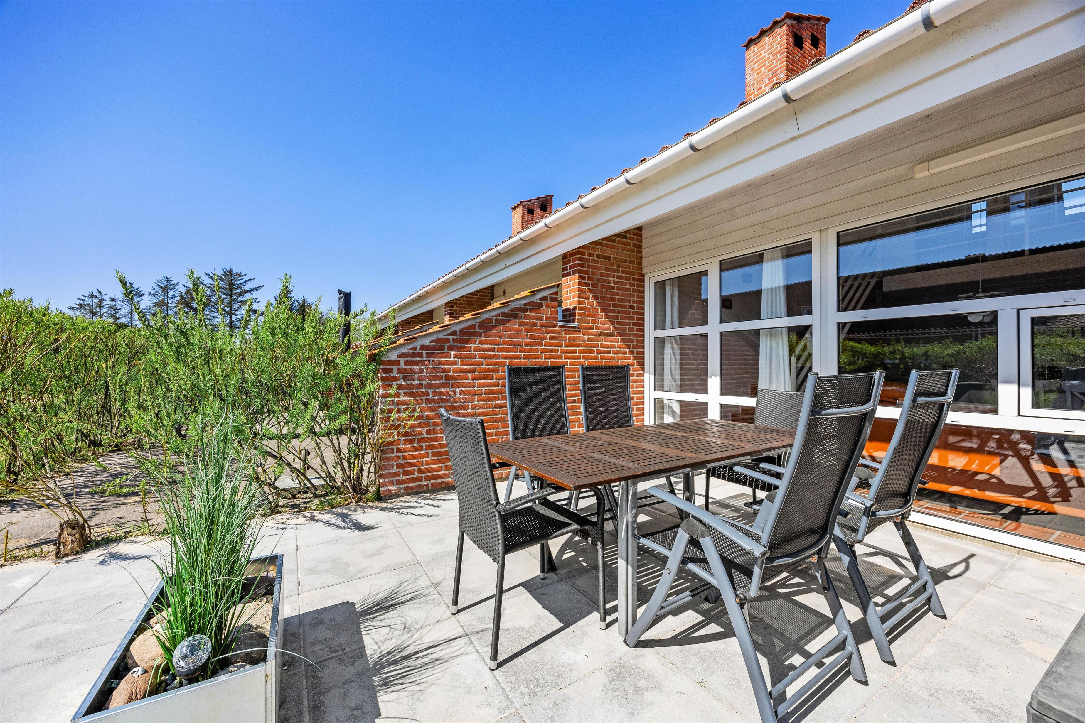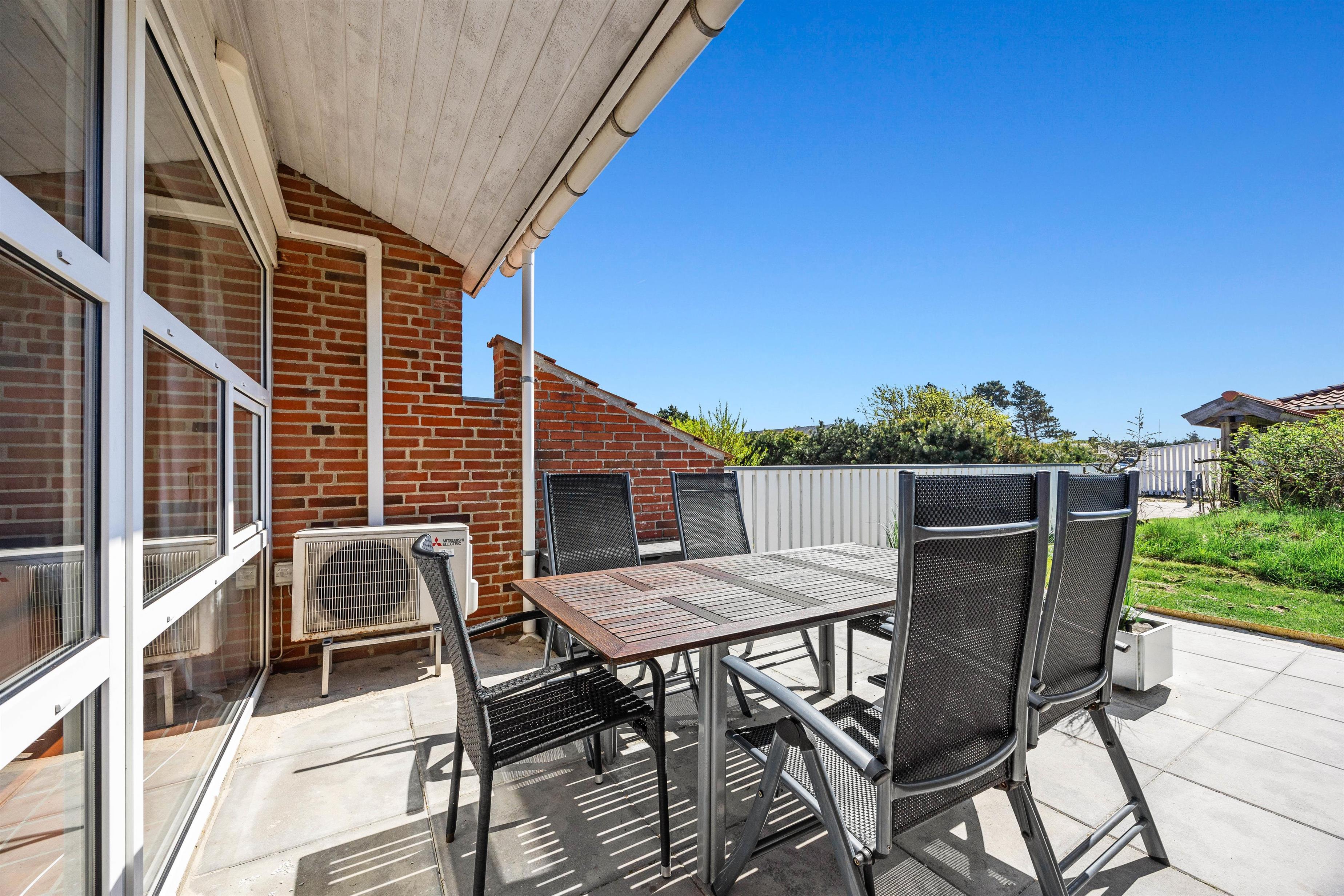 Fra stuen kan I træde direkte ud på fliseterrassen, hvor I kan nyde den danske sommer. Her venter havemøblerne på jer og indbyder til en hyggelig frokost på terrassen. Tilhørerende feriekomplekset er en legeplads, hvor de mindste kan lege og underholdes.