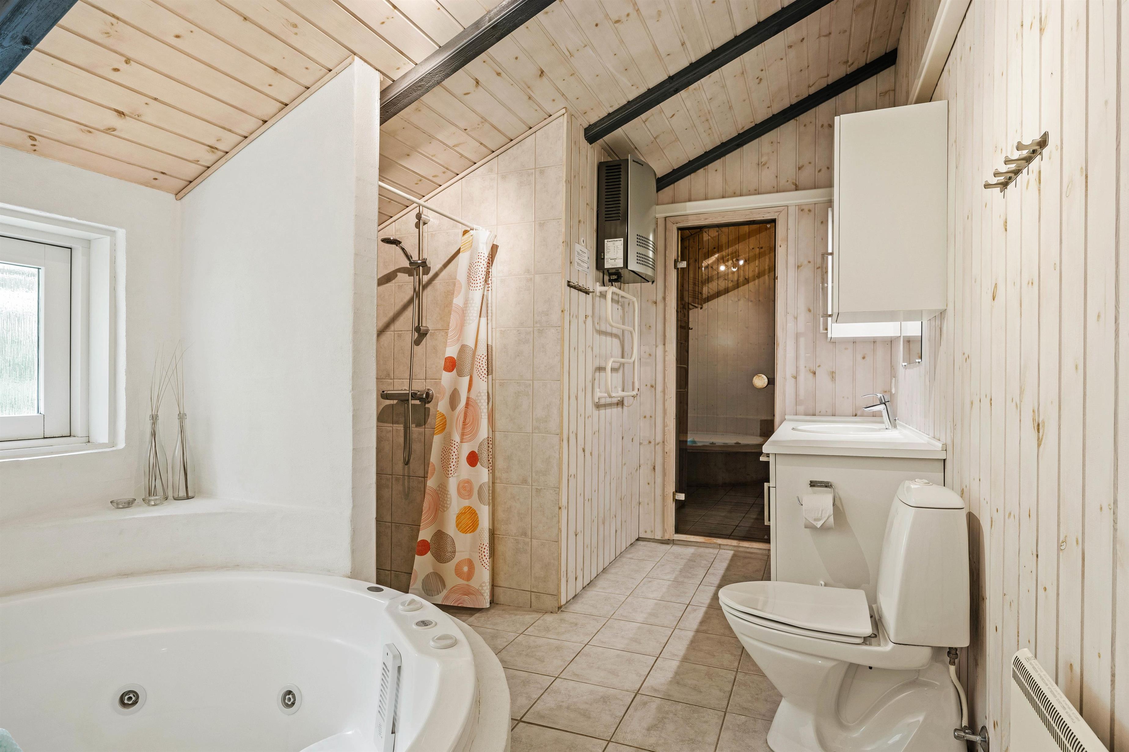 To gode badeværelser sørger for, at I slipper for lange køer til toilettet om morgenen, og på det største badeværelser finder I også husets wellnessoase med sauna og spabad, hvor I kan forkæle jer selv lidt ekstra på ferien!