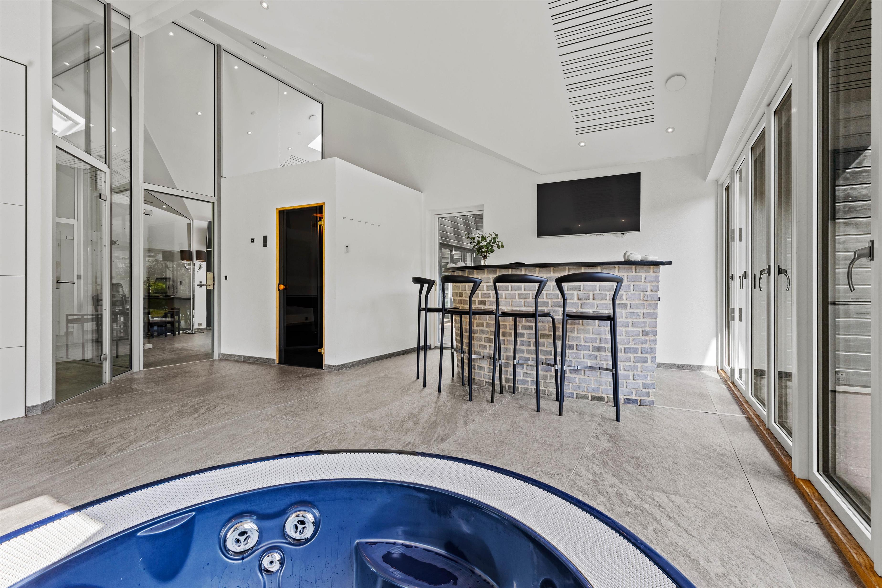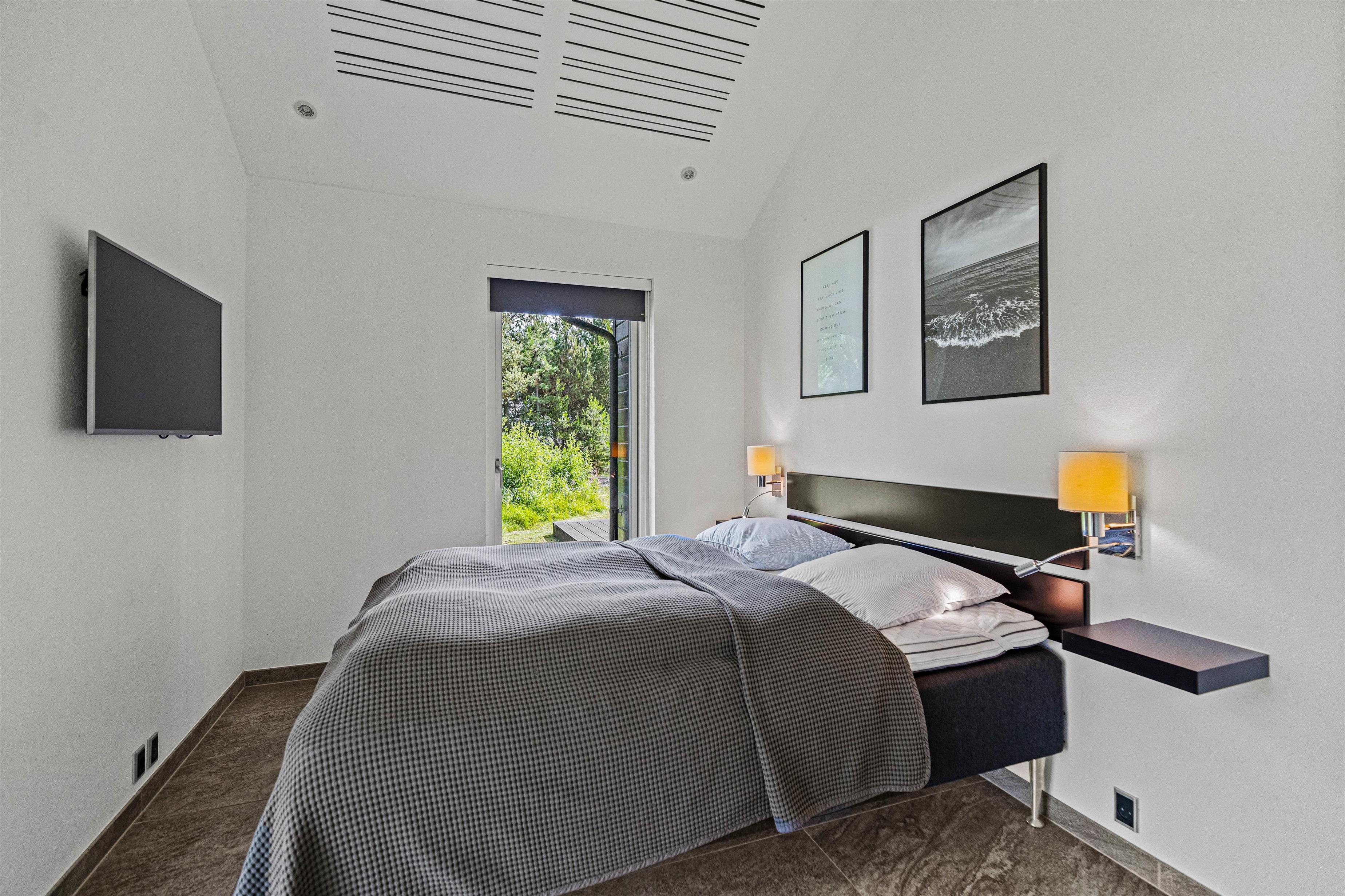 I Blåvands naturskønne ferieområde ligger dette attraktive feriehus ved Bjergbovej 9, der i den grad tikker alle bokse. Det topmoderne spahus råder ikke kun over luksuriøse faciliteter som indespa til 7 personer, udespa, sauna og dampbad - der er også sørget for noget til de aktive feriegæster med et kombineret aktivitets- og fitnessrum med Technogym udstyr. Alt inventar er topkvalitet, blandt andet med Miele-hvidevarer.