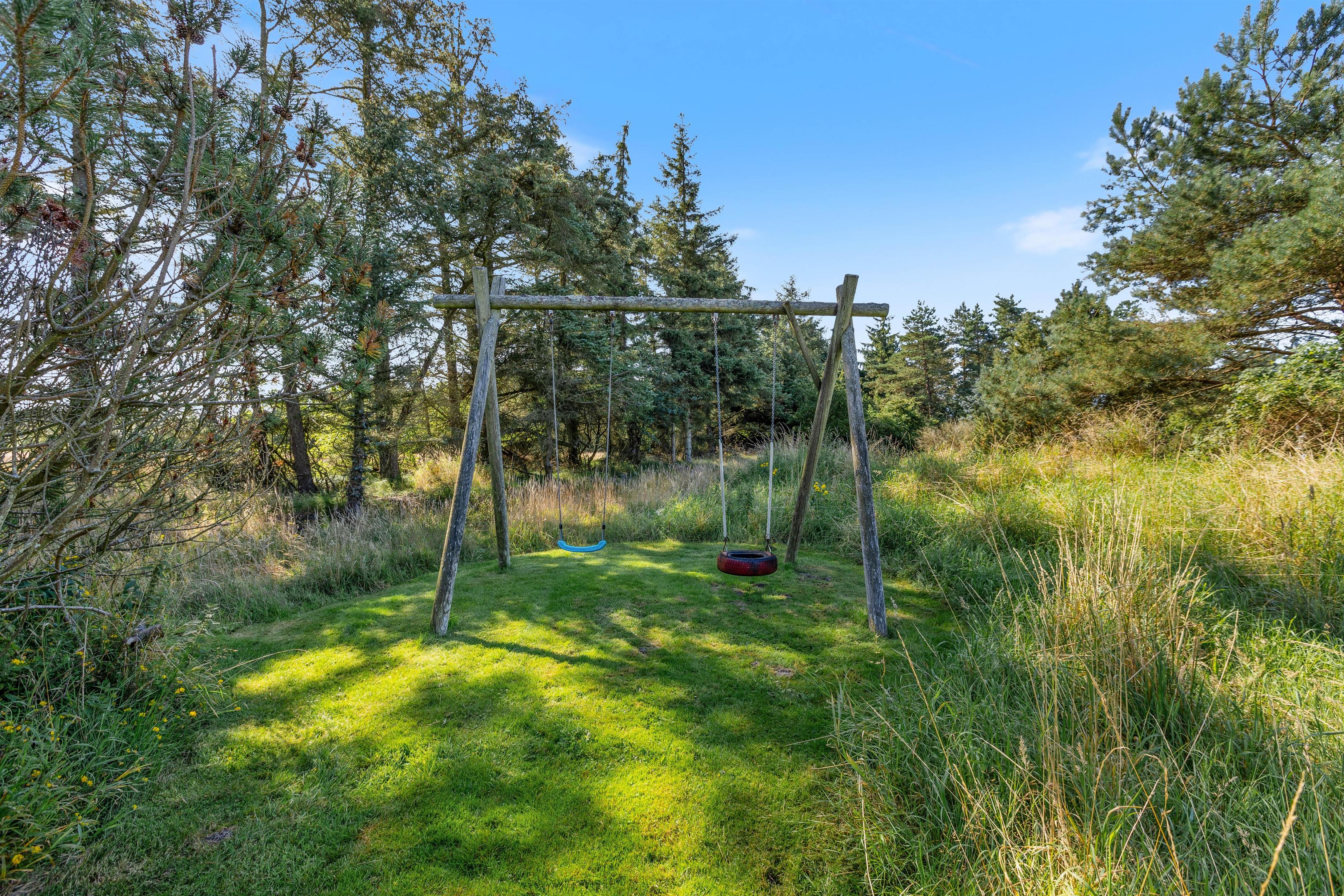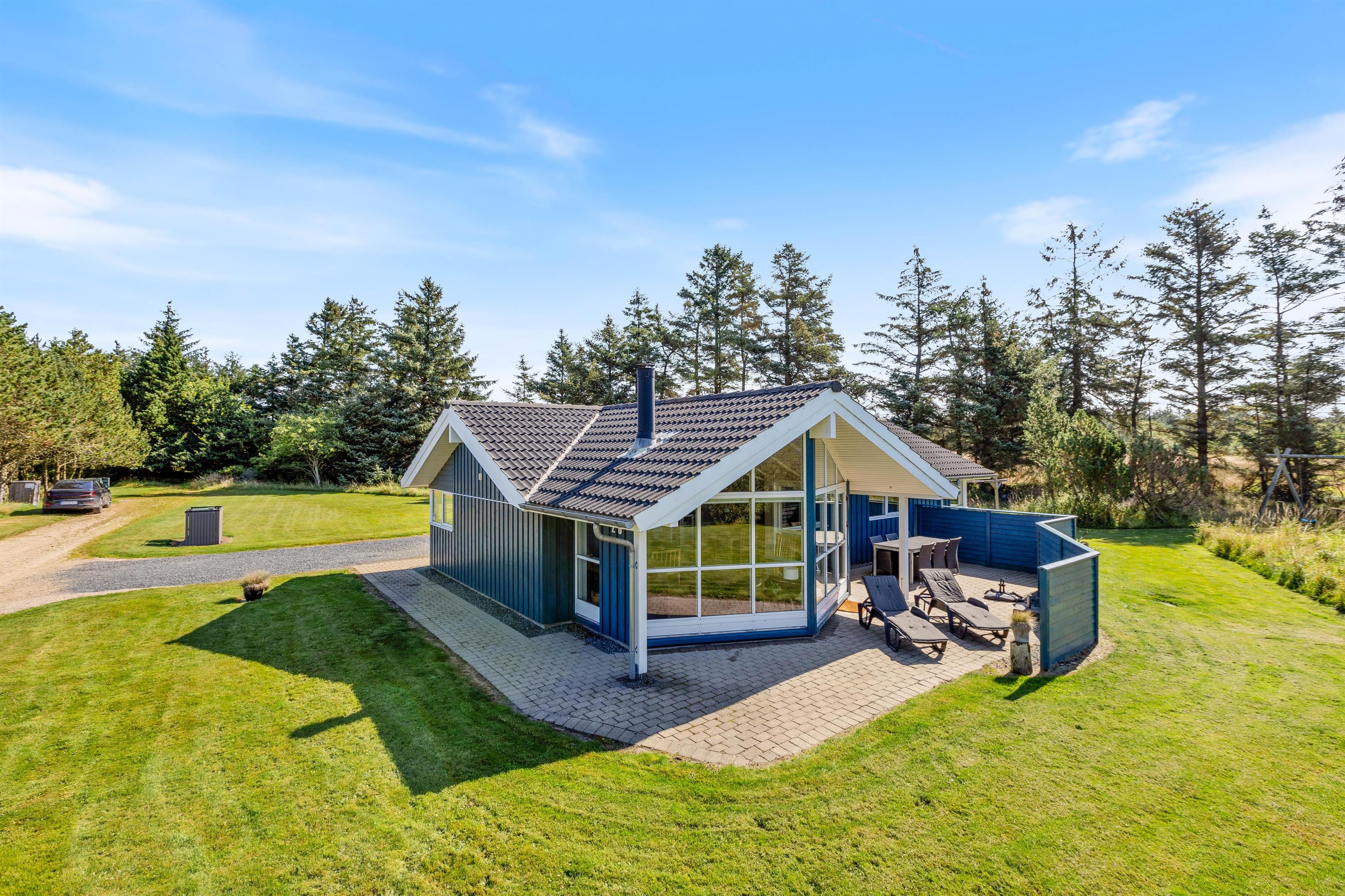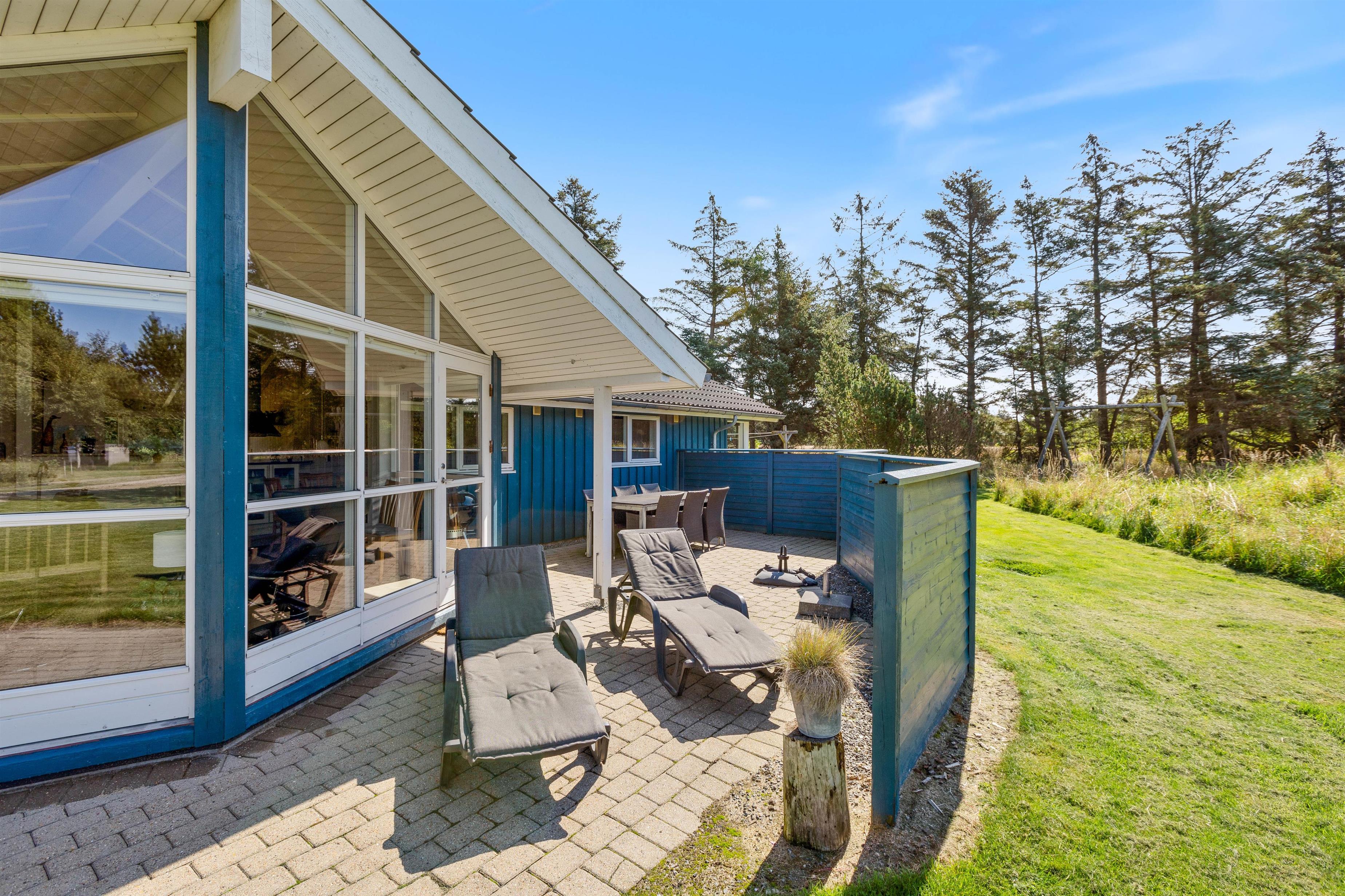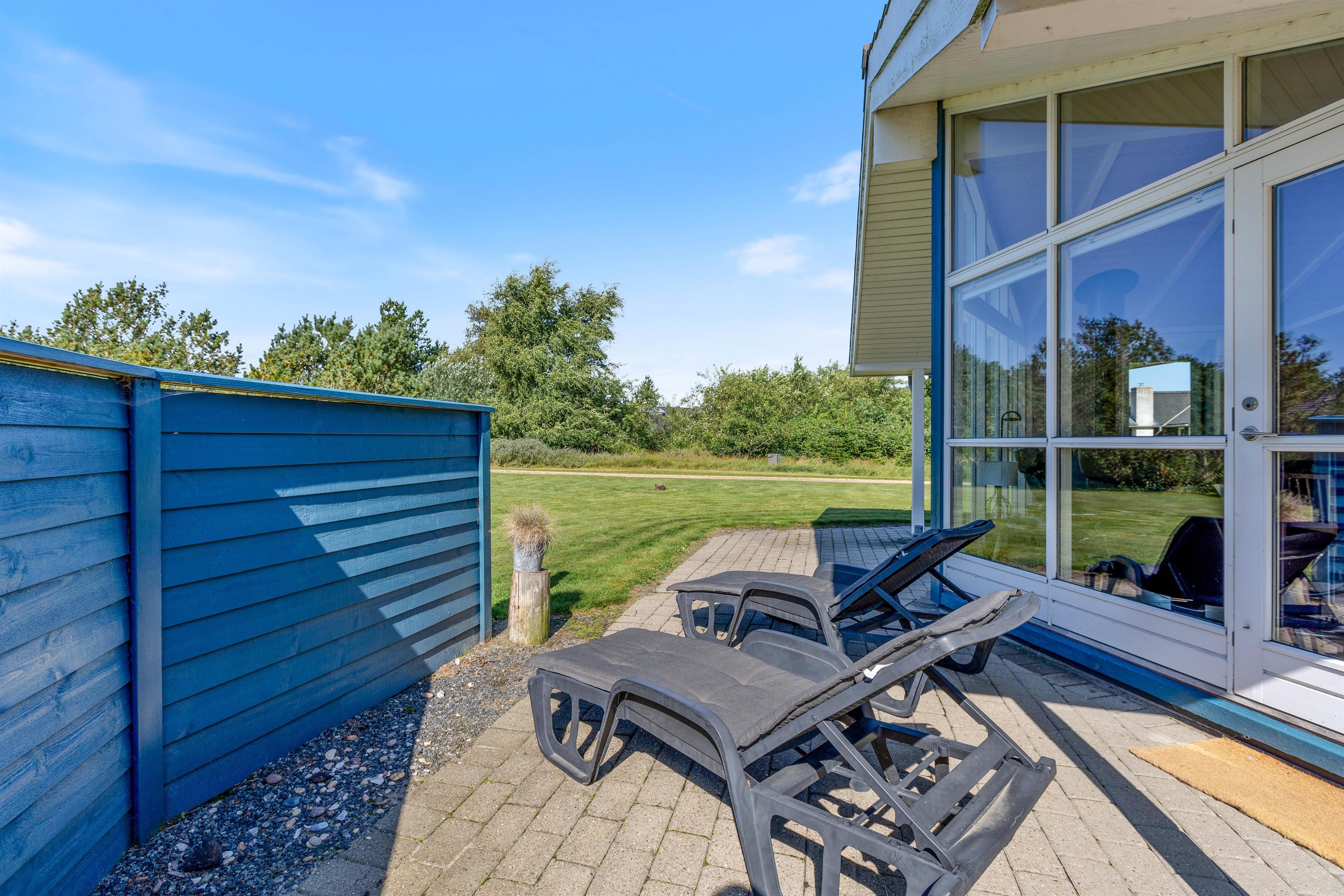 Feriehuset ligger på en skøn naturgrund næsten helt for enden af en blind vej, med en skøn og afskærmet terrasse. Her kan I slappe af i liggestolene med en god bog og nyde ferietiden i fulde drag.